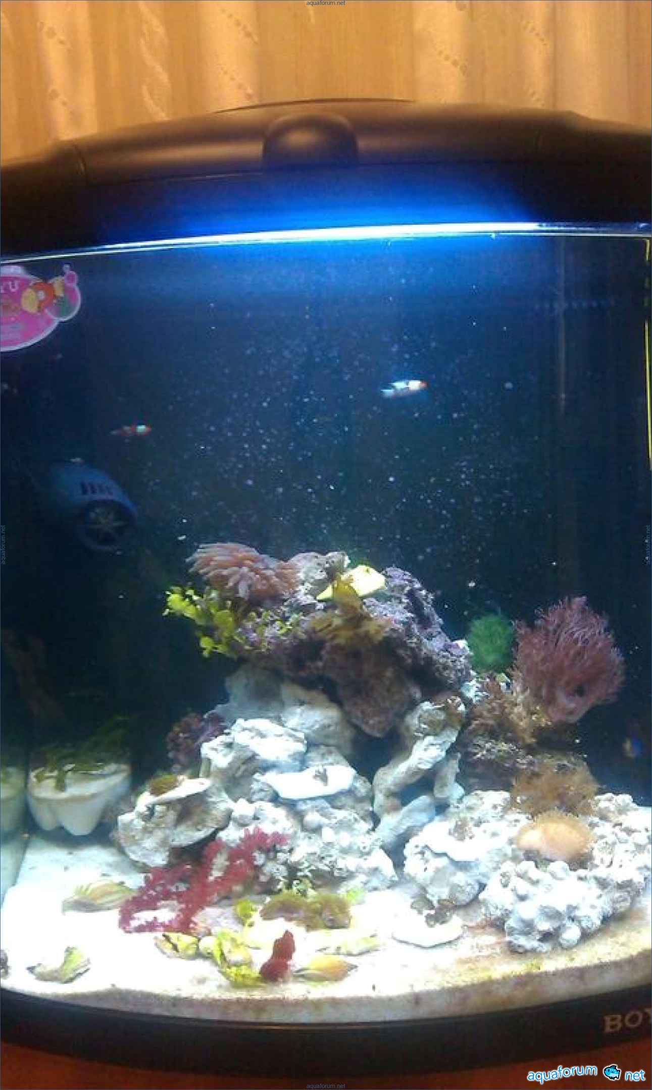I have finally matured to create a topic on the forum. The child wanted an aquarium for the New Year, but I did not want to create a freshwater one, as in my childhood I had a 300-liter freshwater aquarium that I liked, but I did not want to set up another one. The decision was made to create a marine aquarium. The guys from the "Kharkiv Forum" advised where to buy the aquarium, and it is already rushing by new mail from Kyiv to Kharkiv. The same guys shared some water (although I had to add a little salt) and here it is - the SEA (if my memory does not fail me, the launch took place on 12/24/2013 and as it should be in our Kharkiv, the sea should be without substitutions and on tap water). After a few days, I added more sand. After a few weeks, I realized that water changes are still needed, but I remained faithful to the tap water. Over time, the livestock declined, and the sea was populated over half a year, and the aquarium acquired some features. And somewhere around September, my sea began to wither, and I could not understand what and how, the anemone deflated and dissolved, the fish dog died, and it was not until November that I FINALLY realized that I need to use an RO system. After several RO water changes, the sea began to recover, but the protein skimmer keeps running and running. And this