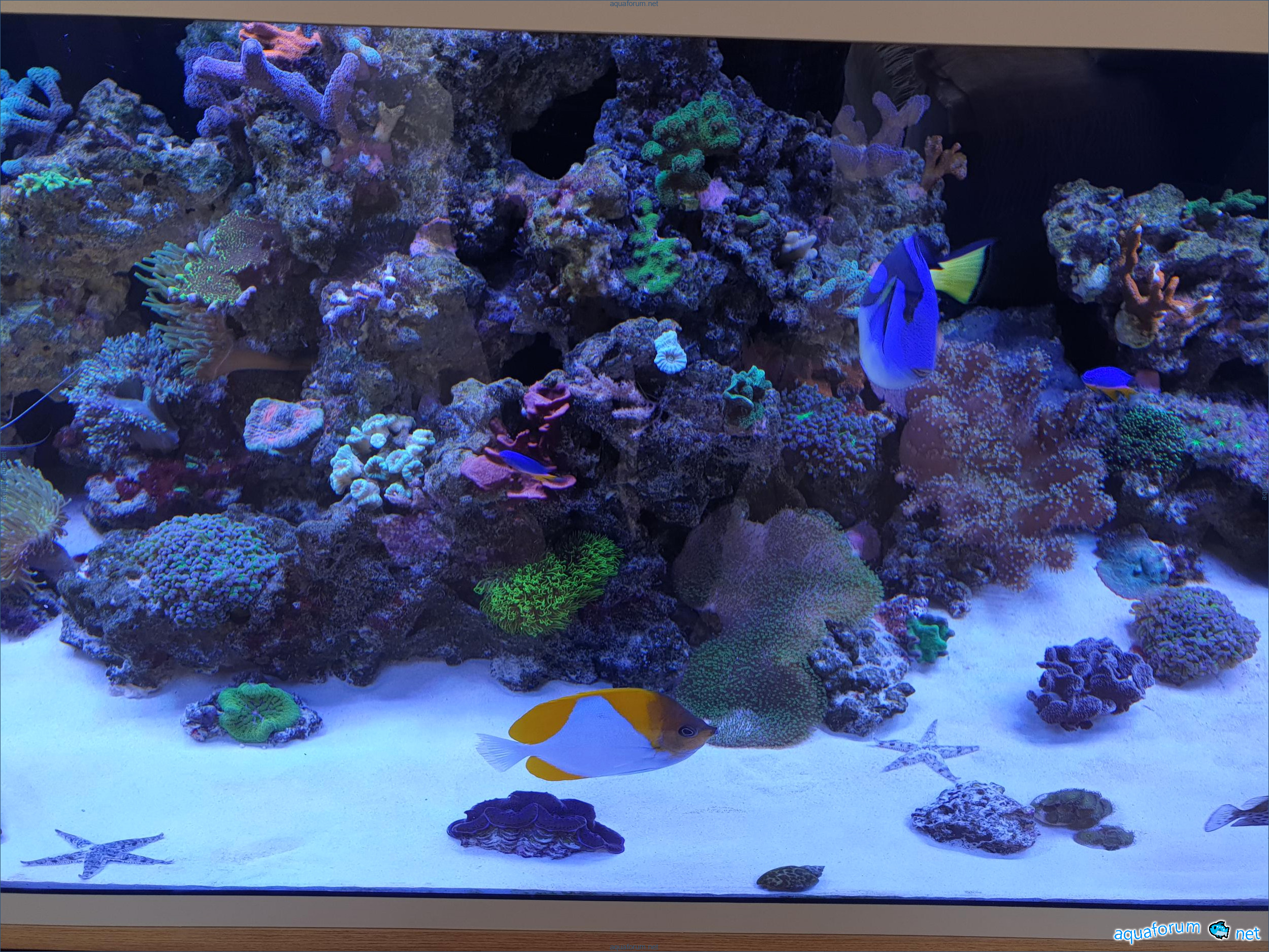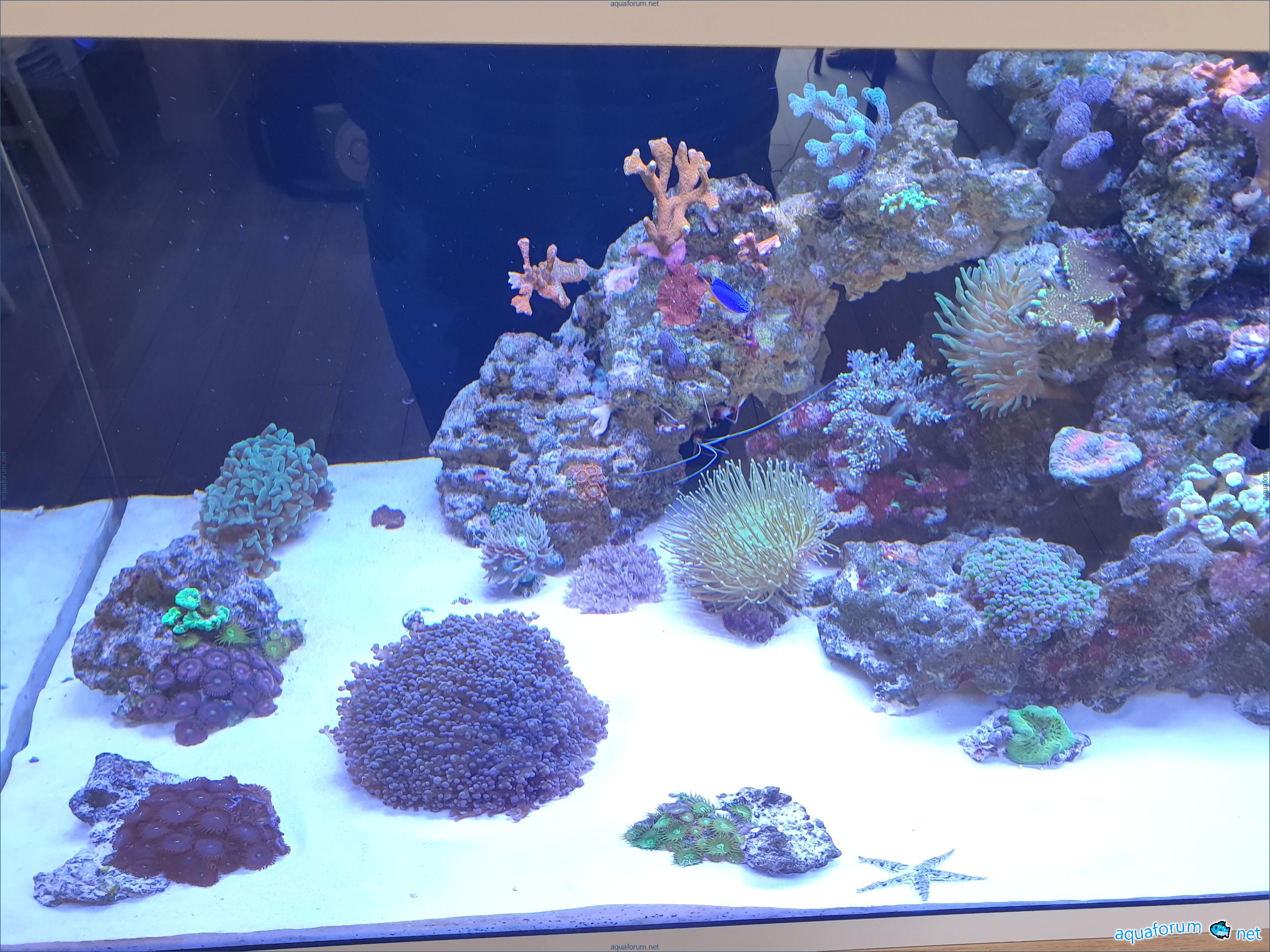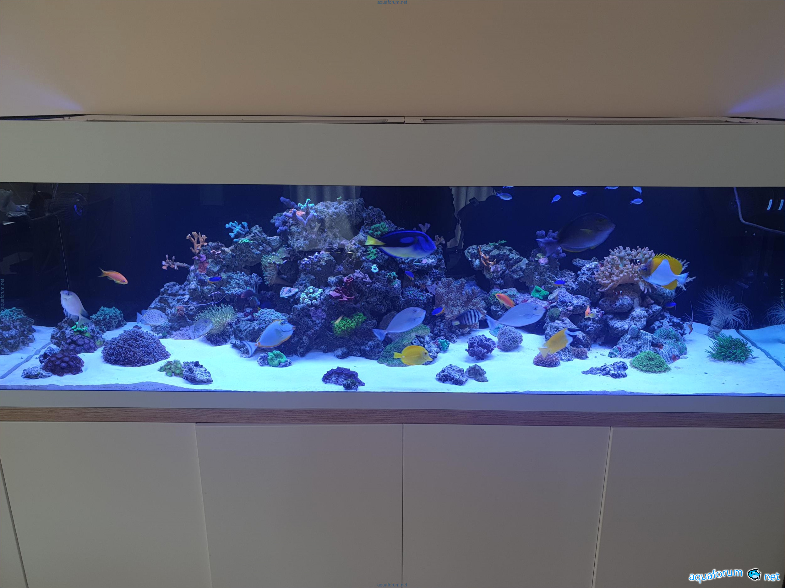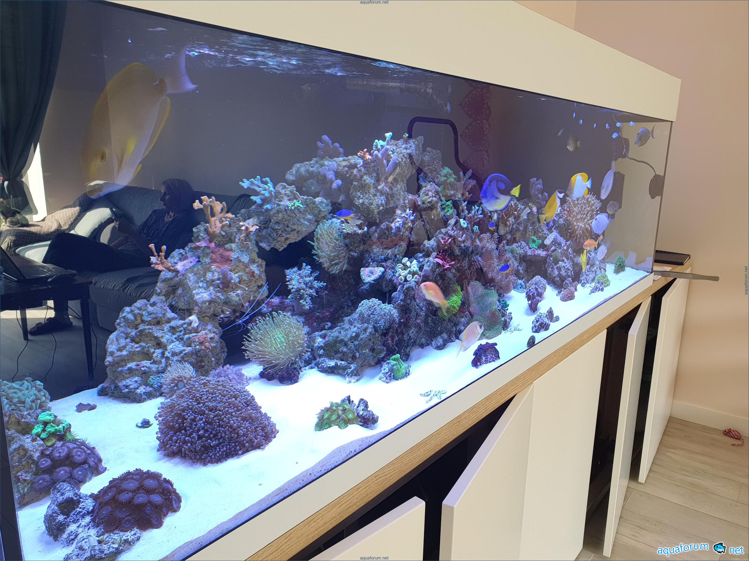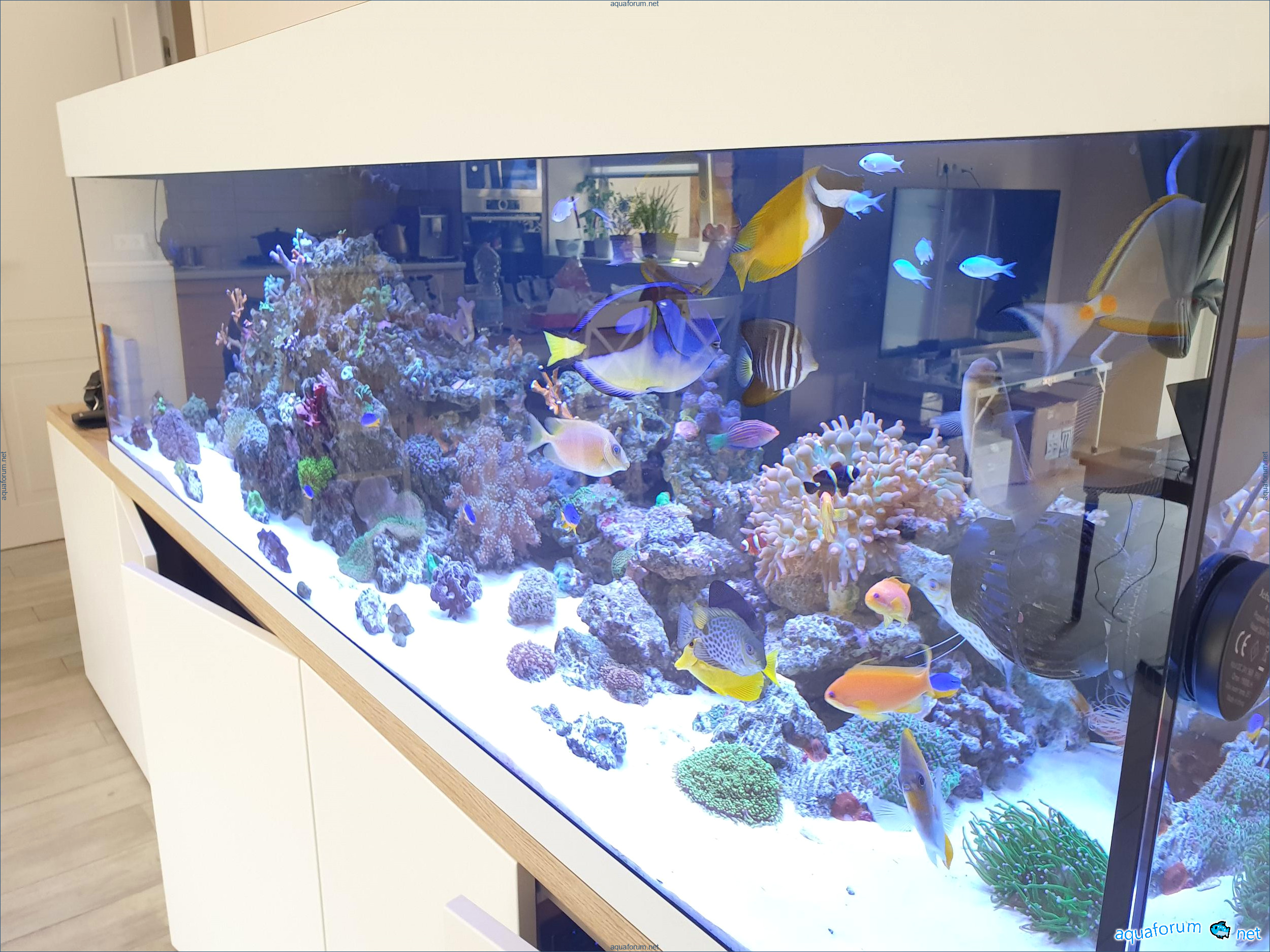 Good day, I have long dreamed of the sea, but have neverdared to do it, and now in the new home, a place for an aquarium was provided. This is my first experience with the sea, and kind people have helped me with advice. I custom-made the aquarium 2000*600*600, with three pumps - sow15 for circulation and jebao 10 for water movement. The lighting is LED, 500 watts, 6 channels, with a duration of 12 hours. In the sump, there are biospheres, an algae reactor (in anti-phase), a skimmer, and UV. I used Red Sea Coral Pro Salt for the initial setup, which I started at the beginning of this year. I launched it on live rock, live sand, and a little bit of bacteria, and it started up without much trouble (although I was warned about it). The water parameters are: KH 8, PO4 -0 (not detectable with Salifert), NO3 -5, Ca420, Mg 1360. The inhabitants include a sand bed of around 3cm, with 6 snails and 8 sand stars, which manage the cleaning. I use a Jebao WiFi dosing pump for Tropic Marine supplements, and I also add a bit of KH and CA, but I dose Mg more heavily compared to the others. I haven't yet learned how to take good photos, and the ones I've taken are sideways - they look fine on the computer, but not