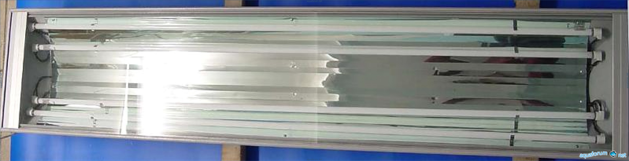 Se hizo una lámpara así: 160 cm 4x80w T5. Por ahora no se han instalado las bombillas de mercurio, pero creo que se pondrán más adelante. Se ha prestado mucha atención al reflector, que tiene forma de parábola y está hecho de aluminio pulido.