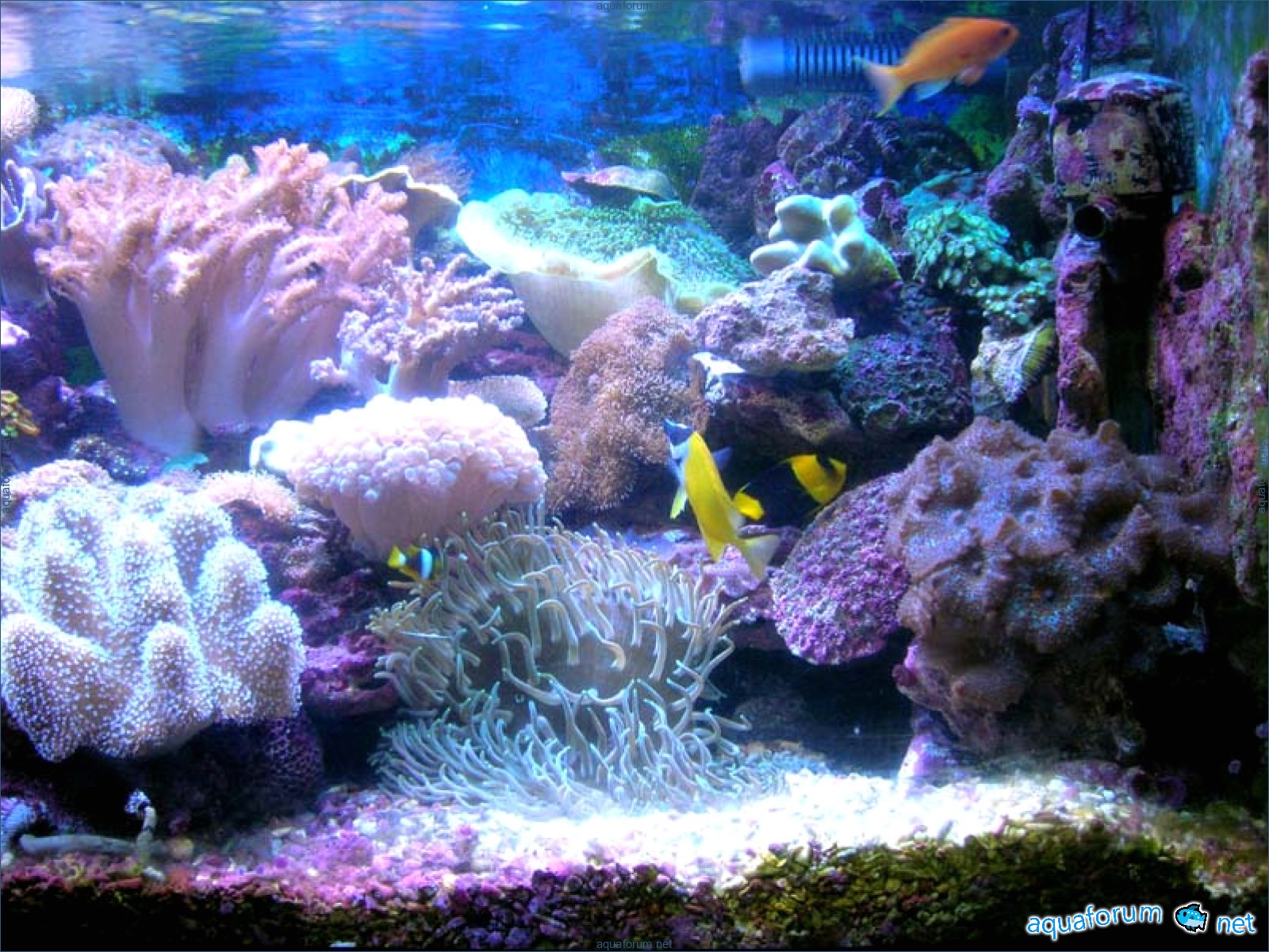 در آکواریوم مرجانی 650 لیتری، 6 فیلتر جلبکی 150 لیتری، Nitratreduktor 1000-Aqua Medik، Turboflotor1000Multi+ اوزونساز و AT 2300 (چین)، روشنایی 2 MH 150 وات 20000K، 3 لامپ آبی ف