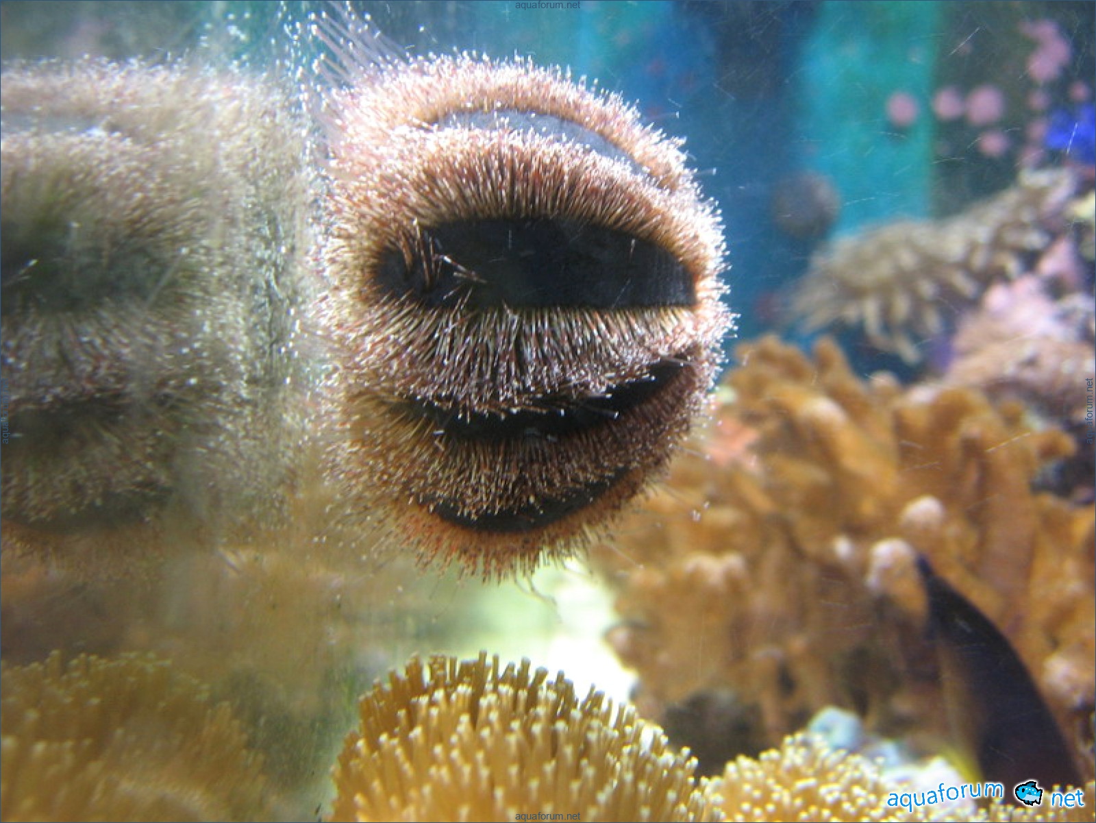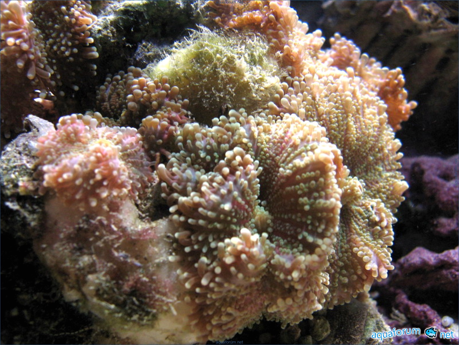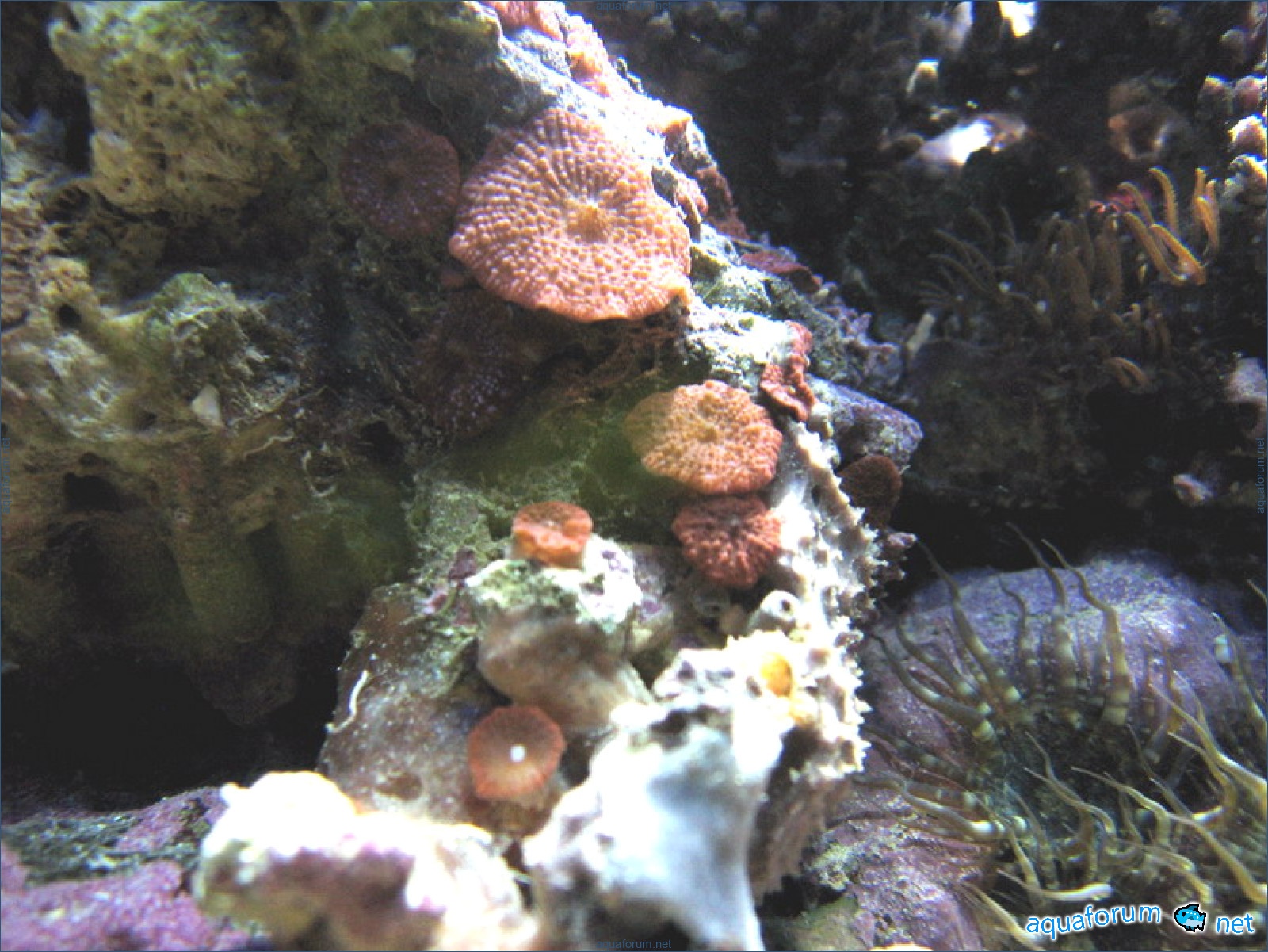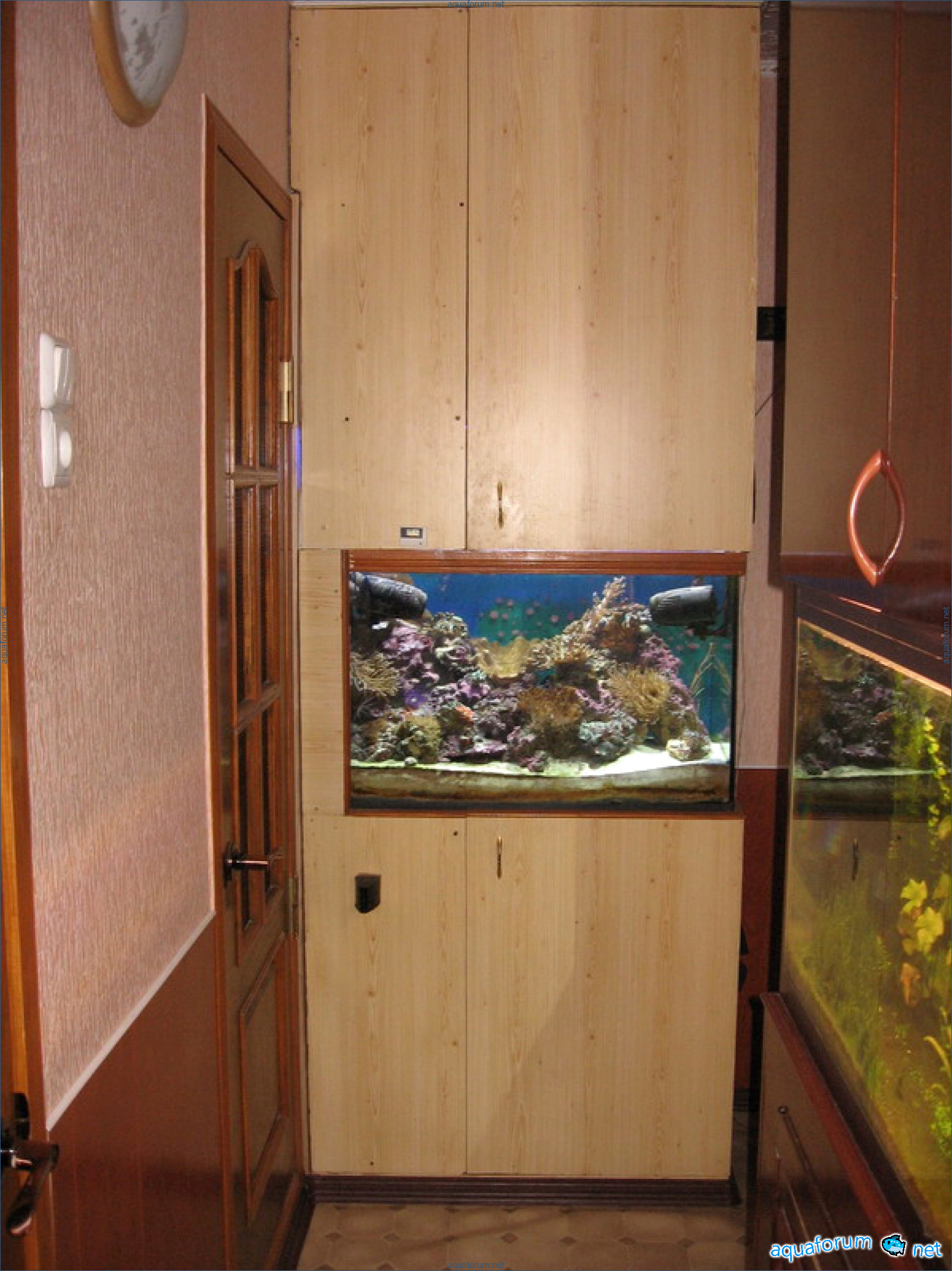 Eh bien, c'est à mon tour maintenant, il est temps de montrer. Le système est standard. Âge de 1 an. Farine de calcium - DSB. Pierres vivantes - 20 kg Grès - 20 kg Battez, frappez - C'est du n'importe quoi avec les pierres vivantes, exagéré à l'extrême. Éclairage : MH BLV 150 W - 14 000 K, Atman FL 20 000 K 4x30 W. Bac à algues en haut, pompé depuis le sump en bas, retour dans l'aquarium principal. Écumeur Atman modifié (description et photos plus tard) Retour : tête Atman 4500 l/h via UV. Ventilation (visible sur la photo) : soufflante basse (en continu), soufflante haute (fonctionne uniquement avec MH) aspire. L'aquarium est refroidi sur trois côtés. Alimentation secteur et secours (retour et écumeur) via ASI + batt