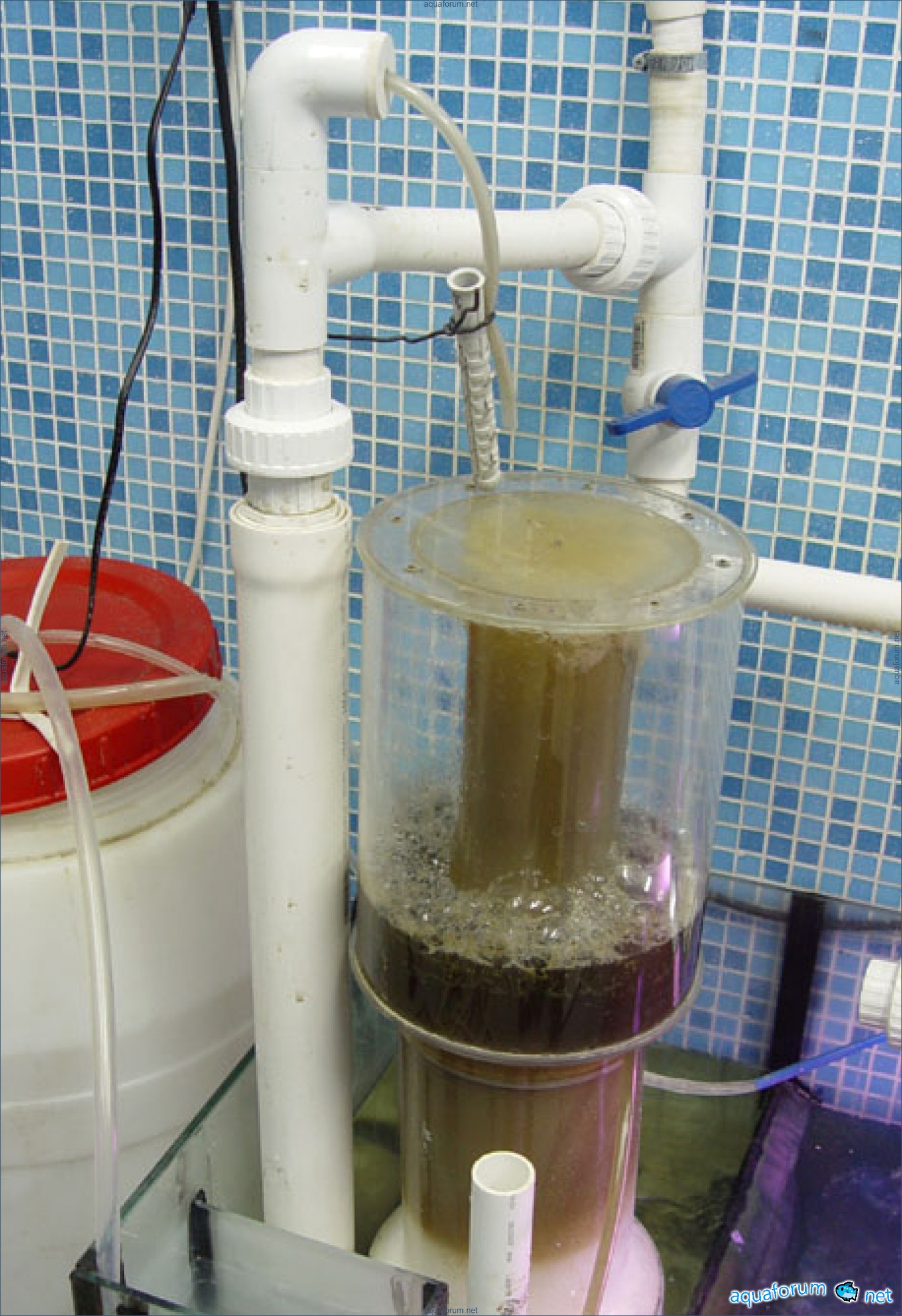 800リットルのアクアリウム、2000x600x700ミリメートル。ろ過装置は地下室にあり、スキマーは同様のものを使用。照明は3つの250ワットと4つの80