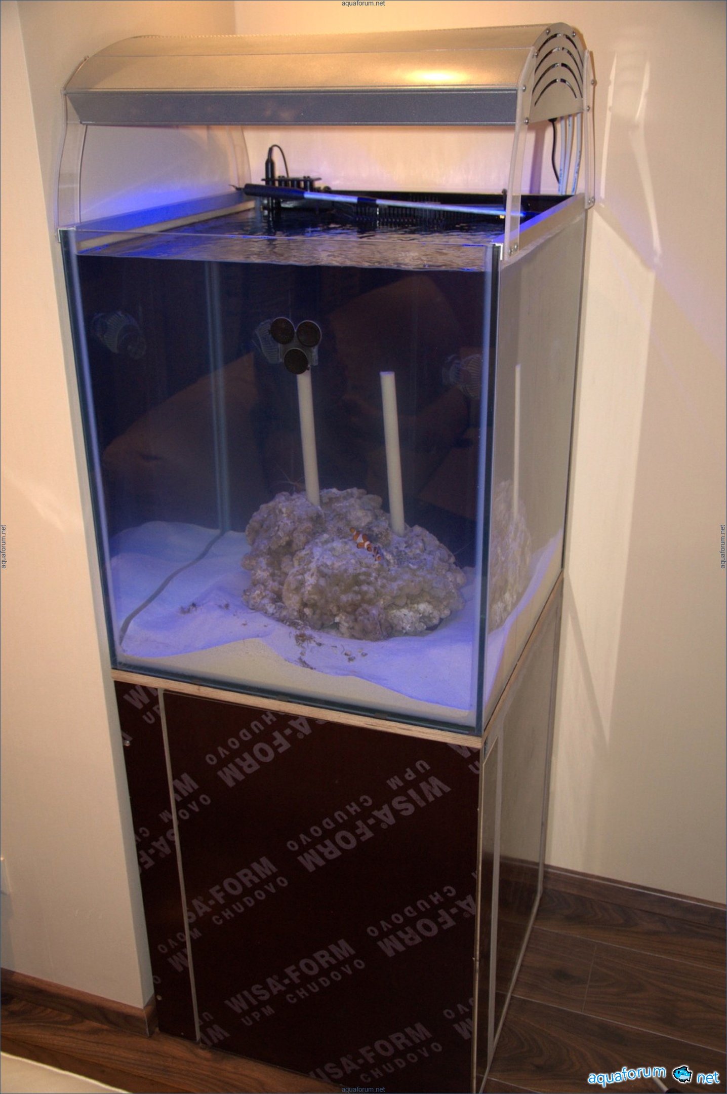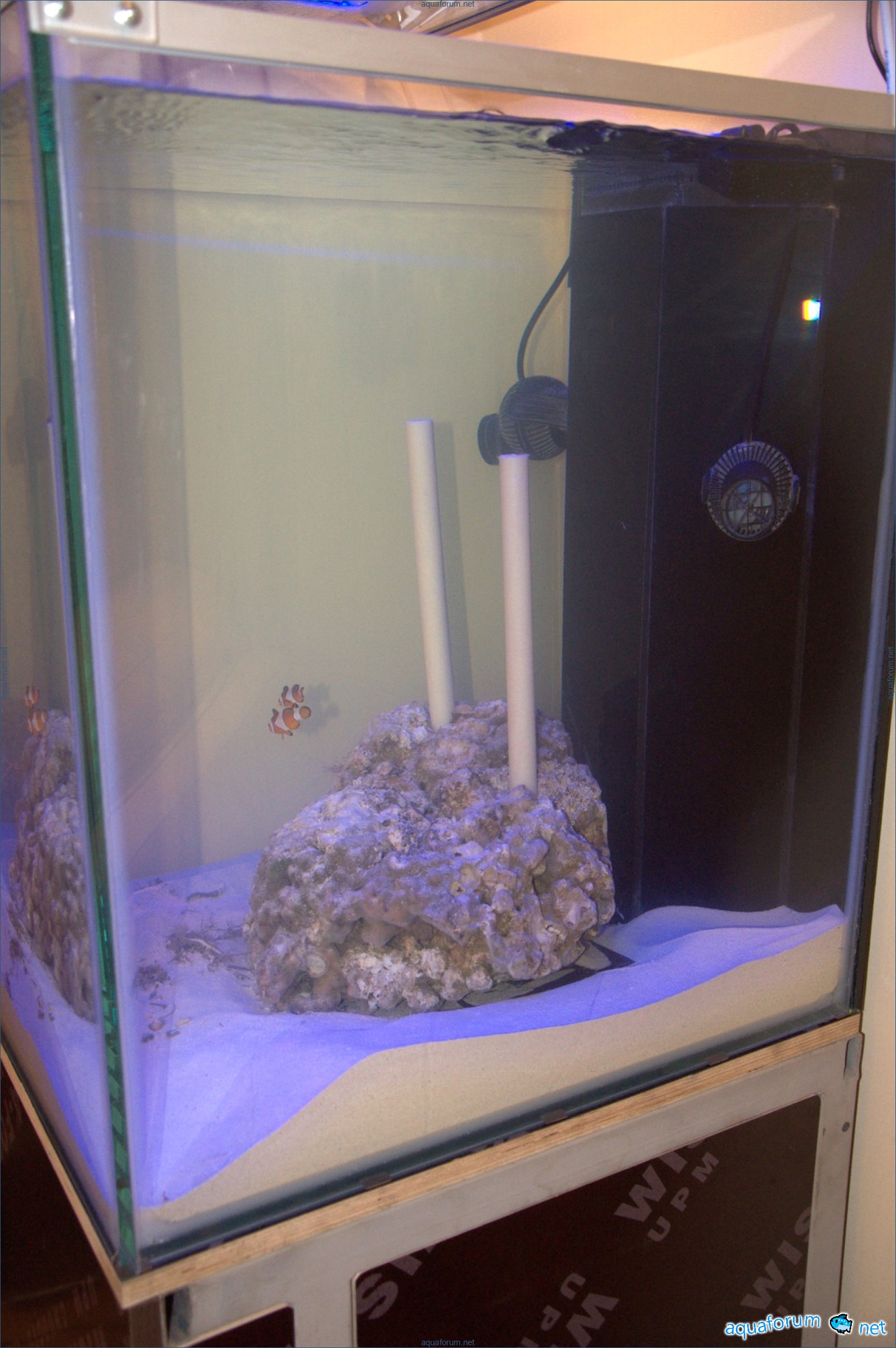 こんにちは!海は当初魅力的でしたが、プロセスの複雑さが恐ろしかったため、1年前にタンガニーカを飼うことにしました。それは後悔していません。トロフィーの驚くべき魚たちの興味深い行動です。しかし、夢は夢であり、それを忘れることはできません。長い間ネットを探し、文献を研究した末、この簡単ではない一歩を踏み出すことにしました(妻の承諾を得るのに時間がかかりました)。アパートの最後の場所、60x60cmのスペースに60x60x60cmのキューブを設置することにしました。金属製の20x40cmの角材の枠組みに、18mmの防水合板を入れました。時間をかけて外側をペイントされたガラスでおおうつもりです。まだ生きた岩がないので、ドライロック石を置き、オシリアリスを入れることにしました。バクテリアを使って立ち上げます。休暇中に2匹のドクターフィッシュを追加しました。生き物とミミズをPopsuyから提供していただきました。ミミズと一緒に不明な生物も入っていました。pH 8.01、塩分1.024以外は測定していません。生きた岩を待ち、良い発展を