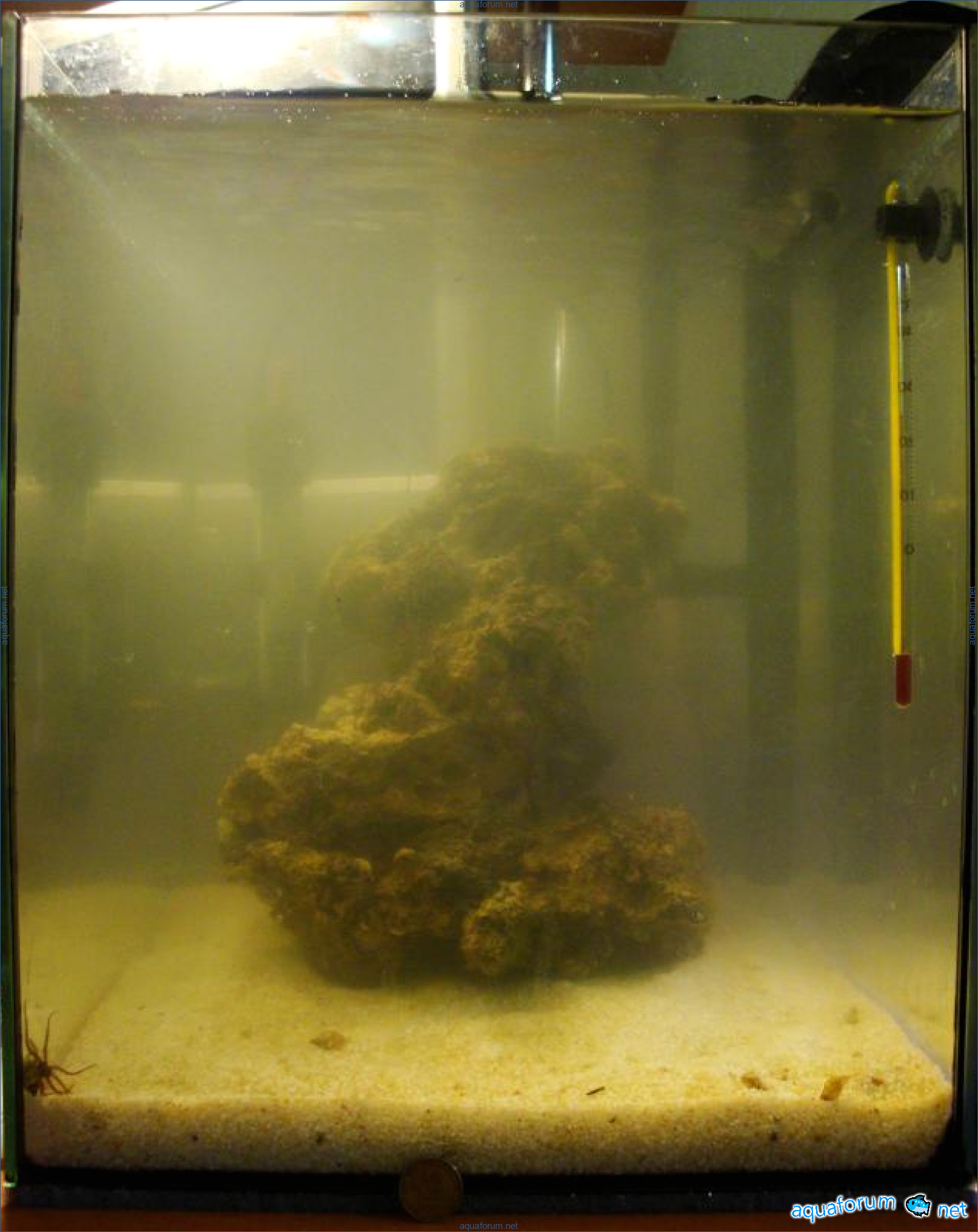長い検討の末、フォーラムを読み、ついに海水水槽を立ち上げることに決めました。ロックスケープナノコンテストには応募できませんでしたが、別の方法を探しました。中古のAquavalAquael シュリンプセット水槽(フィルター付き)を手に入れ、ロゴを取り除き、シリコンを削り落としました。軽くなった水槽が出来上がりました。具体的な内容は以下の通りです: