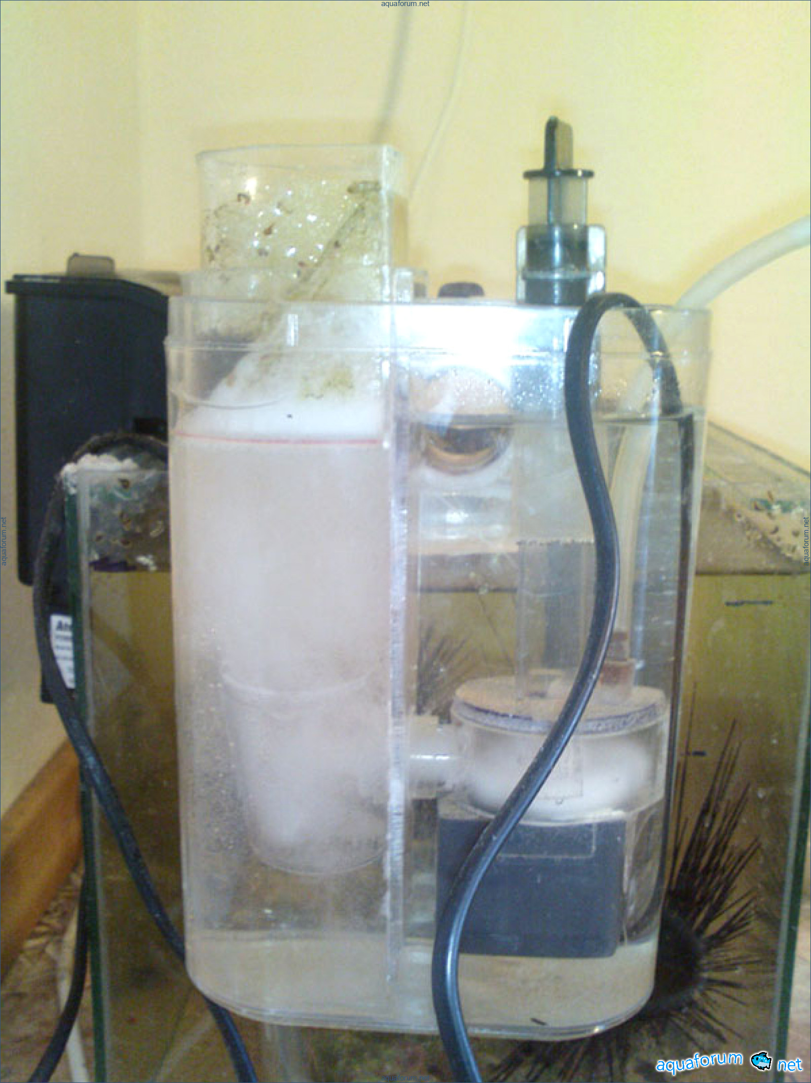 Sugeng siang. Pungkasan, sawise mikir suwe, aku wis nggawe model skimmer sing luwih apik kanggo akuarium cilik. Dadi, aku nggunakake pompa Atman 5 Wt, potongan akrilik lan sawetara barang cilik liyane. Fokus utama yaiku ing kenyamanan perawatan lan kinerja sing berkualitas. Loro tujuan sing ditetepake, miturutku, wis digayuh. Pompa dilengkapi kamar rotor gedhe, rotor dhewe dilengkapi baling-baling gigi rong baris kanthi posisi horisontal. Cangkir skimmer bisa digeser sacara vertikal, sing menehi kesempatan kanggo ngatur "kekeringan" busa. Perawatan banget gampang, kaya ing Deltec MCE-300: copot cangkir, cuci, lan siap. Skimmet, miturutku, banget kandel, sing ora bisa ora nyenengake.... Sabanjure foto-foto sing jelas nuduhake piranti kasebut: