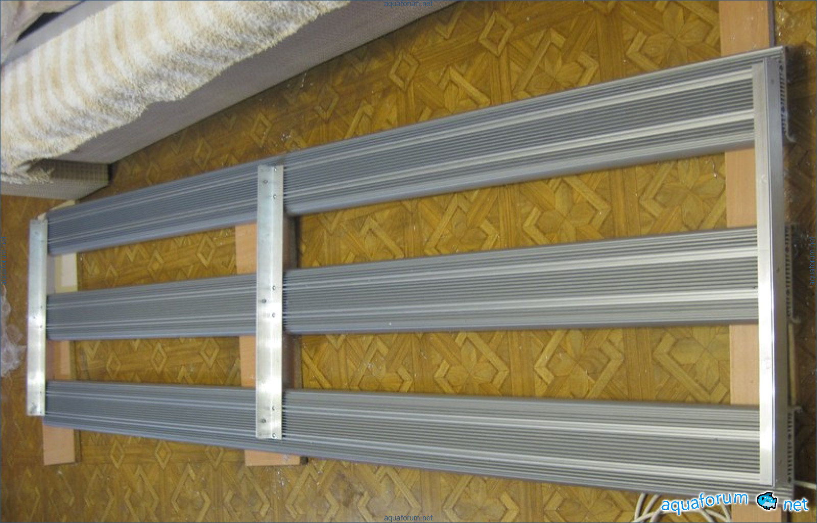 Dasar lampu iki yaiku enem balok-radiator saka Black Alex. Kenapa enem? Amarga total dawa lampu 2400 mm lan ana sawetara masalah karo pengiriman balok dawa iki, uga karo pemasangan lampu ing mangsa ngarep (kita loro karo Sanya angel ngangkat). Mula, diputusake kanggo nggawe lampu komposit. Ukuran saben bagean - 1200x600 mm. Segmen kaya ngene wis gampang digawa siji. Saliyane balok, lampu iki nggunakake 3 m sudut dural 40x40 mm. Sambungan antarane bagean dilakoni nganggo telu baut M5 kanthi bantuan paku M4 sing disekrup ing salah siji bagean (ing bagean liyane, lubang dilubangi diameter 4 mm). Perlu dicathet, yen nglawan pangarepan kita, sambungane cukup gampang. ................ Terusake.
