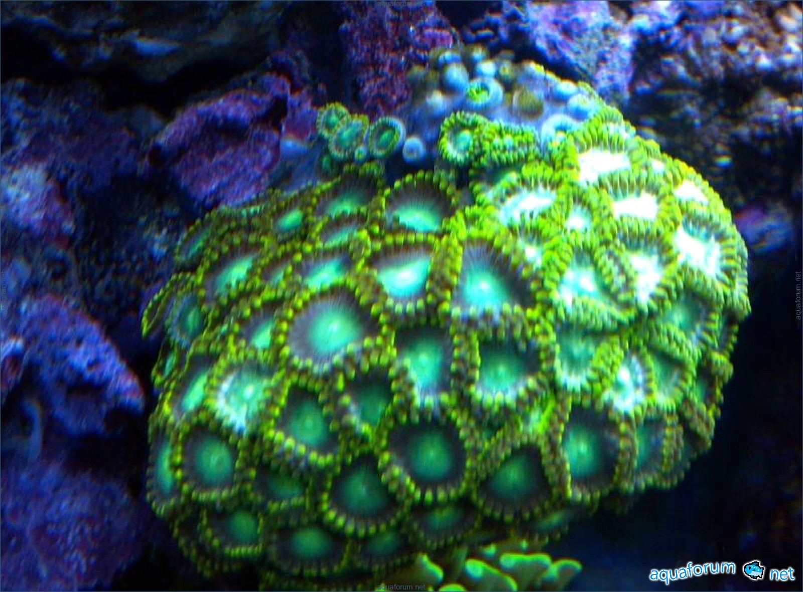 자오스가 열리지 않게 되었습니다. 군체는 약 6개월 동안 잘 지냈습니다. 그리고 나서 폴립들이 차례로 닫히기 시작했습니다. 군체 №1(1번째 사진)은 전부 닫혀 있습니다. 군체 №2(2번째 사진)는 현재 10%의 폴립이 닫혀 있습니다. 두 번째 군체에서 닫힌 폴립들이 죽어가는 것처럼 보이는데, 왜냐하면 그들이 수축하고 어두운 녹색의 막으로 덮여 있기 때문입니다. 오늘 1리터 용기에 요오드를 넣고(20방울, 10분) 담갔다가, 그 후에 역삼투압으로 헹궈주었습니다. 현재까지는 결과가 없습니다. 닫힌 폴립들에 점점 더 많아지는 녹색 막에 의심이 가지만, 이게 무엇인지 이해할 수 없습니다.
