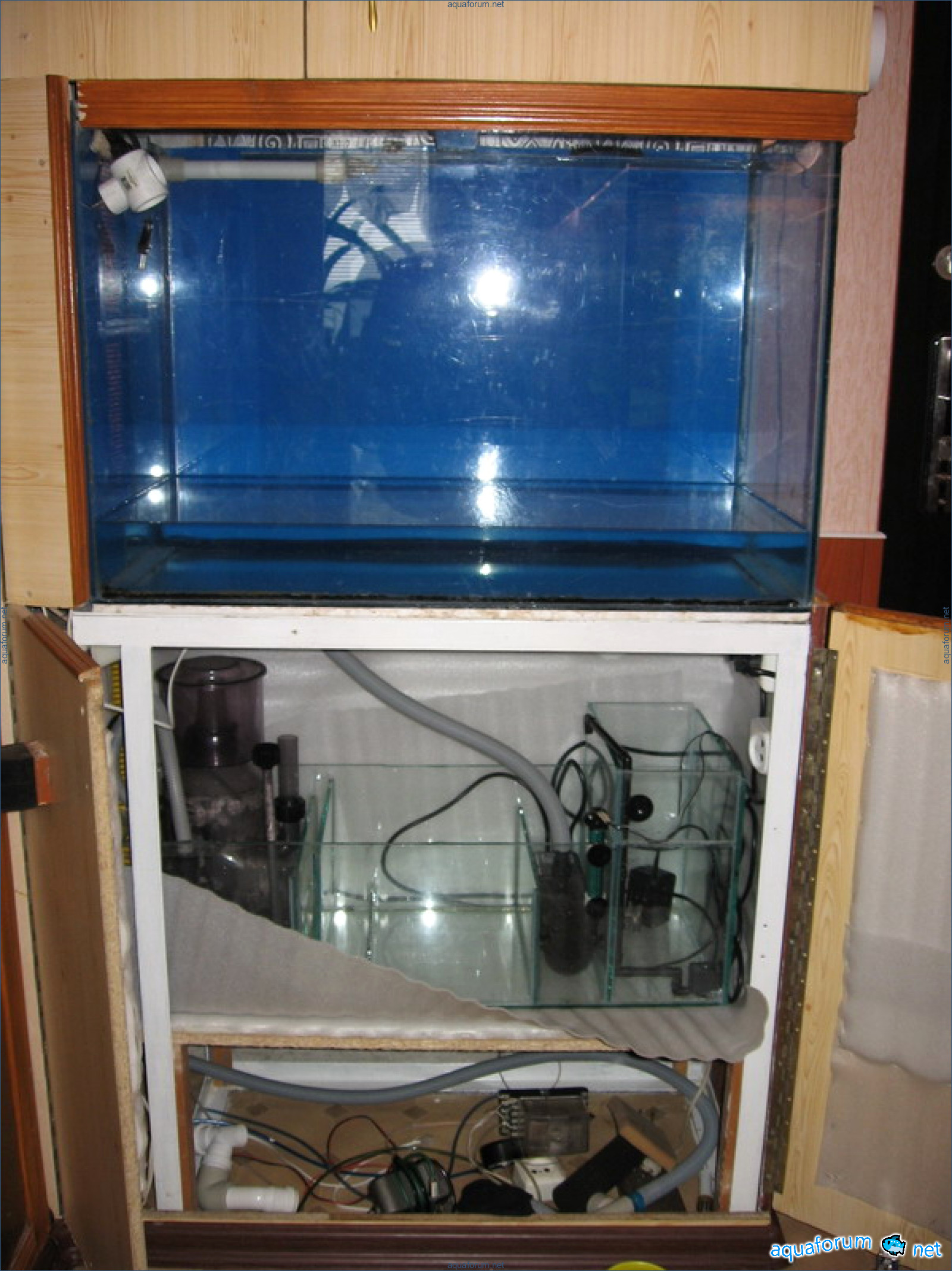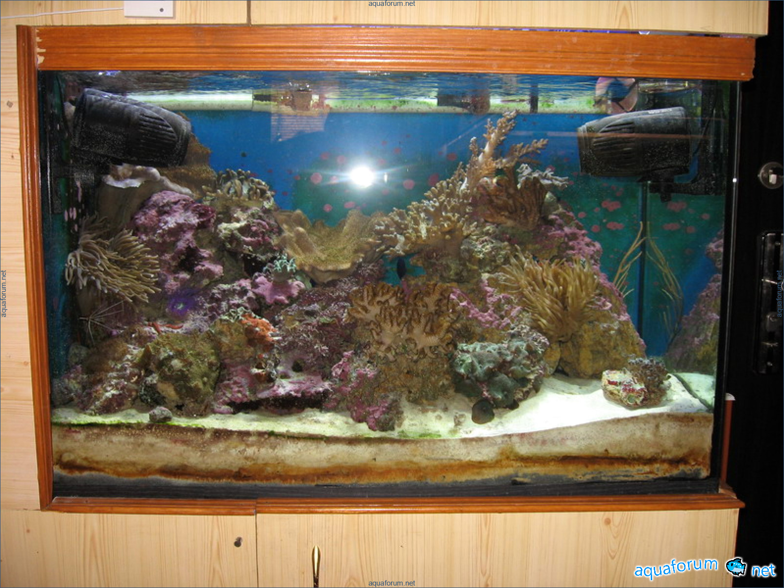 이제 내 차례가 왔군요. 시스템은 일반적입니다. 나이는 1년입니다. 칼슘 분말은 DBS입니다. 살아있는 돌 - 20kg, 사암 - 20kg. 두들리고 차도괜찮습니다. 살아있는 돌은 과장되었습니다. 조명: MH BLV 150W - 14000K,형광등 Atman 20000K 4x30W. 상단에 녹조제거기가 있고, 아래에서펌프로 순환됩니다.아트만 거품제거기는 개조되었습니다(나중에 설명과 사진이 있을 것입니다). 회수: Atman 헤드 4500L/h UV 통과. 환기(사진에서볼 수 있듯이) 하단은 계속 공급, 상단은 MH 작동시에만 배출합니다. 수조는 3면이냉각됩니다. 주전원과 비상 전원(회수 및 거품 제거기)은 UPS와 자동차 배터리를 통해 공급