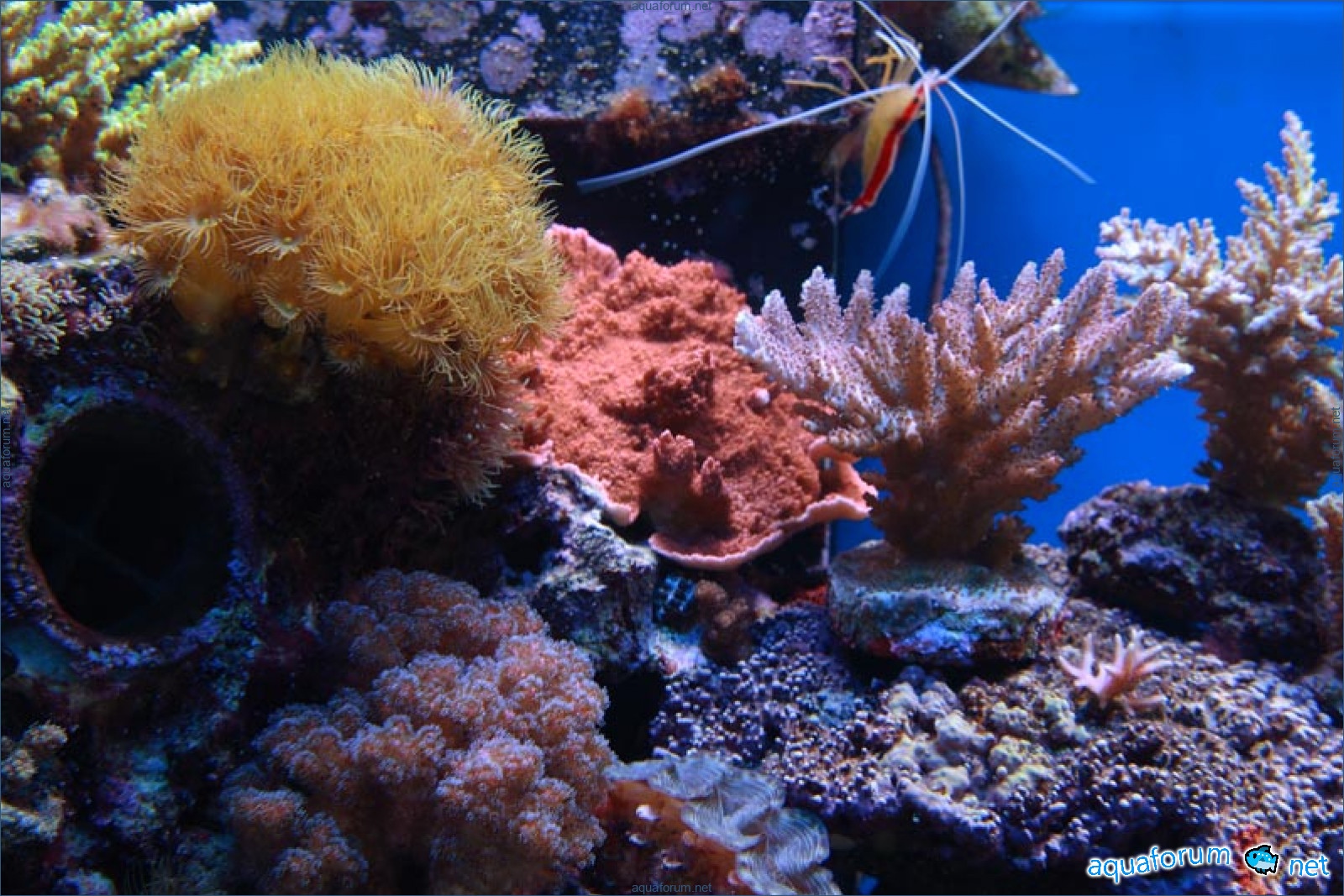 Selamat malam. Saya juga memutuskan untuk menyumbang di forum ini. Tidak begitu patriotik rasanya. Saya ingin mengucapkan terima kasih kepada semua yang telah membantu melancarkan sistem ini, yang akan genap setahun dalam beberapa bulan. Terima kasih khusus kepada Rey Tkach yang memberikan bantuan yang tak ternilai dalam menciptakan terumbu pada tahap awal (dan bukan hanya pada tahap awal), serta tim Sergey a yang menyediakan kehidupan yang luar biasa. Deskripsi awal dijelaskan di sini: Sedikit deskripsi sistem: ukuran - 1600x650x700 (tinggi) + sump + mangrove (tetapi tentang itu nanti) pencahayaan - 3 MH 250 watt reef-crest 12000K + 2 aktinik T5 dari Fauna Marin aliran - 2 Tunze pada pengontrol + Sicce 5000 (untuk sirkulasi air) Skimmer - pada injector Beckett, produksi Rey Tkach. Setelah mengganti pompa dengan Resun PG-10000 - menjadi sangat "luaruar biasa" Dalam sistem ada sekitar 100 kg. LR (batu hidup) + 20 kg. LR (batu hidup) di mangrove. Di akuarium ada pasir aragonit hidup - 5 cm., di sump - 9 cm., di mangrove - Mineral Mud dan pasir aragonit. Dalam sistem, di filter kanister terdapat 4 ons Chemi-Pure Elite + Purigen. Reaktor kalsium dari Reef Octopus tidak dapat menangani selera sistem ini, jadi saya menambahkan Fauna Marin. Dan s