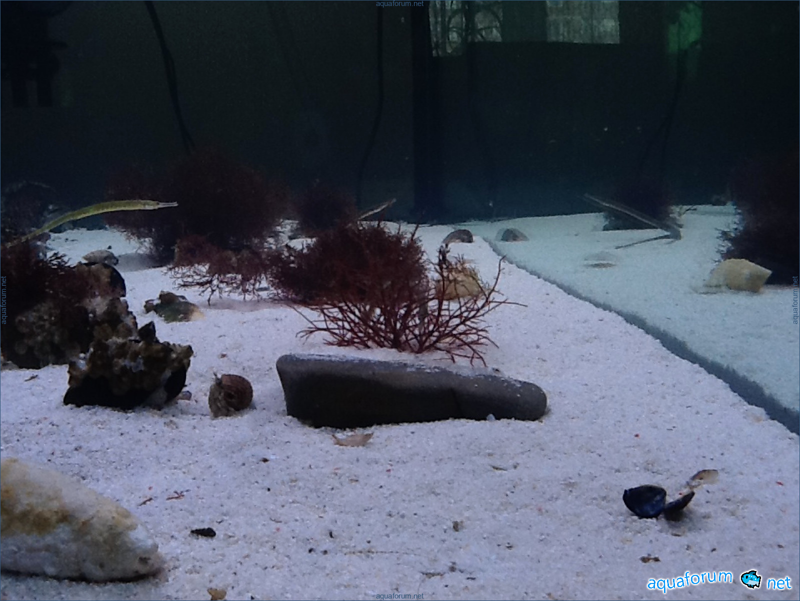 Peralatan: Akuarium 300l, penapis Reef Octopus 500l, penapis arang luaran 1000ml, pam aliran 3000l/j, lampu SunSun HDD1200 dengan dua lampu Aqua Medic Reef White 15000 dan Plant Grow masing-masing 54W. Hidupan: 9ikan jaikan jarum pelbagai jenis (dua ikan sebelah mata (gloss)), 7 atau 8 ikan anjing sfinx, 10 ketam Diogenes, 2 jenis udang, 1ikan layar, 3 moluska tidak diketahui jenisnya (termasuk tiram dan sejenis scallop), dan rumpun rumput laut L