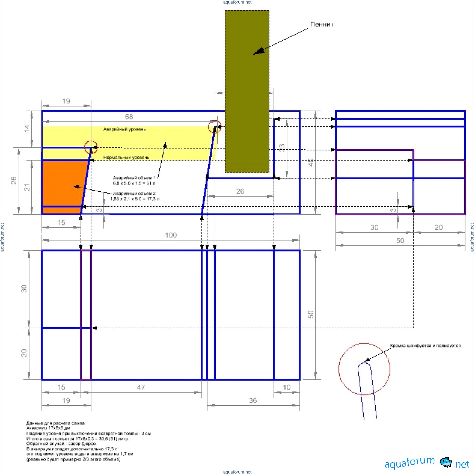 Думаю клеить аквариум . Основой будет тумба глубиной 40см, поскольку планирую навесной фильтр - ширина аквариума выходит 30см. Длина - 45-50см, какую делать высоту? Насоветуйте оборудование, химию, соль.