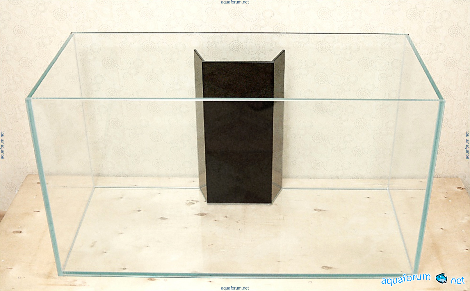 Стеклянный аквариум объёмом 105 л чёрного цвета.