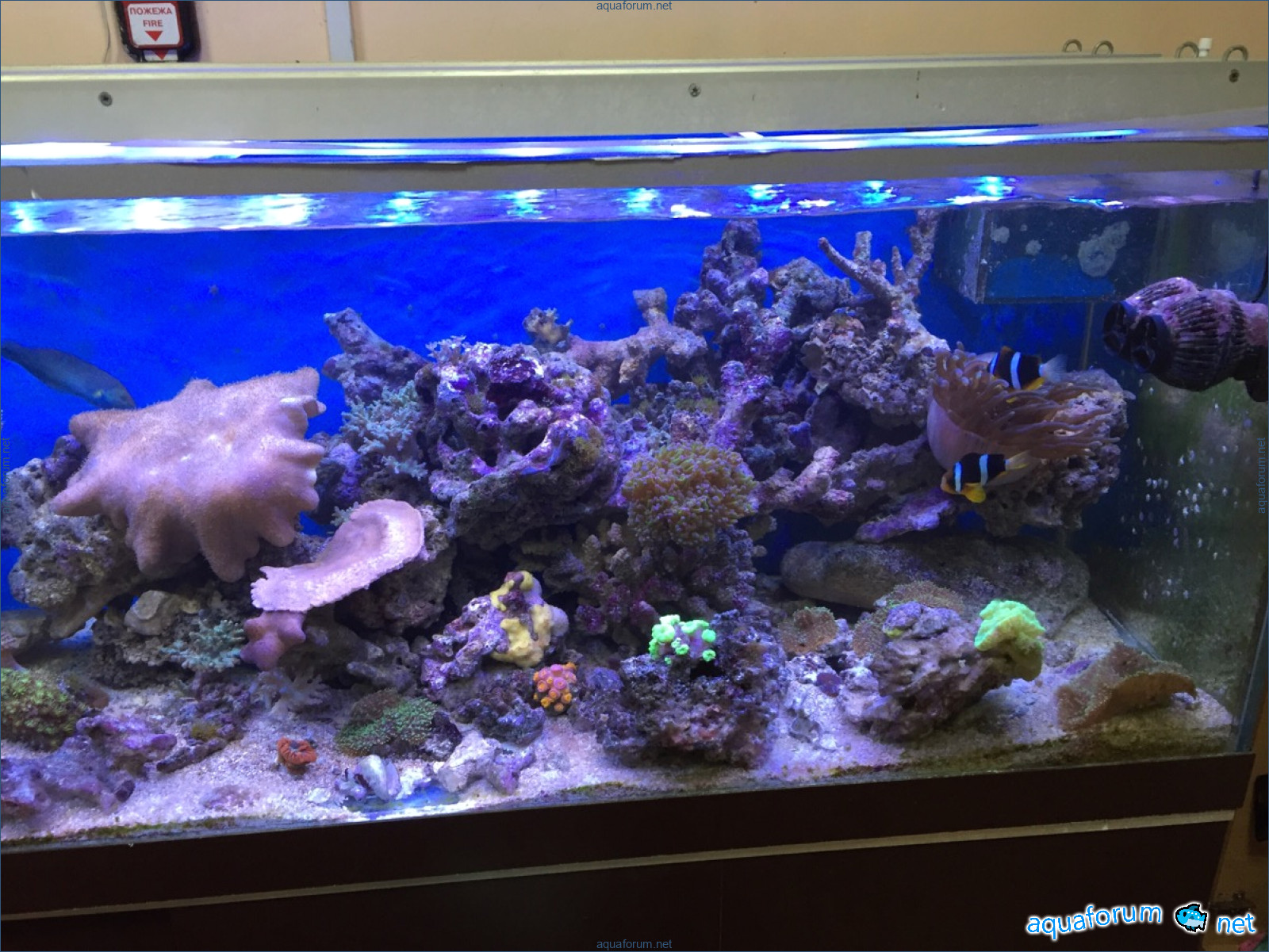 аквариум 400л, чуть меньше пол аквы камней, соленость 1.23, температура 25, соль тетра, воду меняю раз в две недели 50л