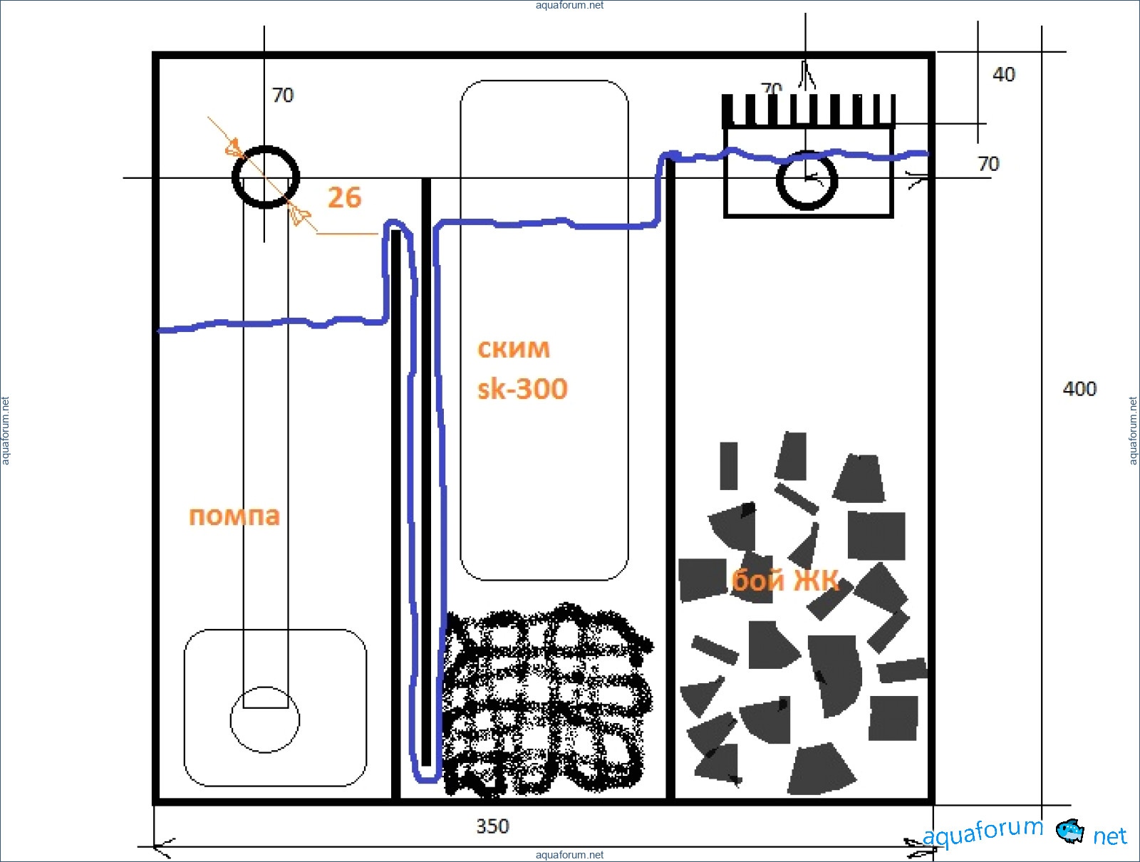Хочу море на 50л. Склеил аквариум после чего понял что нужен самп, места под отдельный самп нет.