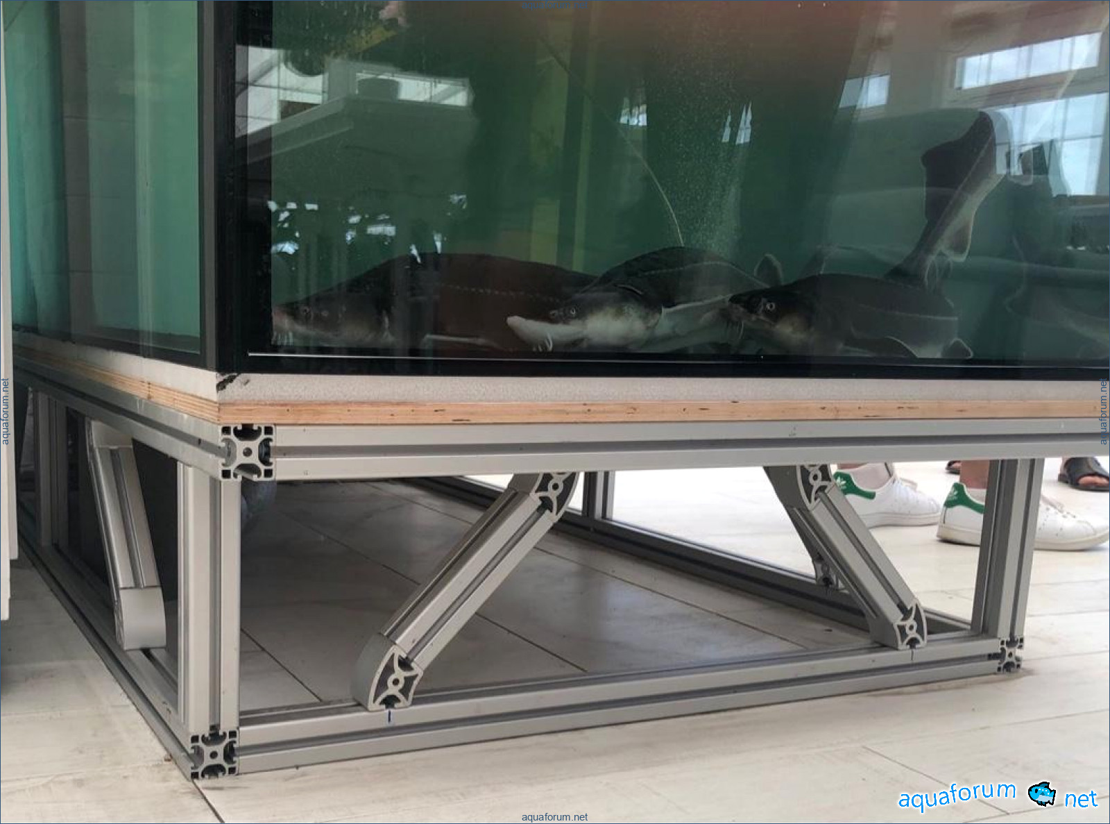 Одной из альтернатив металло-каркасным конструкциям под аквариум является интересное решение из станочного алюминиевого профиля.