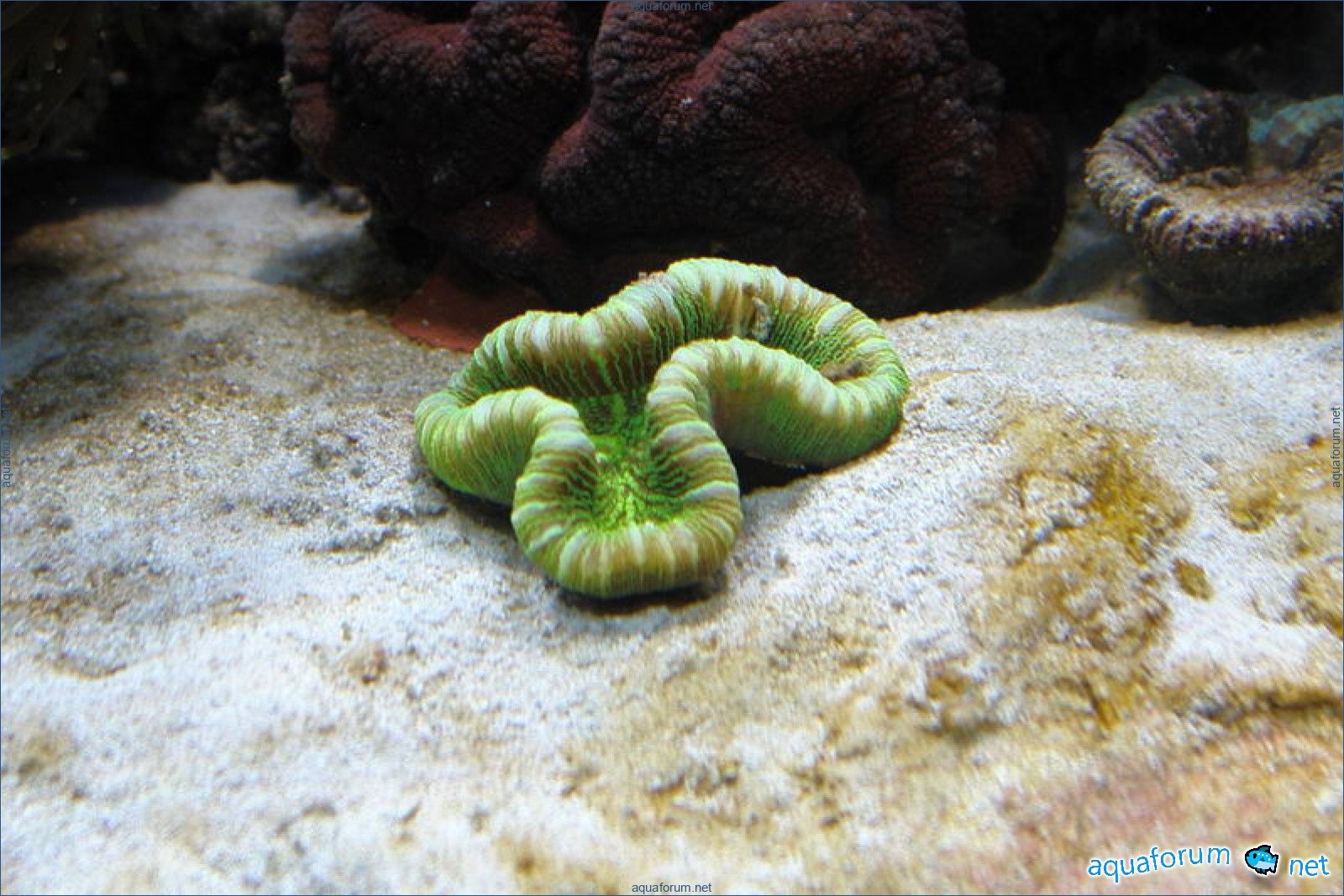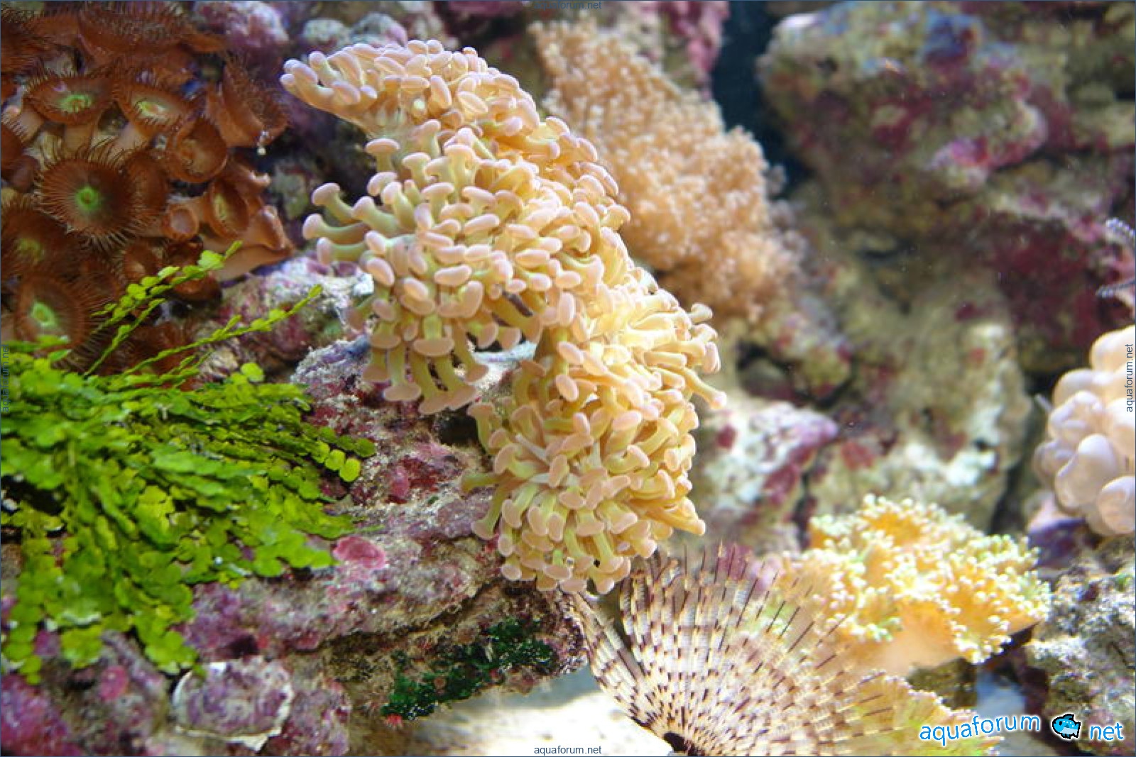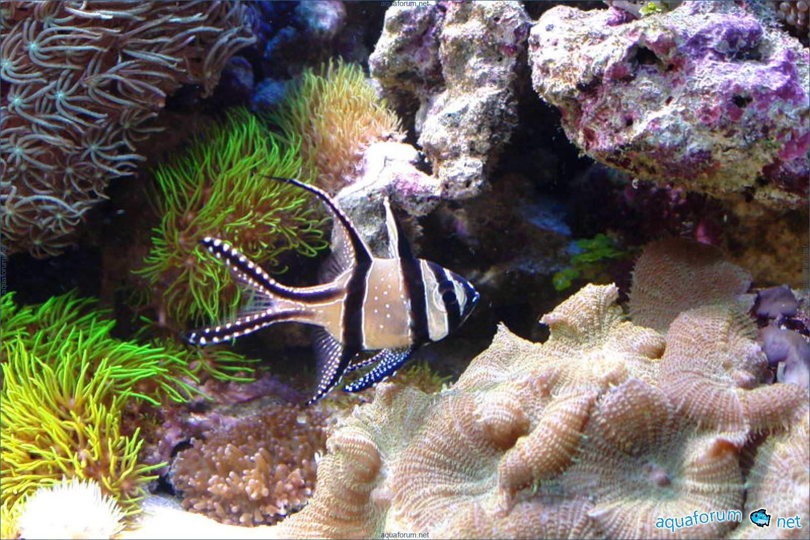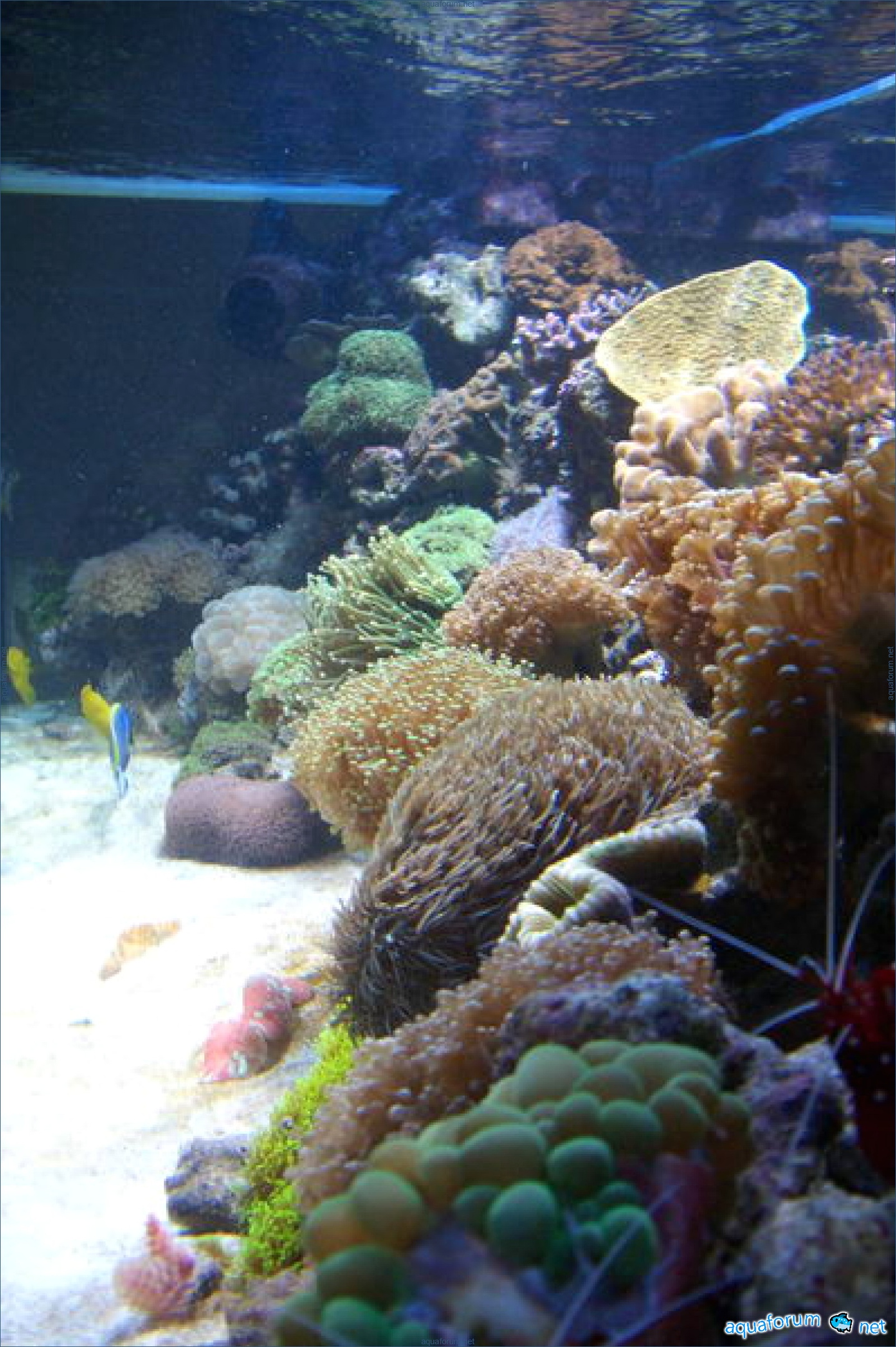 хочу показать свой аквариум 580л, эта аквариум запущена в декабре 2005 года, размеры 160-55-65см, соль редси, камння живого 80кг, песок аргонит 140 кг(Шумов Москва), самп литров 130 (точно надо померить). Свет металгалид 2 по 150 ват 1300к, 3 синих компакта по 24 вата (приобрел в Ароване). Пока несколько фото