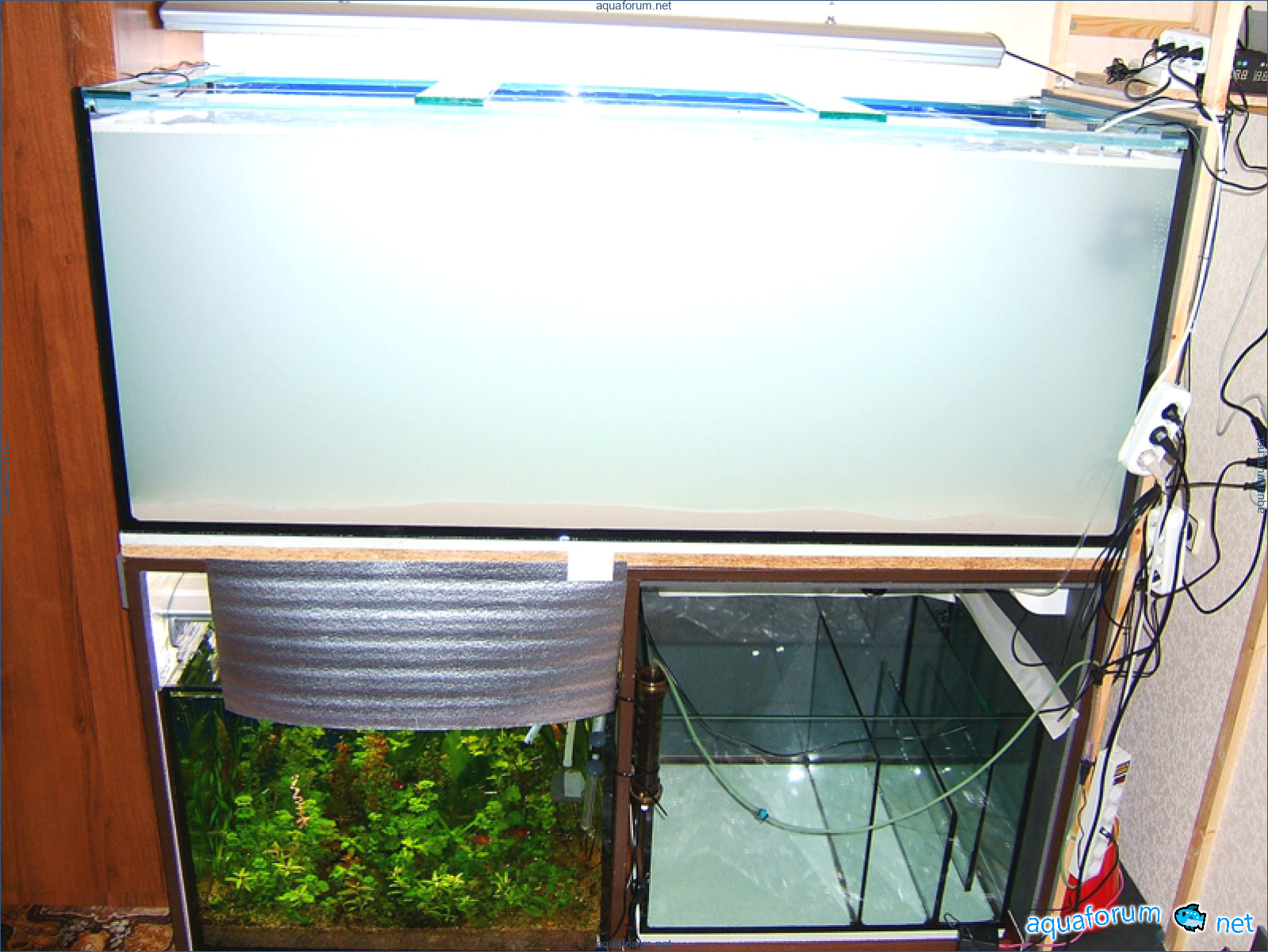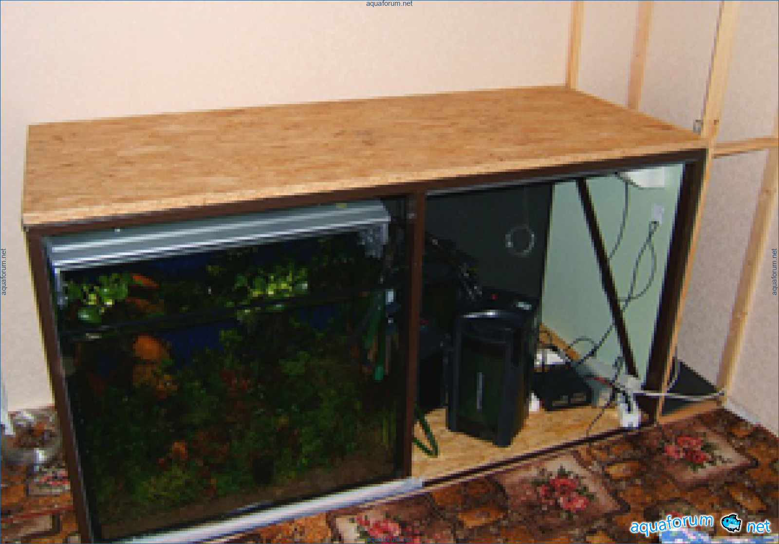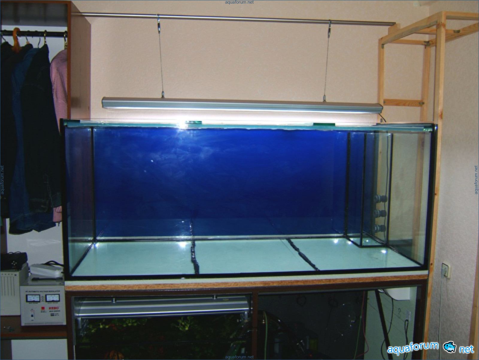 Фильтр для пресного аквариума засунул в одёжный шкаф (больше некуда), отгородив полкой, туда-же засунул 1 упс и ресуновский контроллер течения.