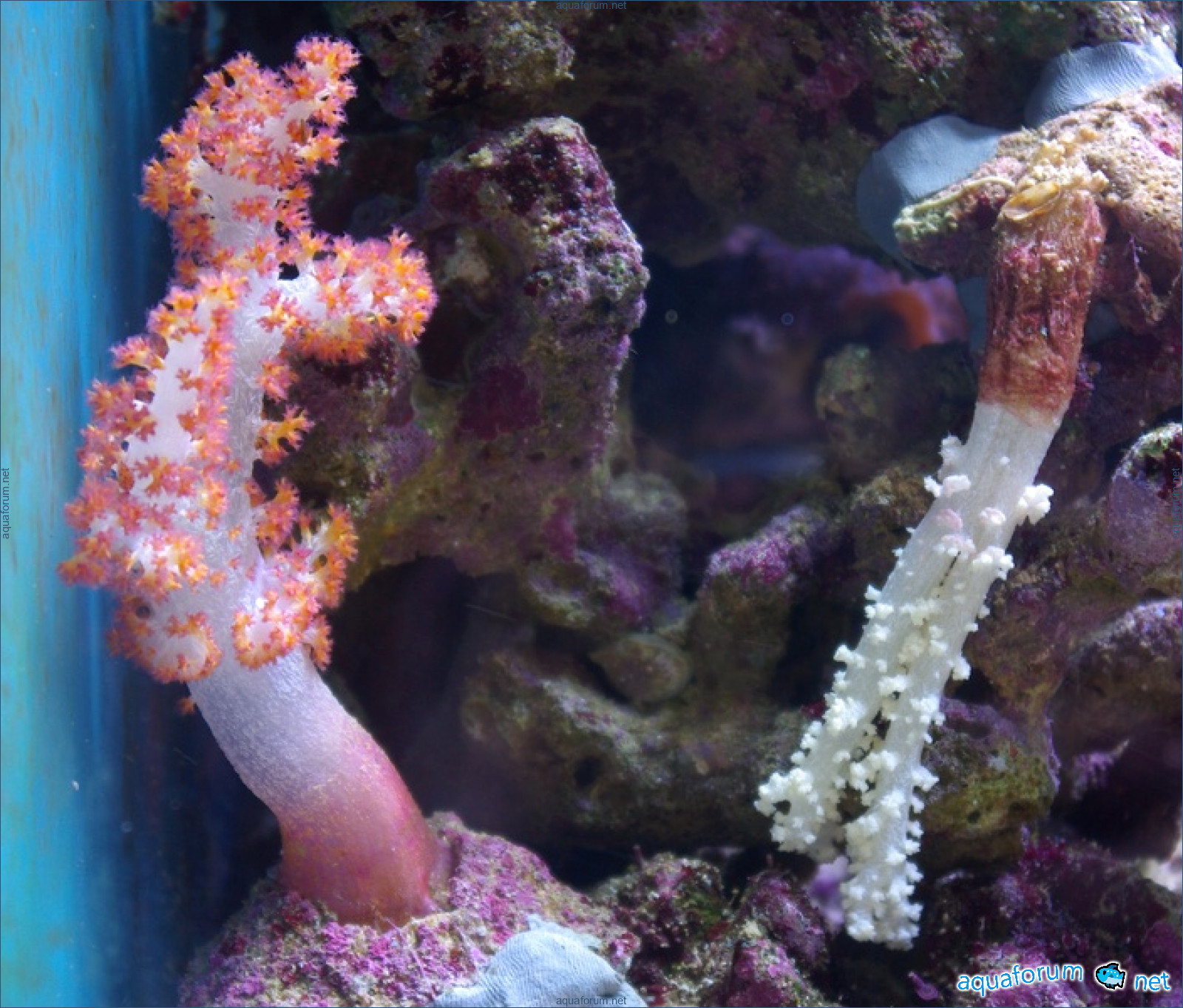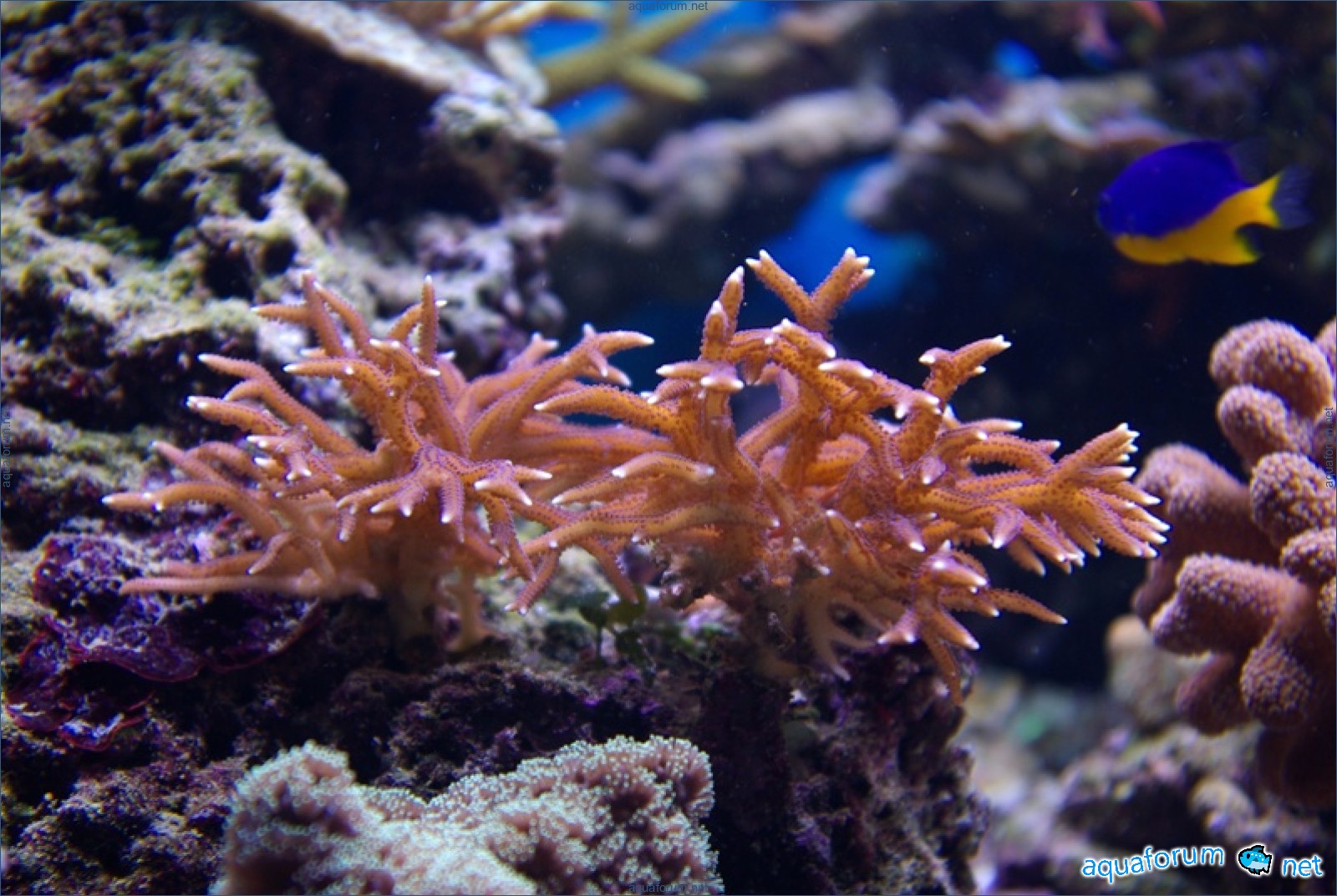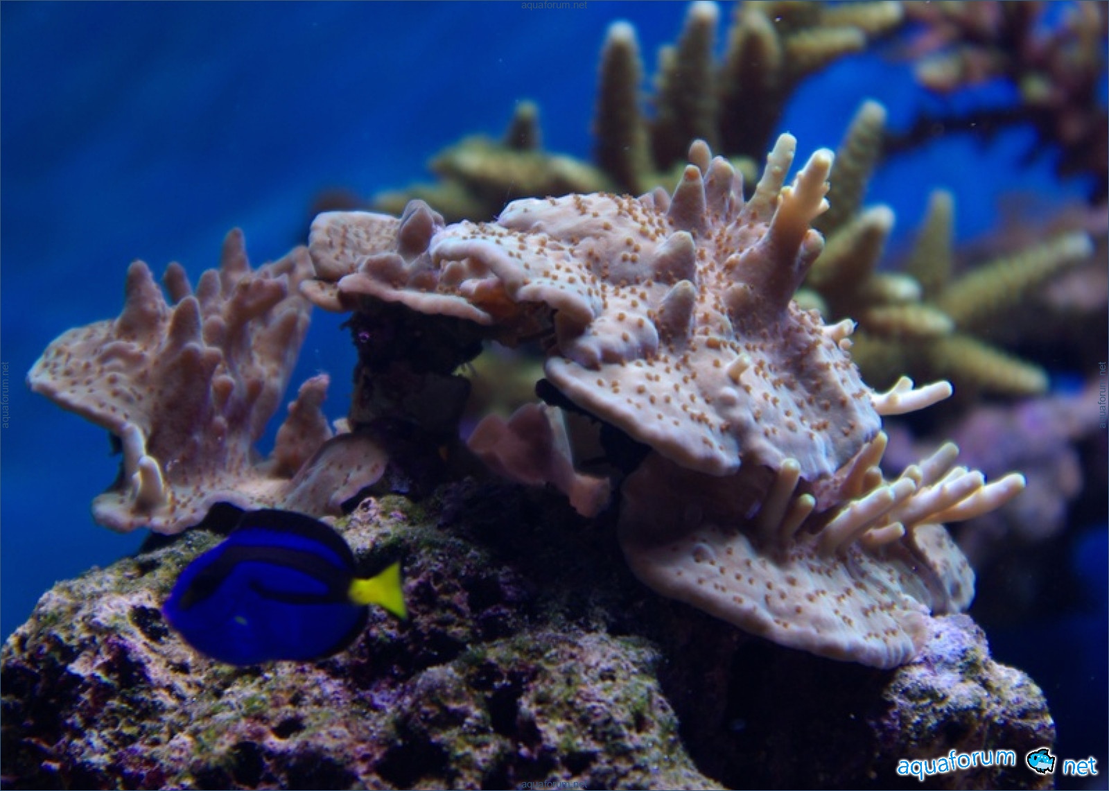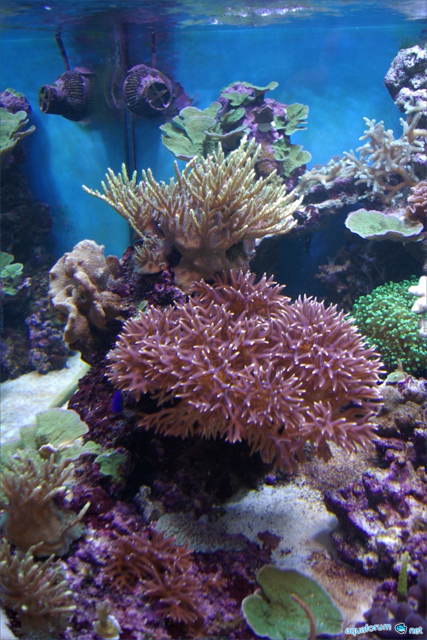 На сегодня думаю по боковым стенкам разместить мягкие типа клавулярия(под вопросом), корнулярия папуа.На вступы еэуфилии и фраги СПС-ов. На дно думаю зоантусы разместить. Когда небольшой фражик разрастается, он формирует красивый куст, а сразу большой не всегда получается поставить там, где хочется.