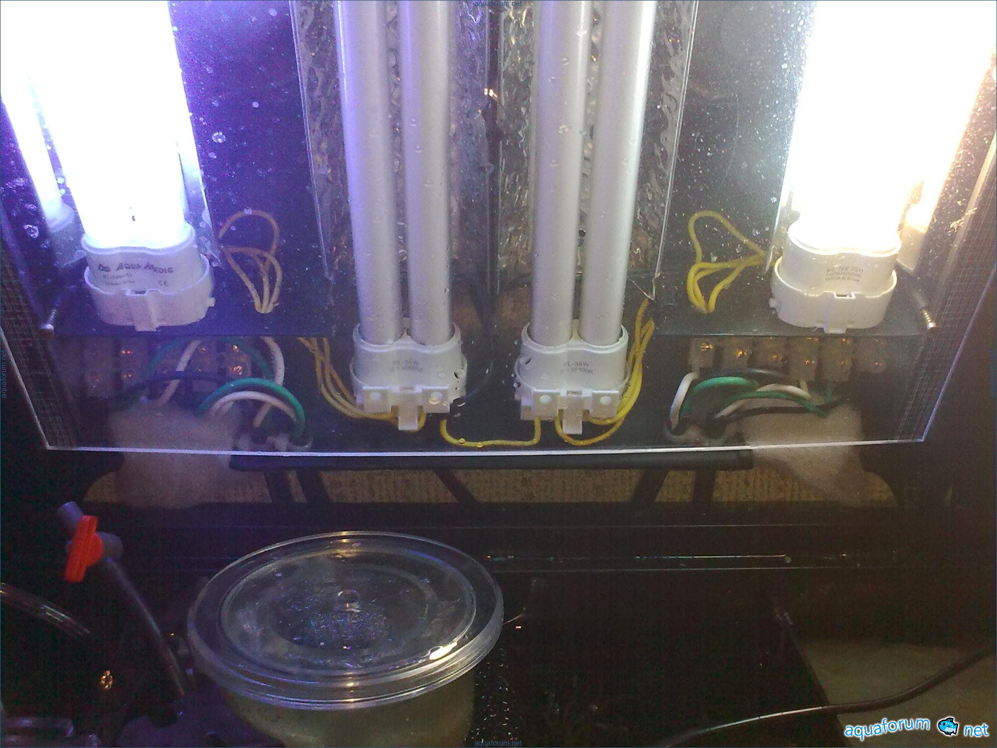 Мочалку (очень большая) со сливного отсека вырезал изнутри, сделал кассету под бой Ж.К. (живые камни) иС.Р.К. (сухие рифовые камни). Сверху уголь и слой микрофильтра (промываю, меняю через 2 дня).