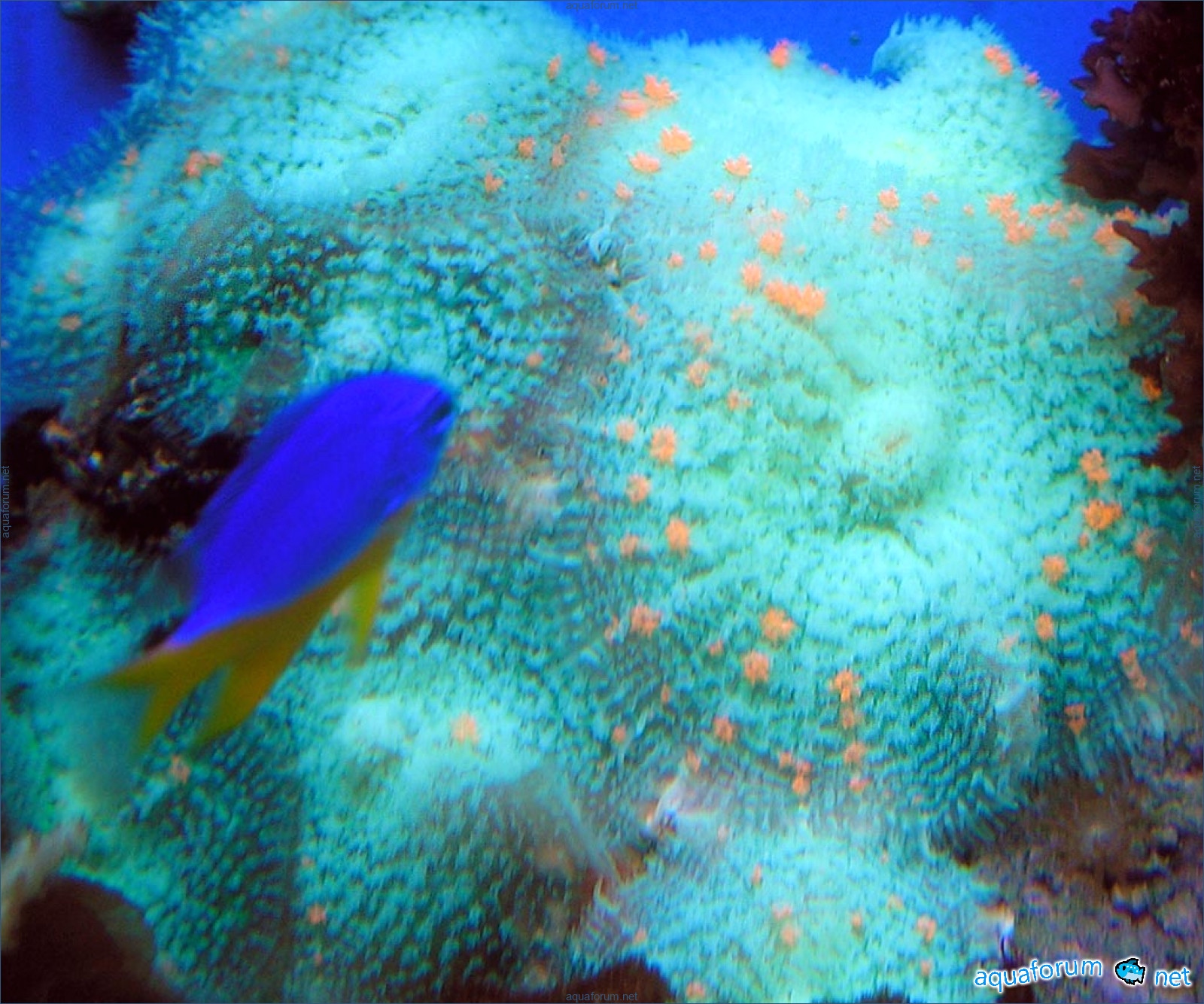 , дискосомы и есть Они не выбеленые, просто очень светлобирюзовые с оранжевым, "меховые" и флуоресцирующие. Моя старенькая мыльница на общем плане их нормально не берет. И, да, они изначально такого цвета были, потому и прельстился Теперь разрослись, но цвет тот же. Сейчас попробую отдельно сфотать.