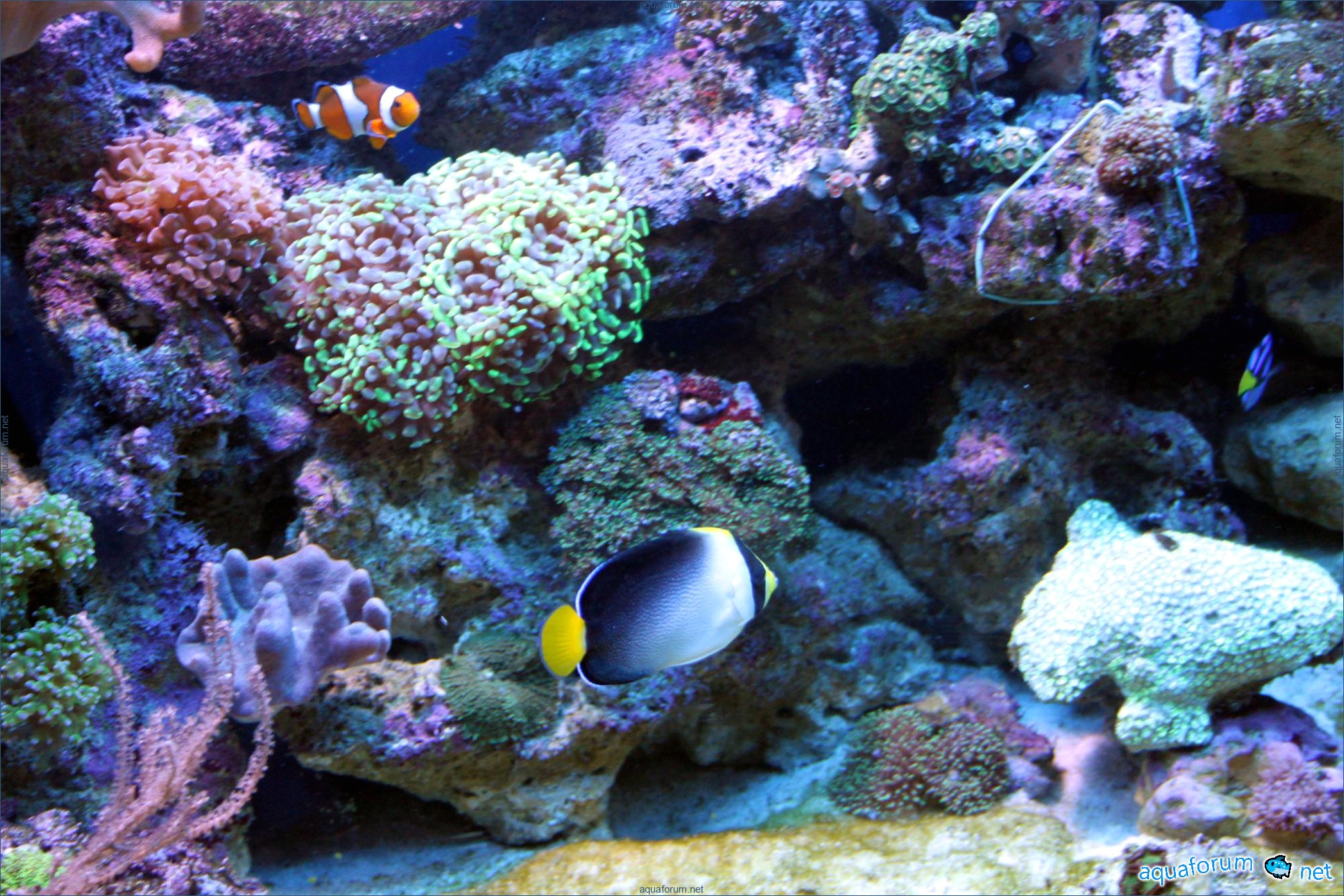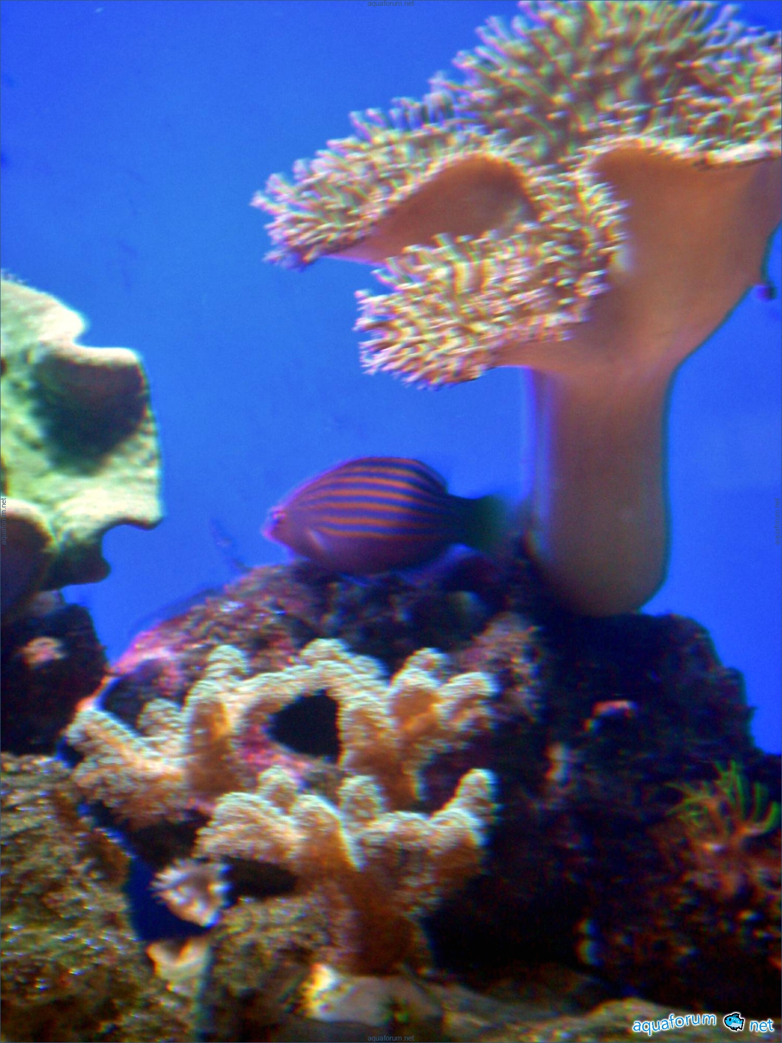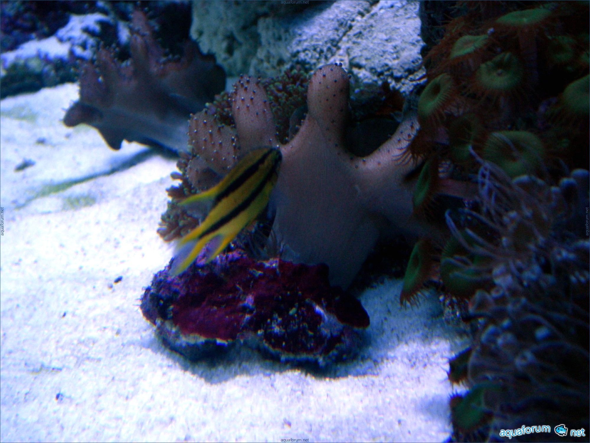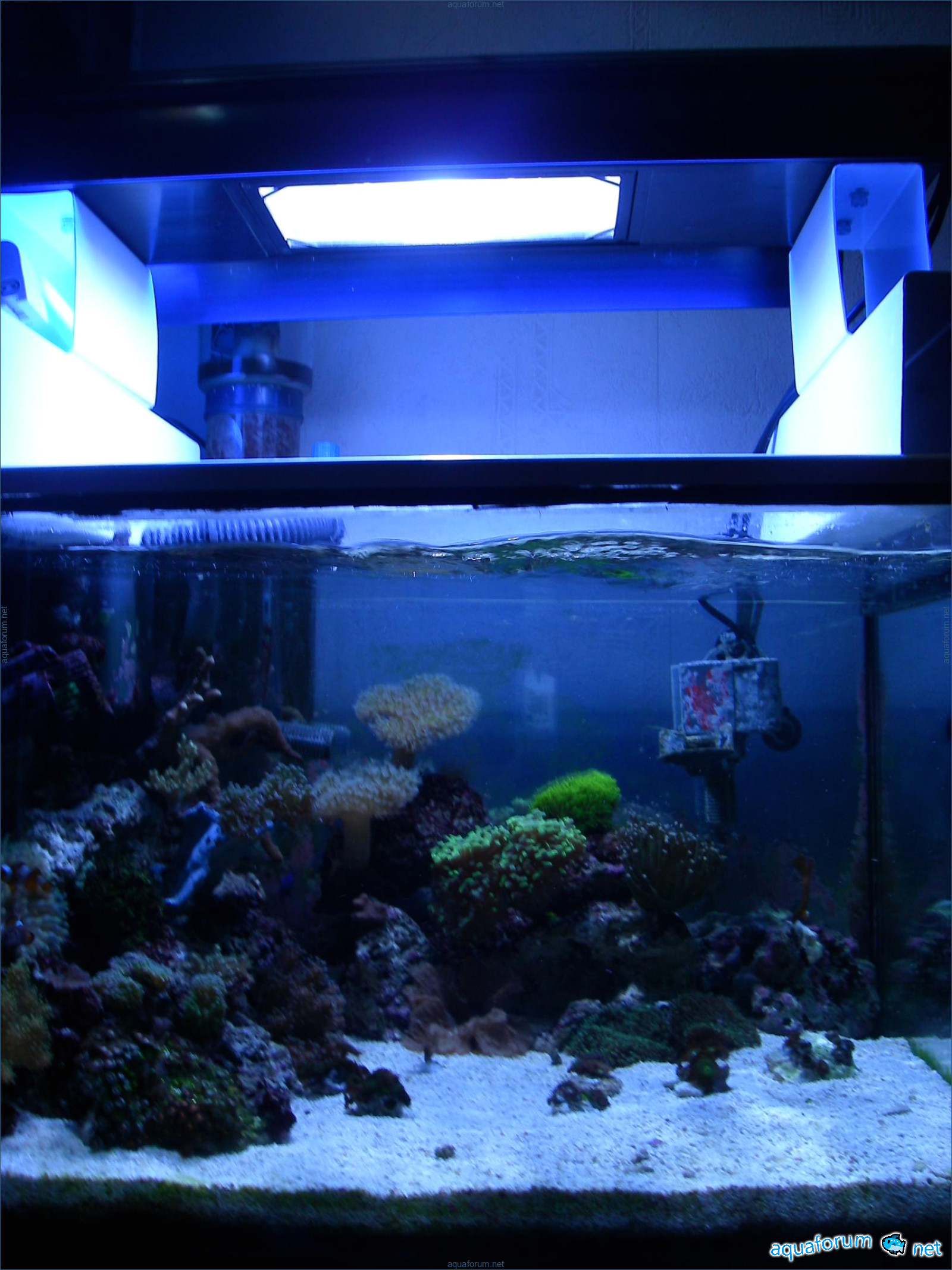 Аквариум 60*45*40 (Д*Ш*В) без сампа, скимер навесной ІО Skimm 400.. внешняя тетра 700 с биологией в виде шаров, и углем. С течением сложновато постоянно экспериментирую, сейчас небольшая турбиночка от AS. Свет 3 балки с Т5 лампами, лампы AM по 2 лампы 10К, 15К и актиники, ночью 8w синяя. Ж.К. (живые камни)около 12 кг...