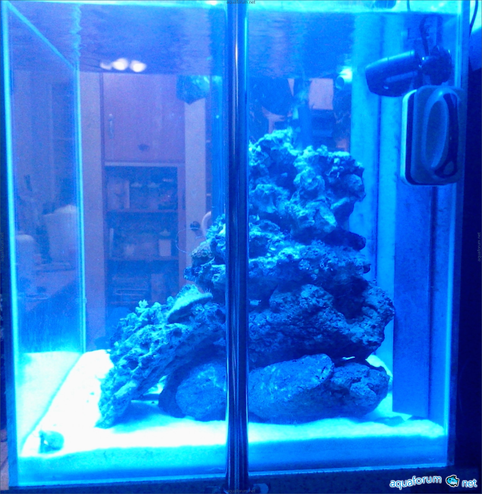 В октябре-ноябре поставлены по заказу аквариум и тумба. В декабре закончены обдумывания сампа и на китайской помпе отработан перелив. В феврале закончено самодельничание со светильником. В марте-апреле собрано оборудование, электрика и автоматика. 23 апреля, на пасху, засолена вода. 29 апреля собран риф. Это и есть фактическая дата воплощения моих фантазий и желаний.