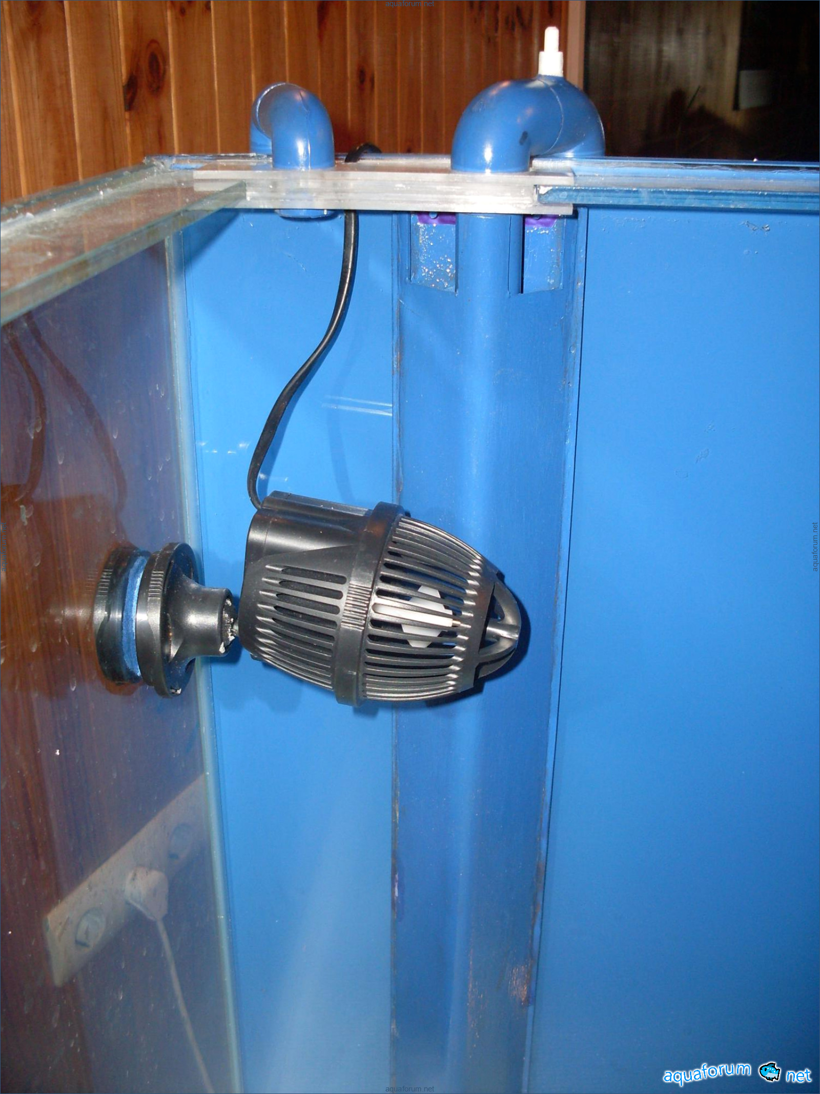Самп: длина 48 см, ширина 28 см, высота 38 см. (уровень воды в основной части 30 см, в отсеке возвратной помпы 12 см) стекло 6 мм