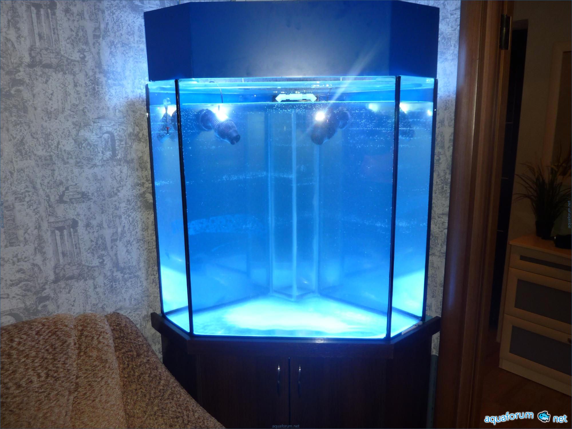 Аквариум угловая панорамная. Высота 80см. Обьем по моим подсчетам 230л. Мое творение: