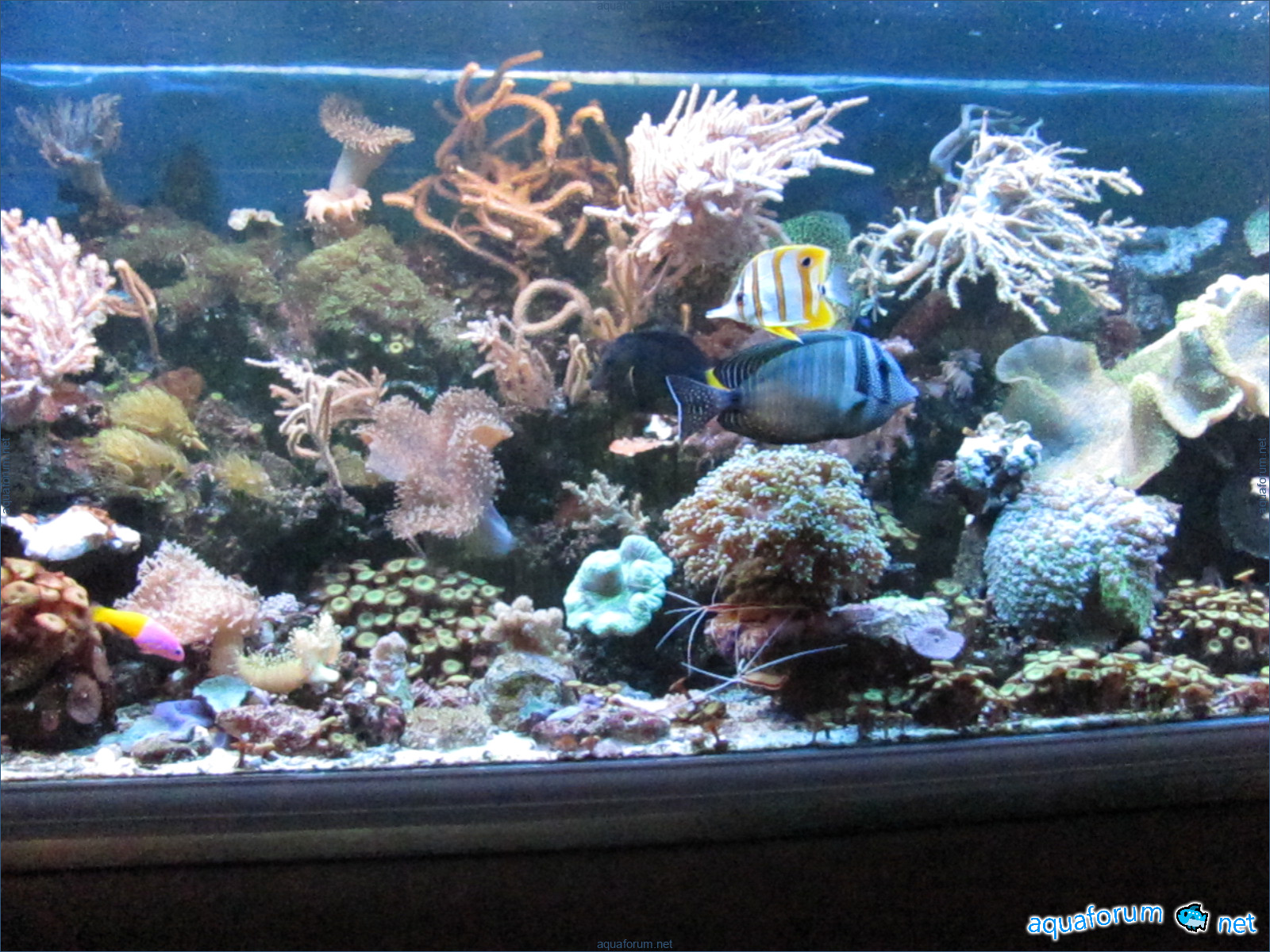 В аквариуме живут как мягкие так и твердые кораллы,из них 2 вида СПС.
