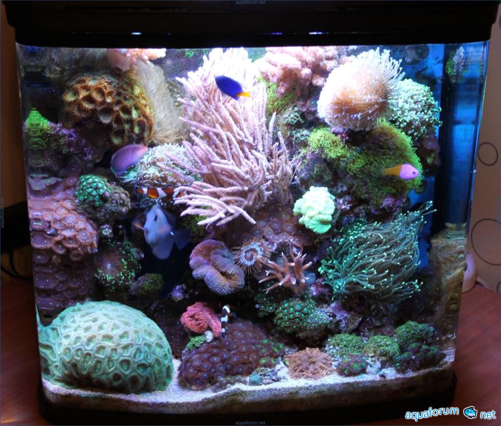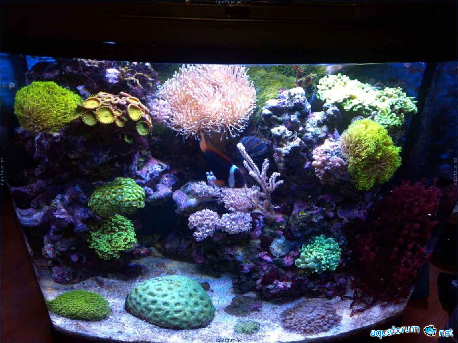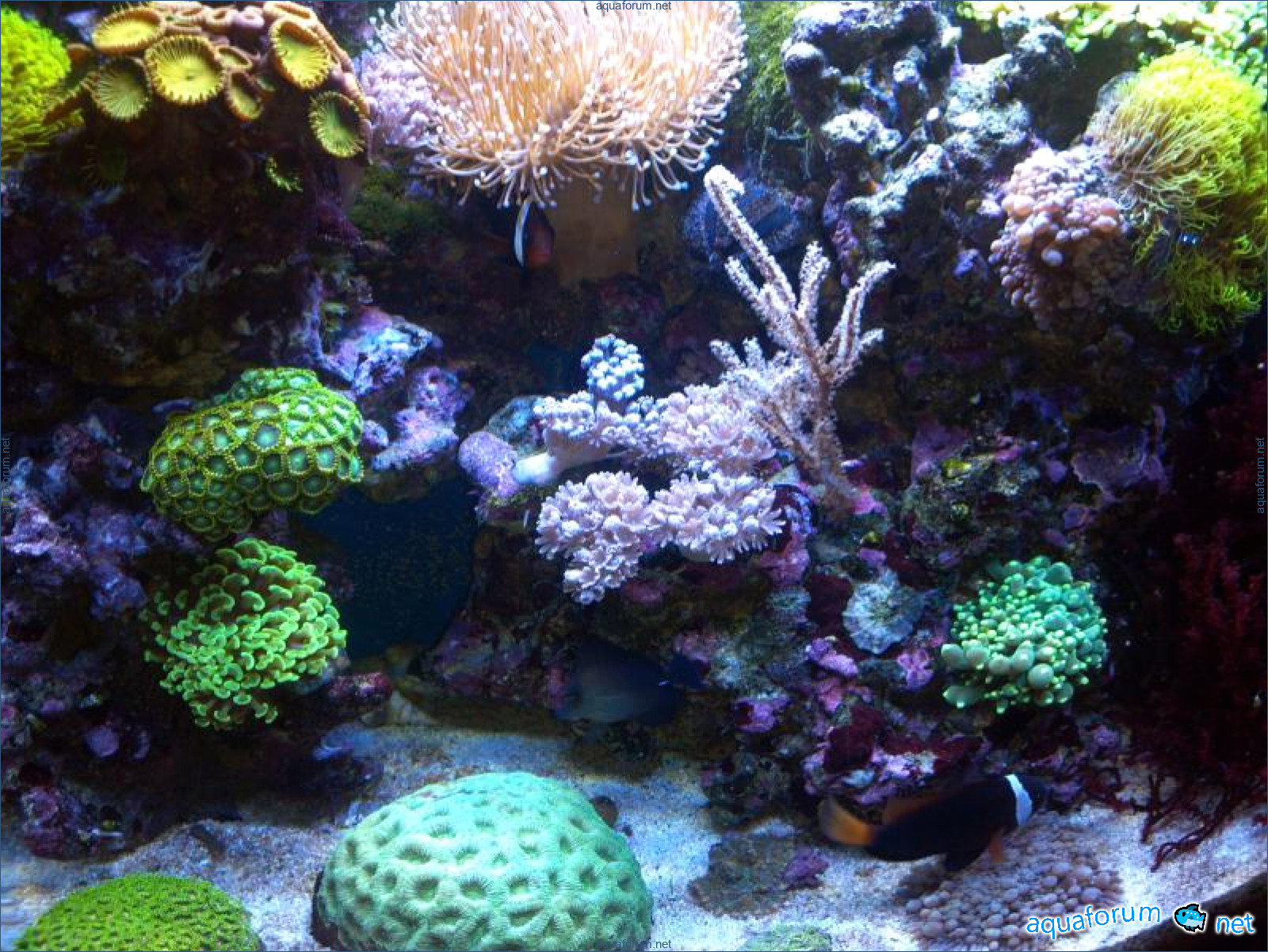 В аквариуме проживают: два клоуна,зебрасома,губан,хризептера и ложнохромис роял