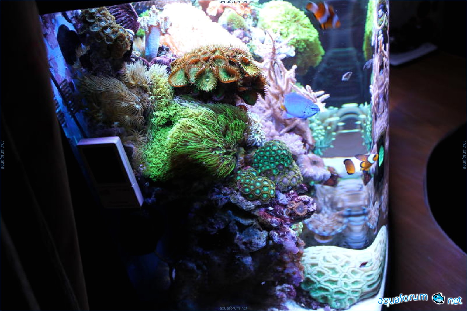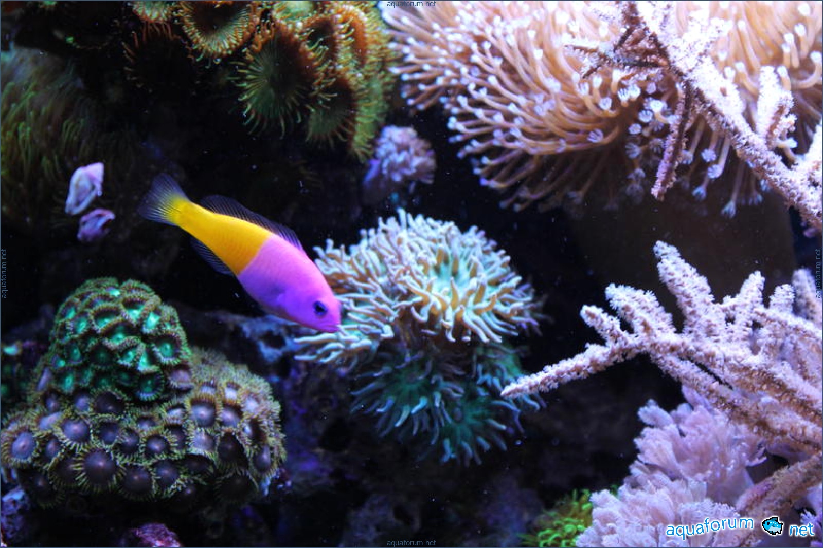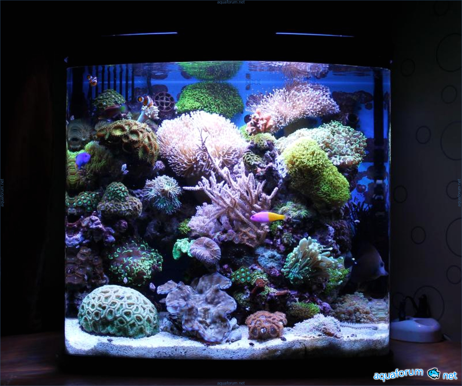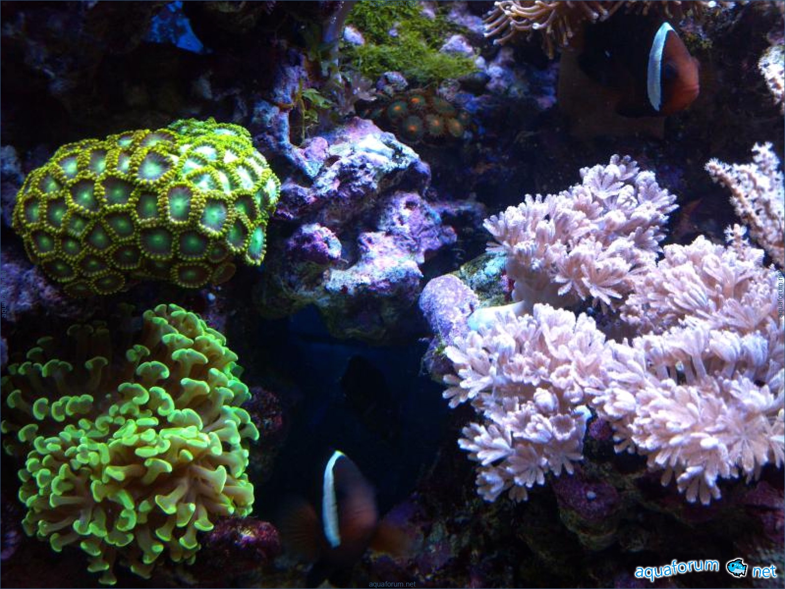 В аквариуме проживают: два клоуна,зебрасома,губан,хризептера и ложнохромис роял