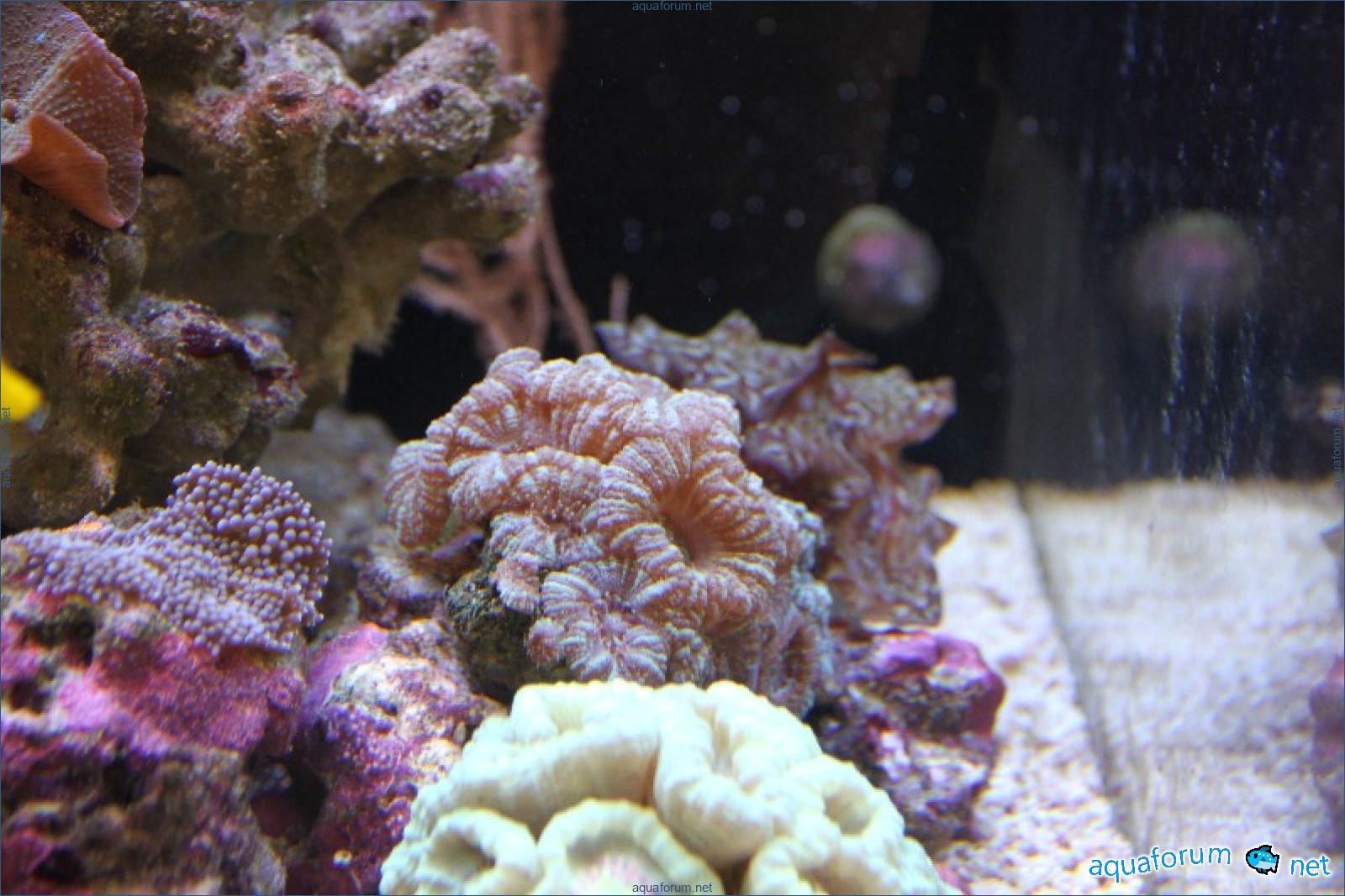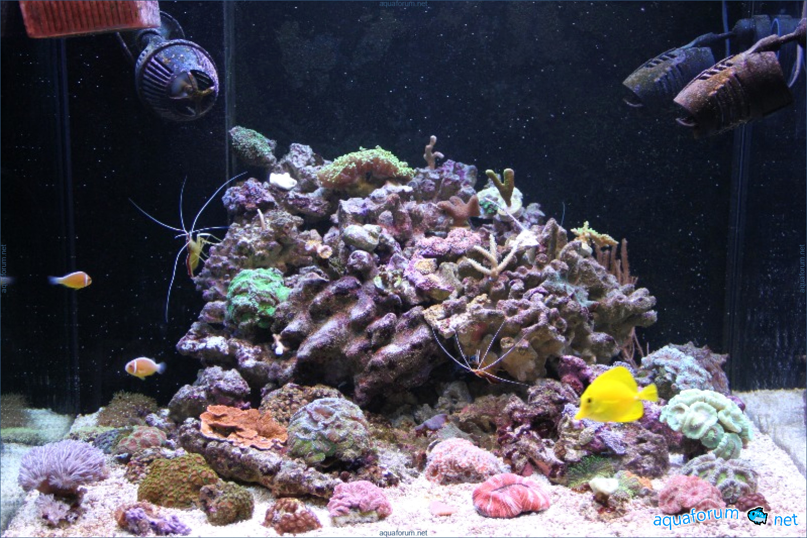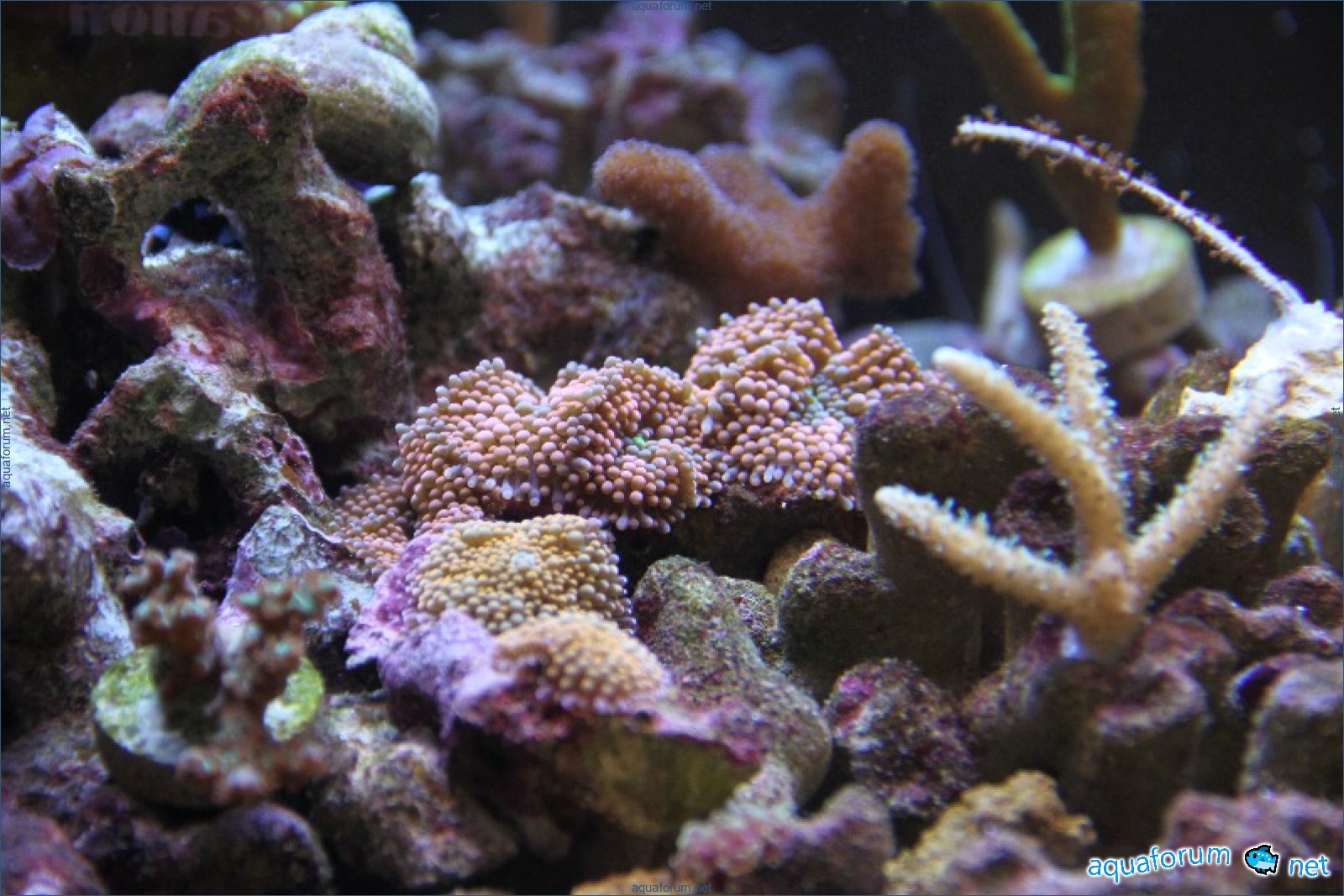 Аквариум 70х55х55. Свет 8 х 24 т5 производства Саши а на сегодняшний момент устраивает полностью. Пенник Авамедика Блу 1000 (с родной помпой фуфло полное,но если поставить РН 2500 пашет очень не плохо ).Подающая помпа Эхейм 1250,стримы один Сан-Сан на 3000 литров и две Aquael Reef Circulator 2600. Автодолив от Аквамедики. Холодильник Бою . Вот такое оборудование.