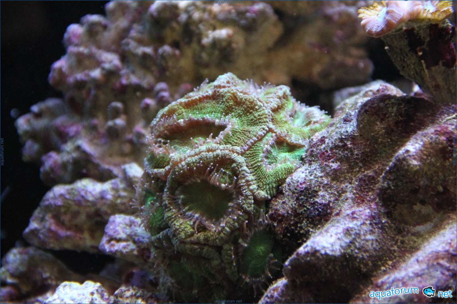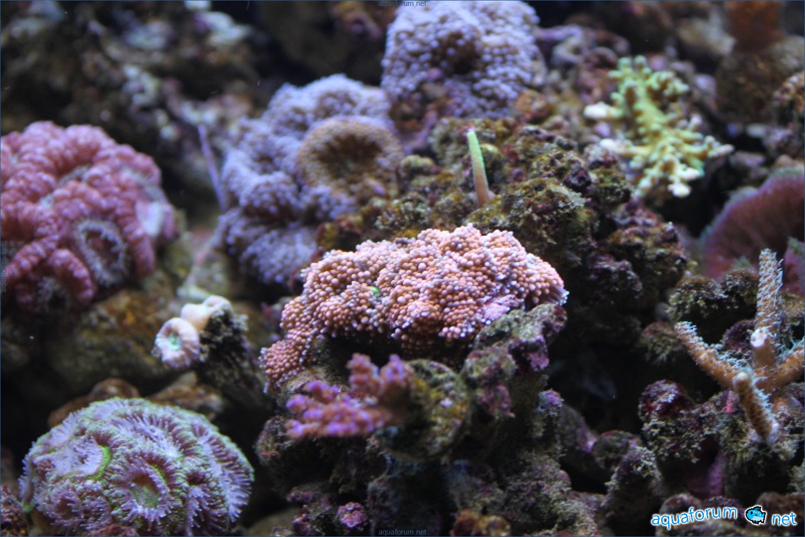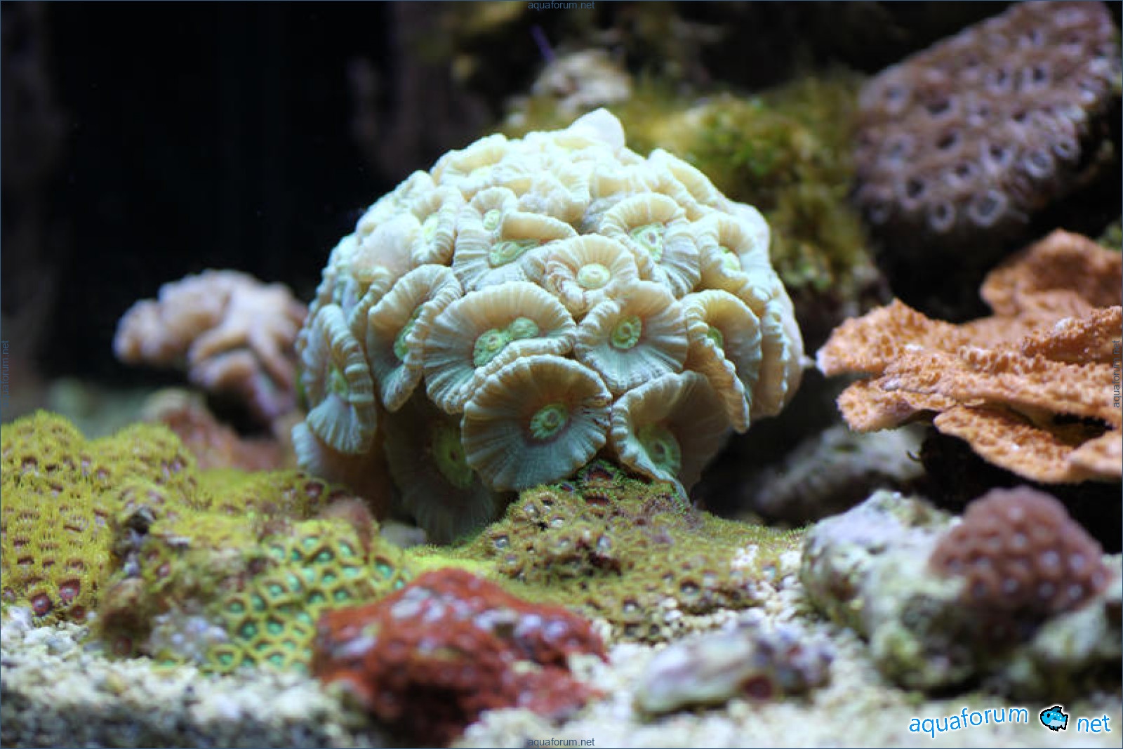 Аквариум 70х55х55. Свет 8 х 24 т5 производства Саши а на сегодняшний момент устраивает полностью. Пенник Авамедика Блу 1000 (с родной помпой фуфло полное,но если поставить РН 2500 пашет очень не плохо ).Подающая помпа Эхейм 1250,стримы один Сан-Сан на 3000 литров и две Aquael Reef Circulator 2600. Автодолив от Аквамедики. Холодильник Бою . Вот такое оборудование.