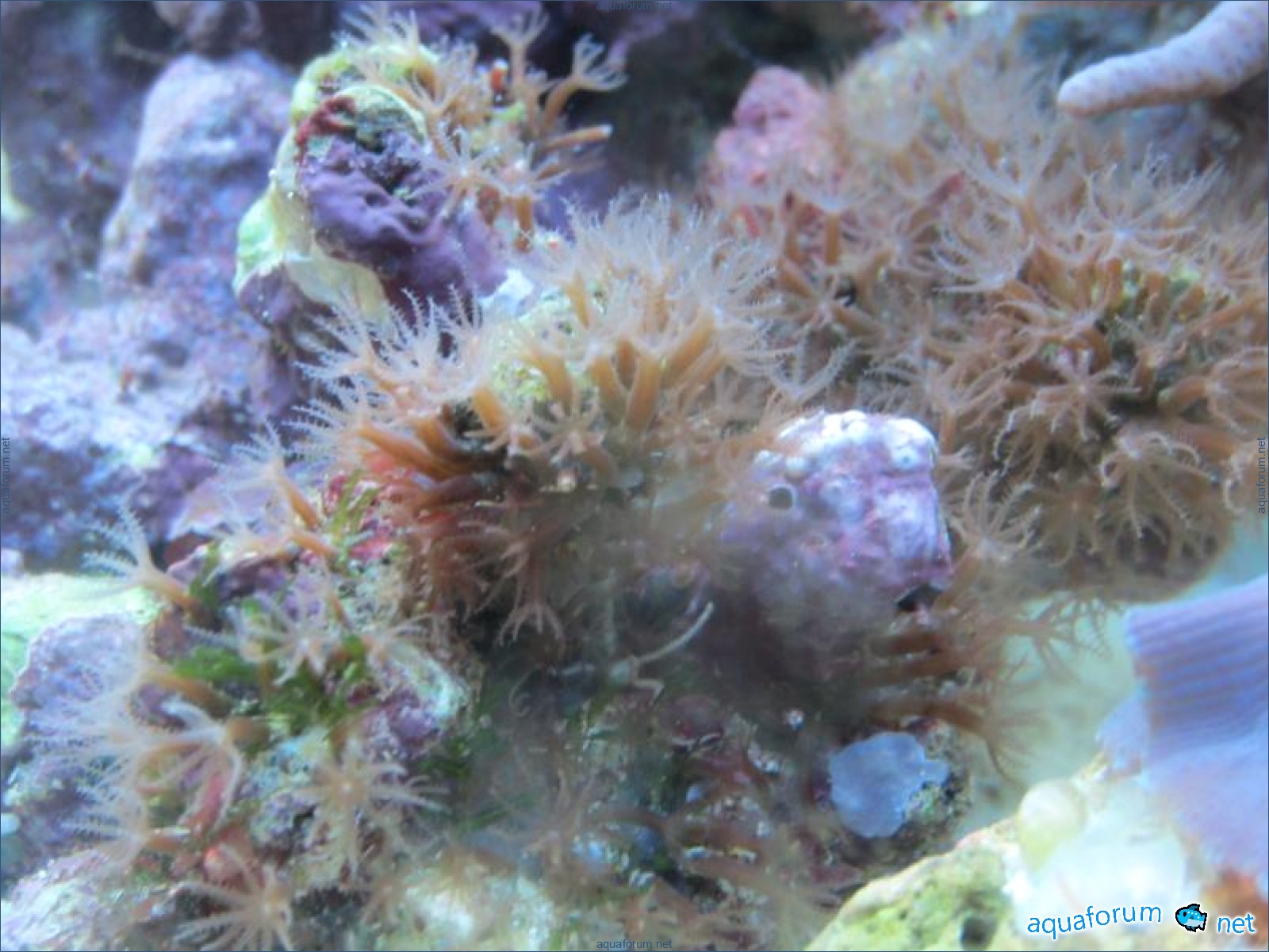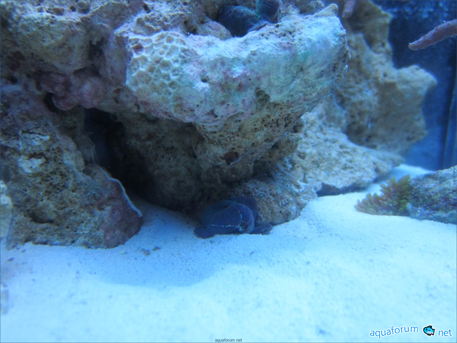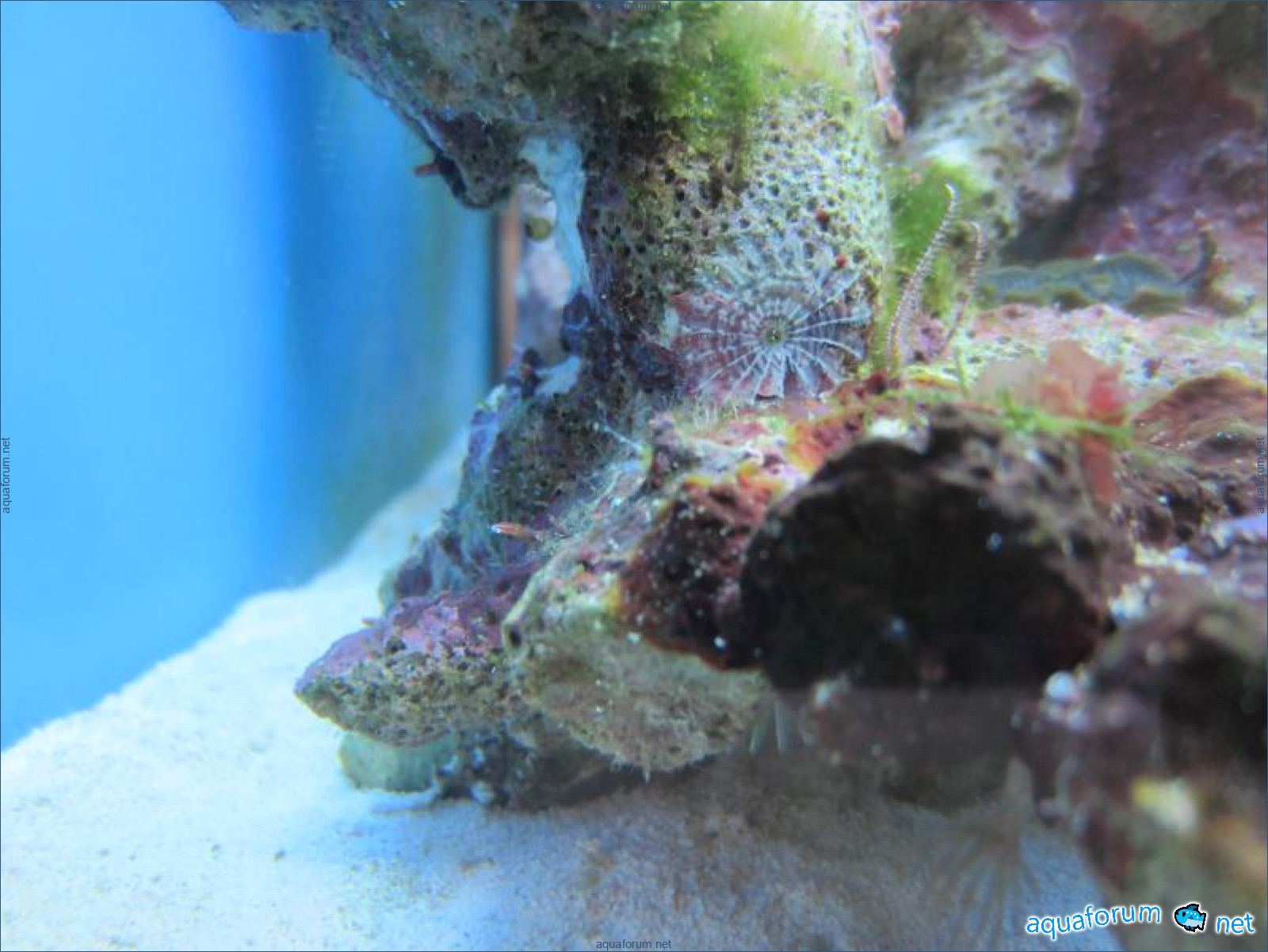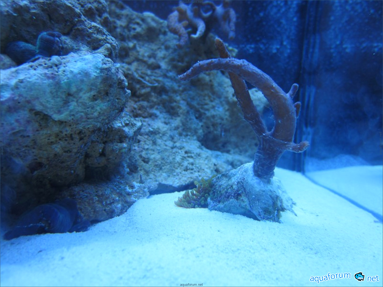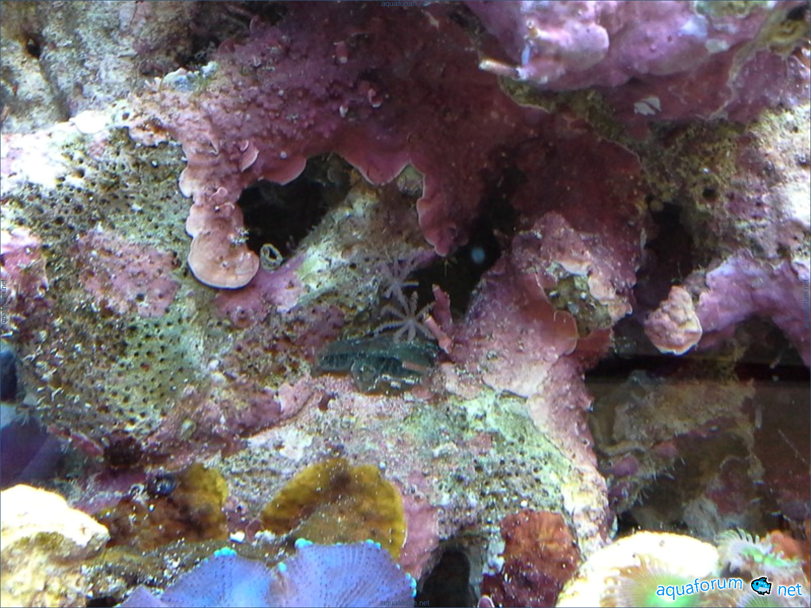 Привез передержаные Ж.К. (живые камни)из сампа одной из банок г. Ровно(огромное спасибо ее хозяину), и загрузил их в аквариум . Из живности обнаружил несколько маленьких офеурок (до 3 см), несколько веерных червячков и две айптазии (очень фиолетовых и красивых ) ребенок и жена расматривали всё это с большим удовольствием.