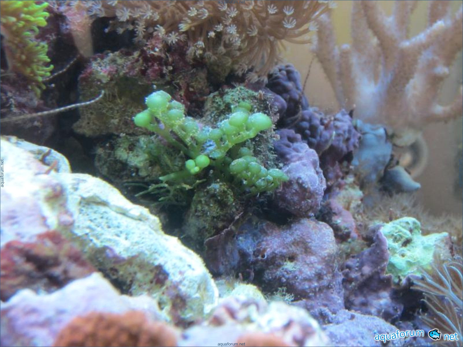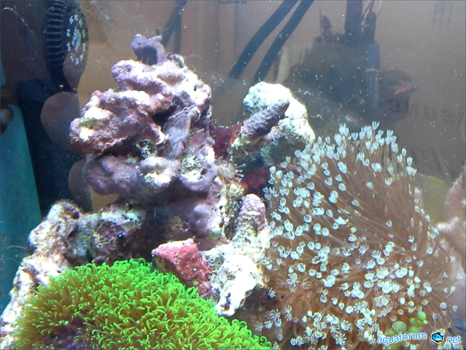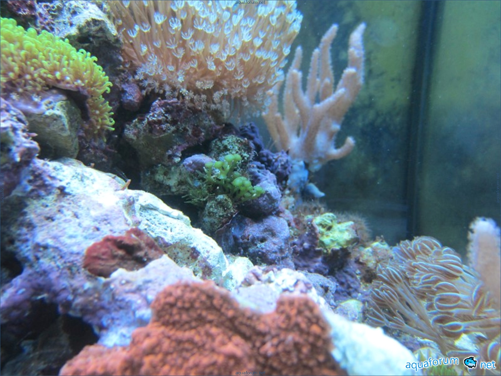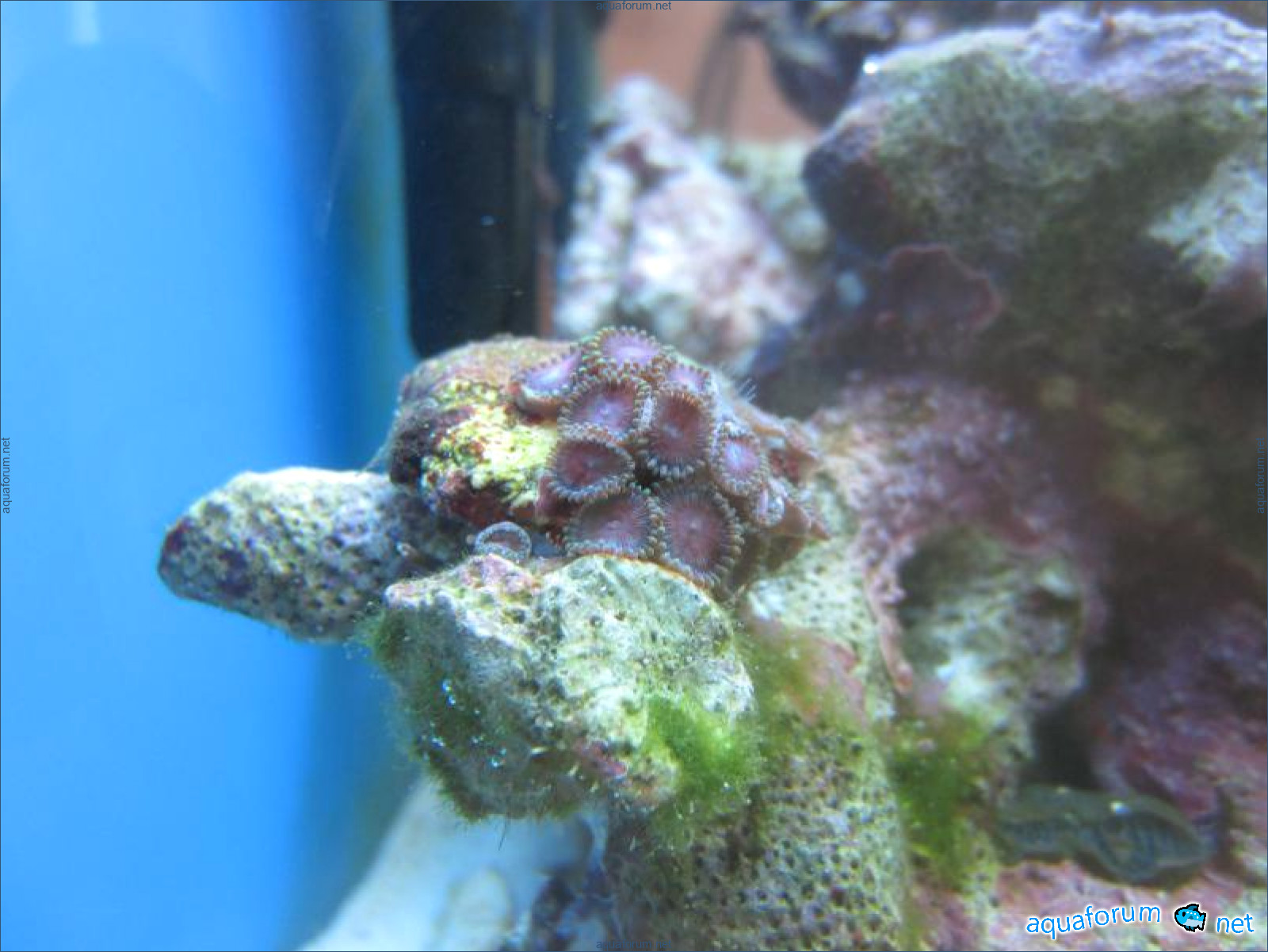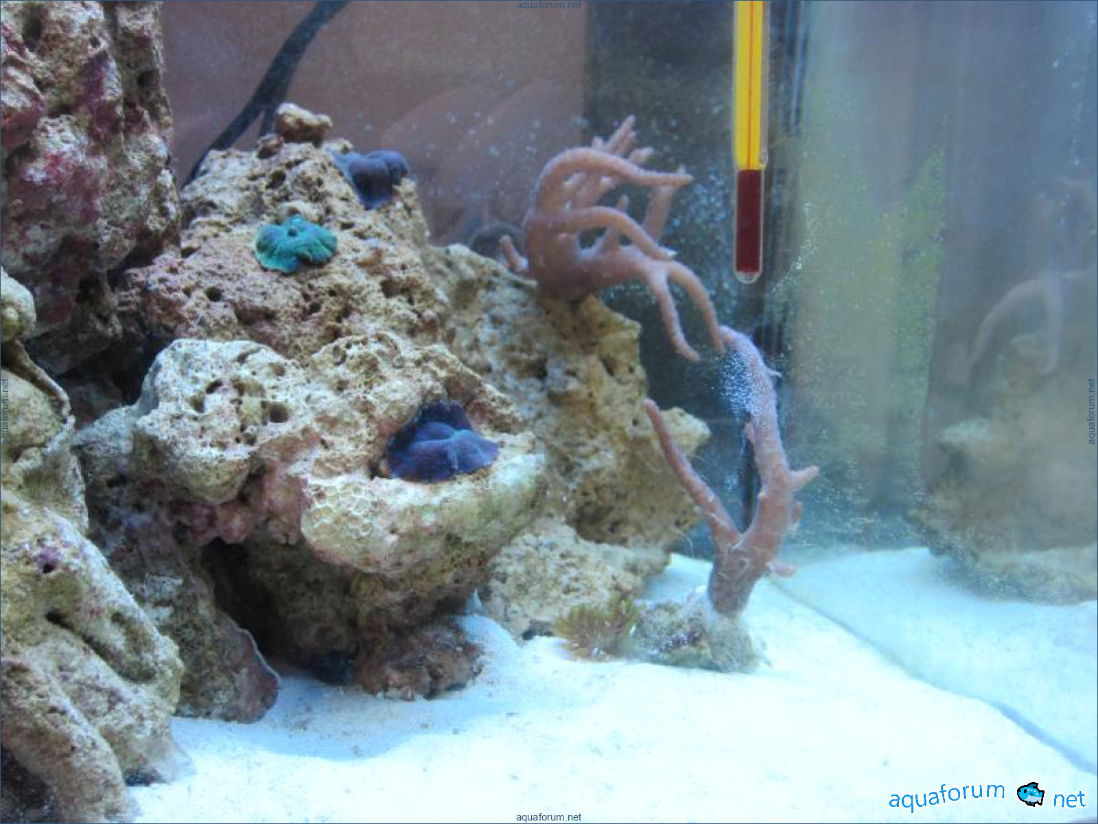 Привез передержаные Ж.К. (живые камни)из сампа одной из банок г. Ровно(огромное спасибо ее хозяину), и загрузил их в аквариум . Из живности обнаружил несколько маленьких офеурок (до 3 см), несколько веерных червячков и две айптазии (очень фиолетовых и красивых ) ребенок и жена расматривали всё это с большим удовольствием.