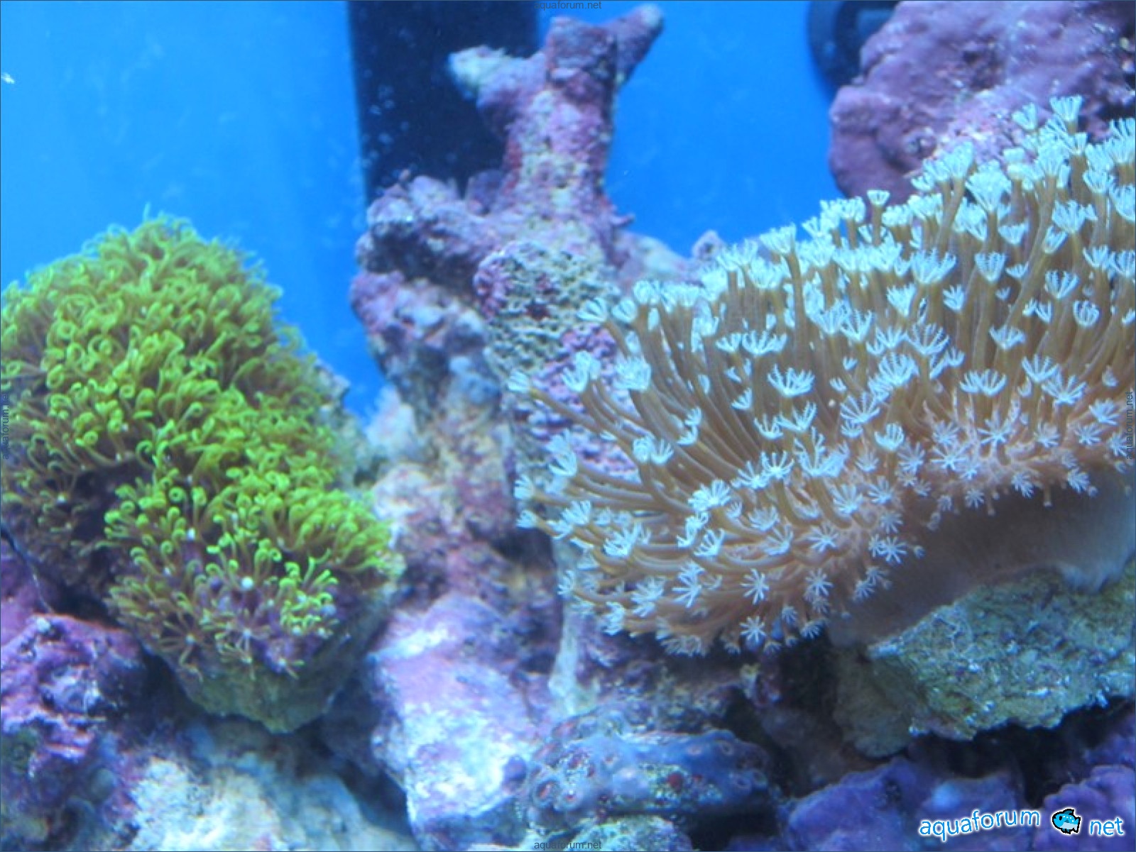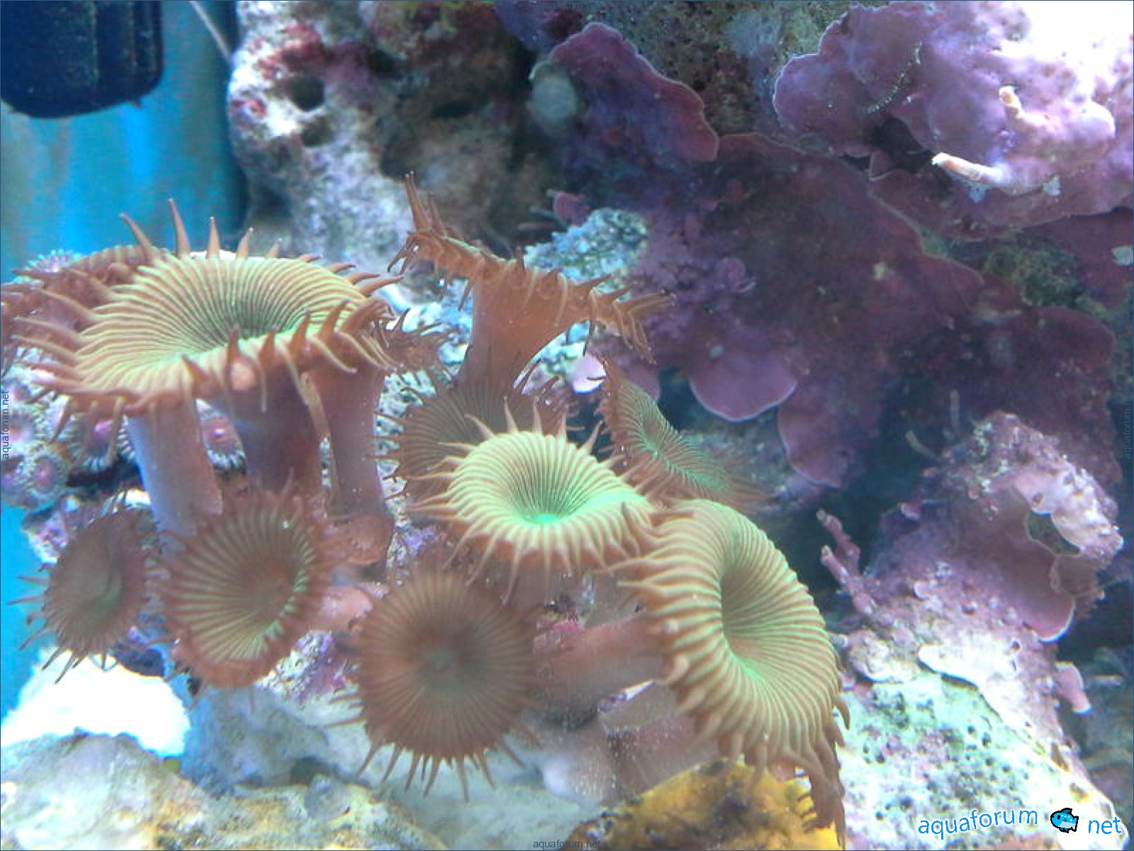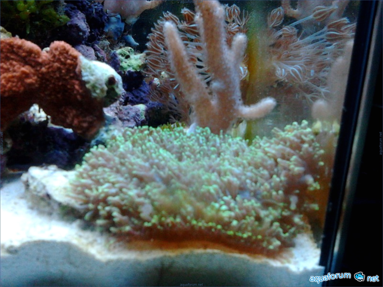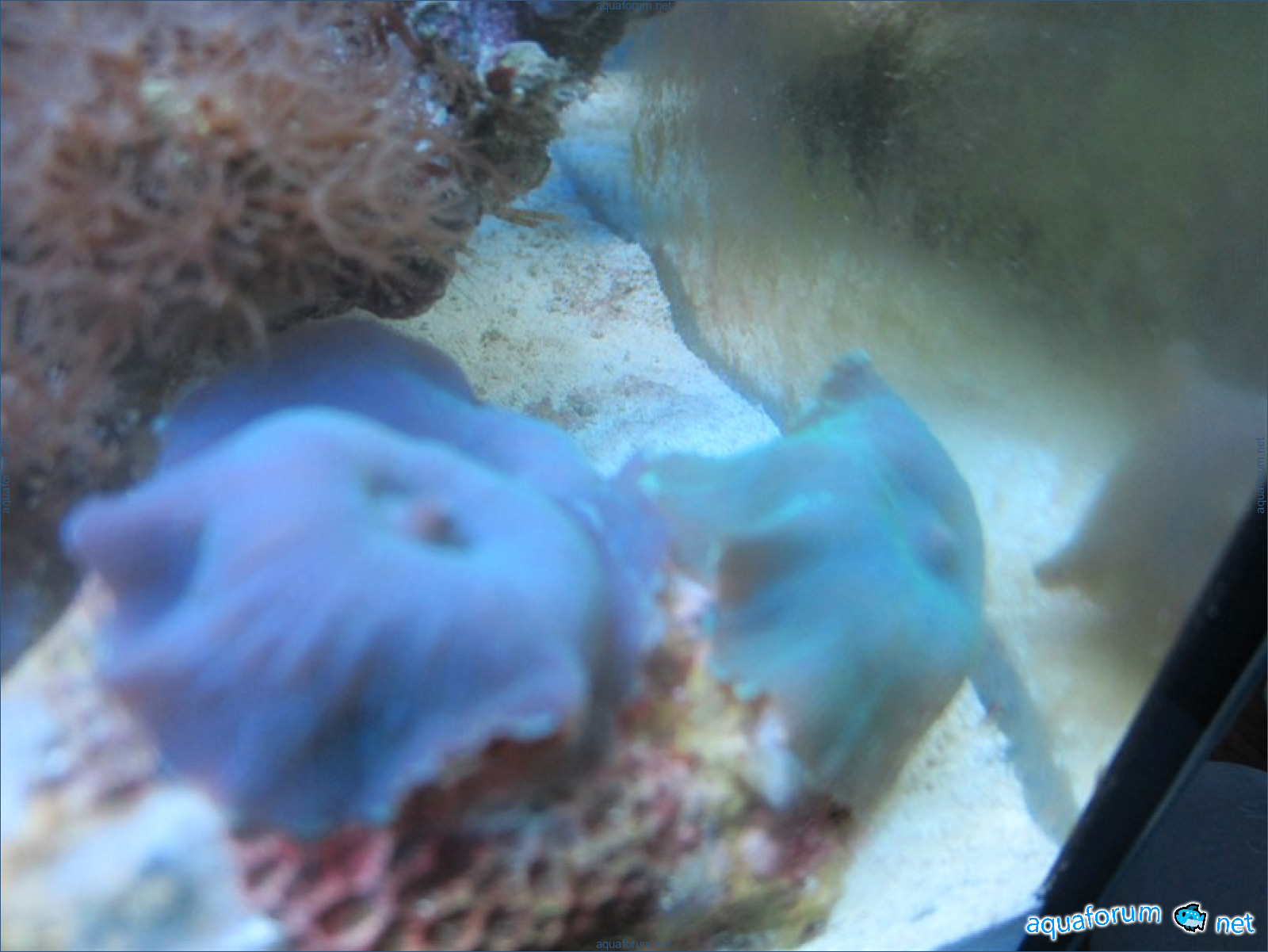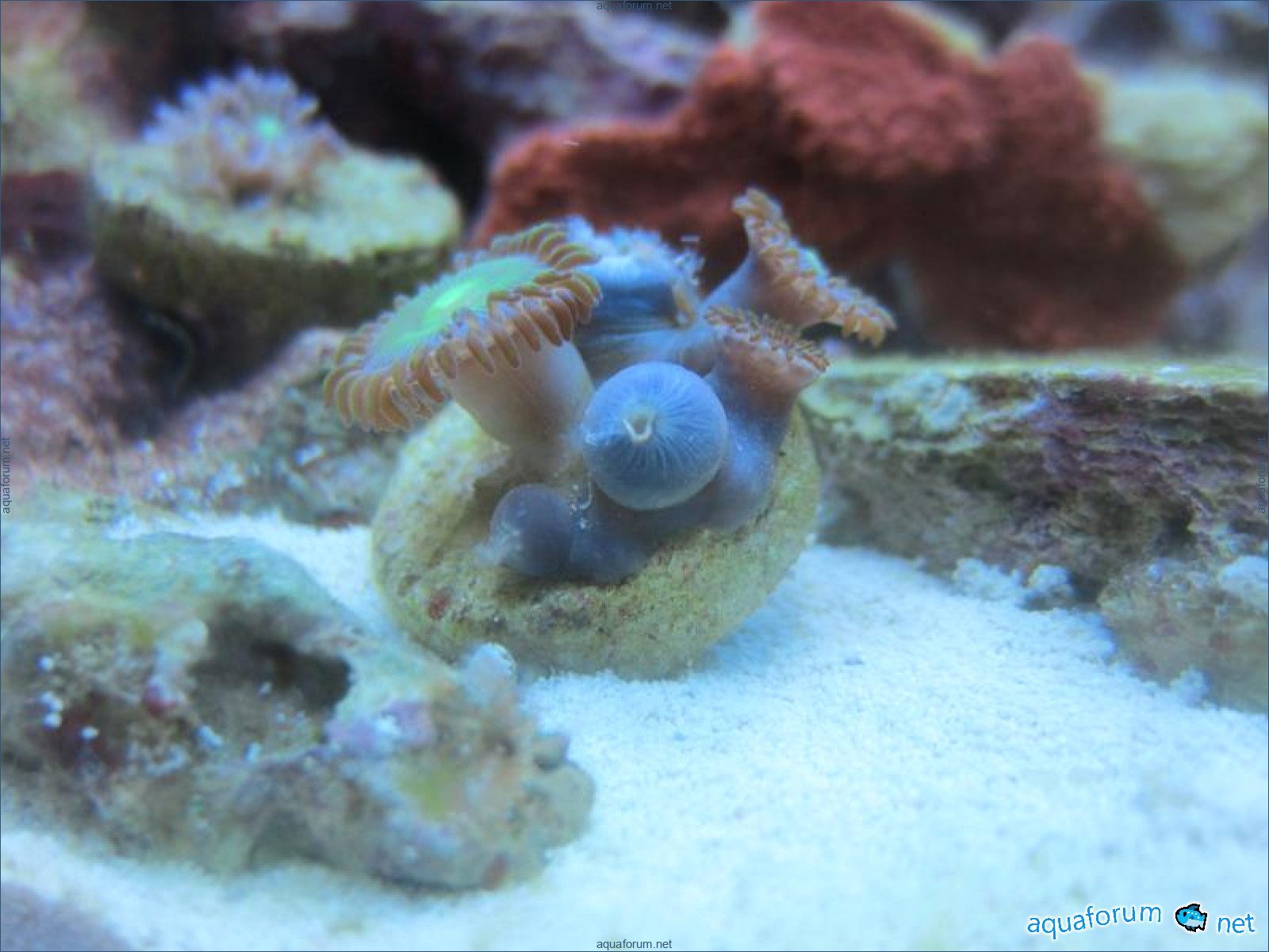 Привез передержаные Ж.К. (живые камни)из сампа одной из банок г. Ровно(огромное спасибо ее хозяину), и загрузил их в аквариум . Из живности обнаружил несколько маленьких офеурок (до 3 см), несколько веерных червячков и две айптазии (очень фиолетовых и красивых ) ребенок и жена расматривали всё это с большим удовольствием.