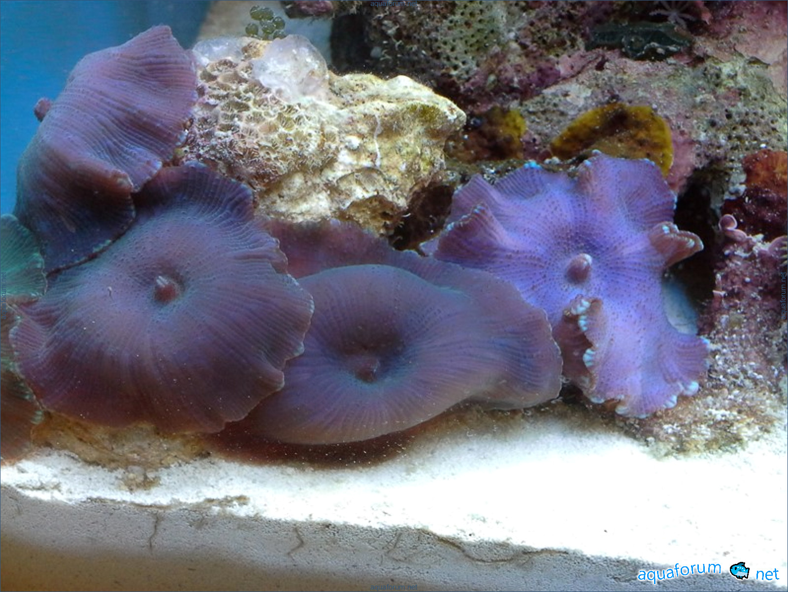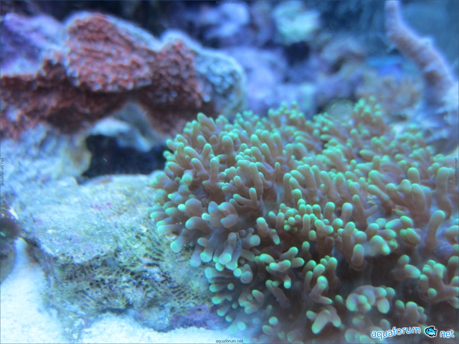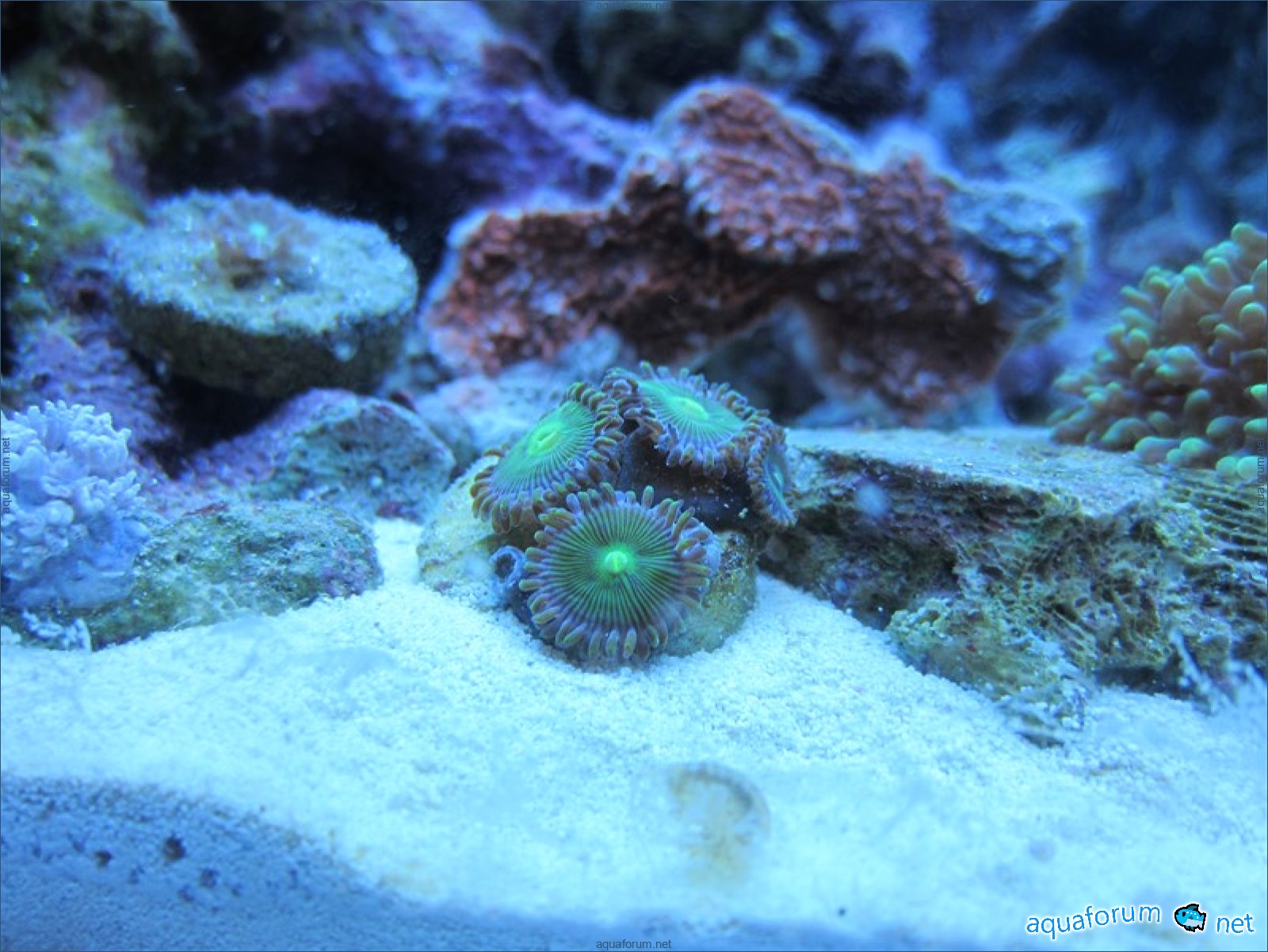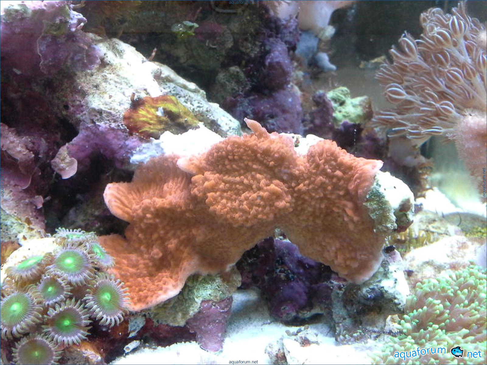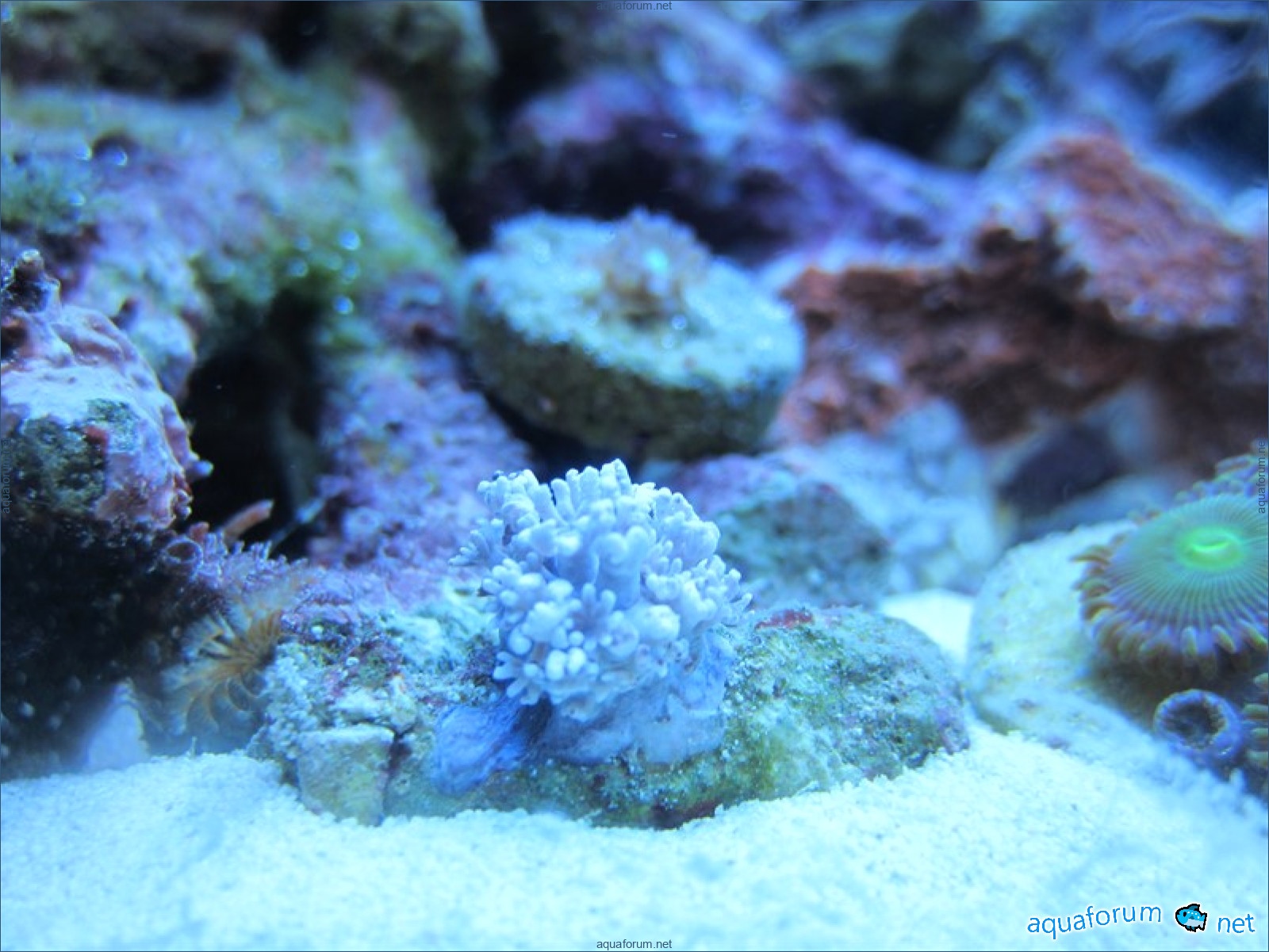 Привез передержаные Ж.К. (живые камни)из сампа одной из банок г. Ровно(огромное спасибо ее хозяину), и загрузил их в аквариум . Из живности обнаружил несколько маленьких офеурок (до 3 см), несколько веерных червячков и две айптазии (очень фиолетовых и красивых ) ребенок и жена расматривали всё это с большим удовольствием.