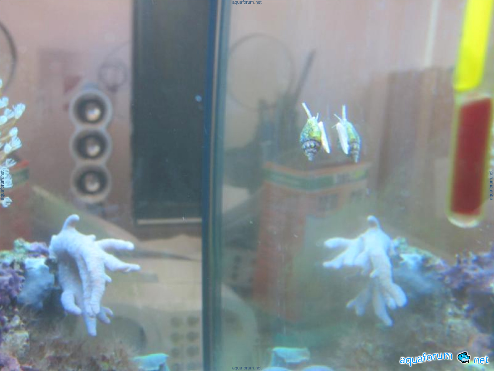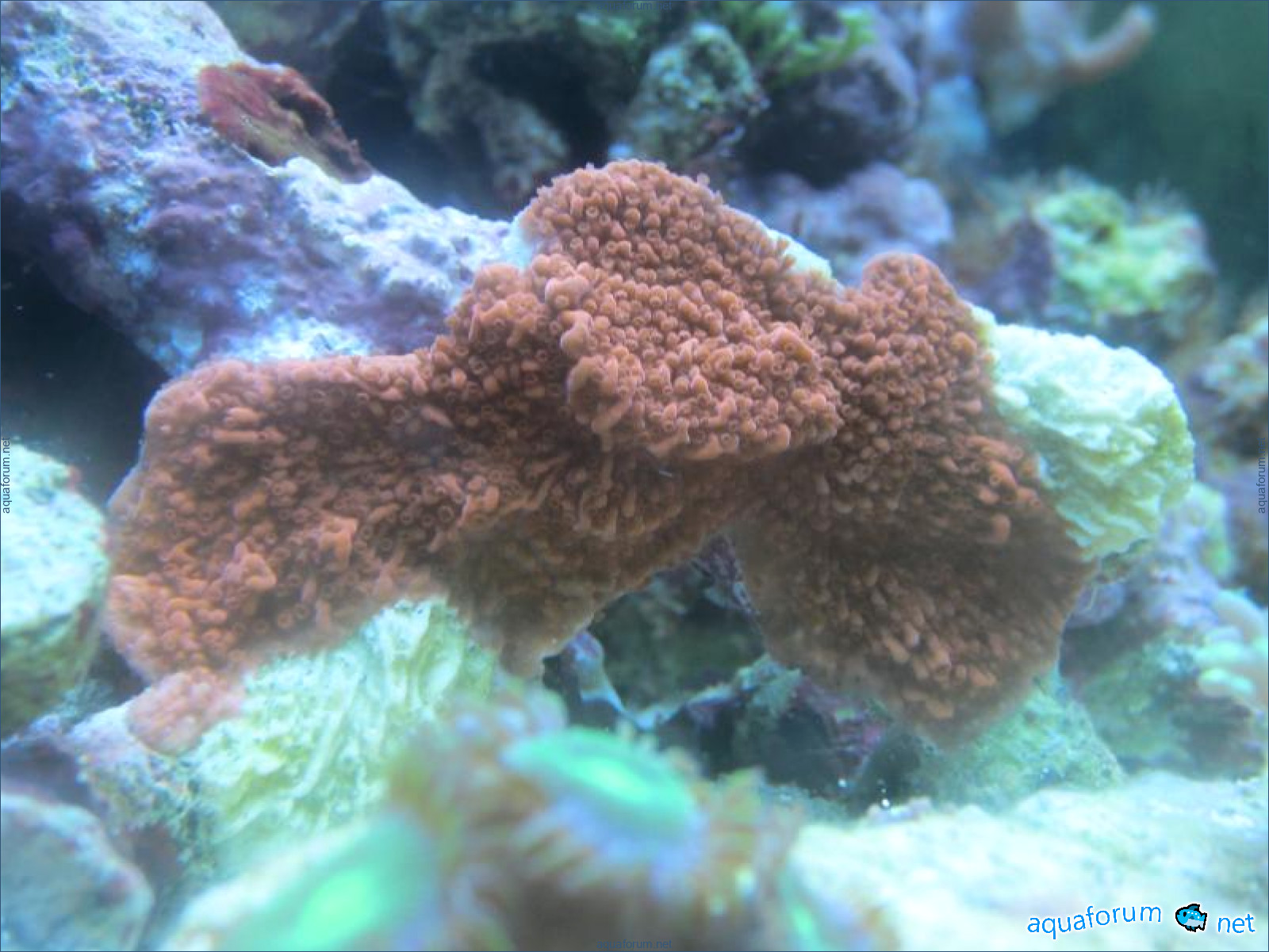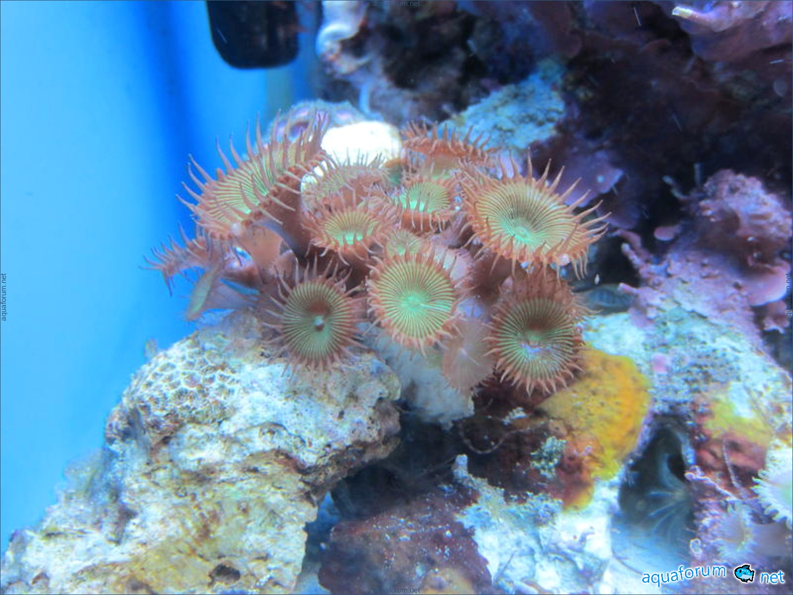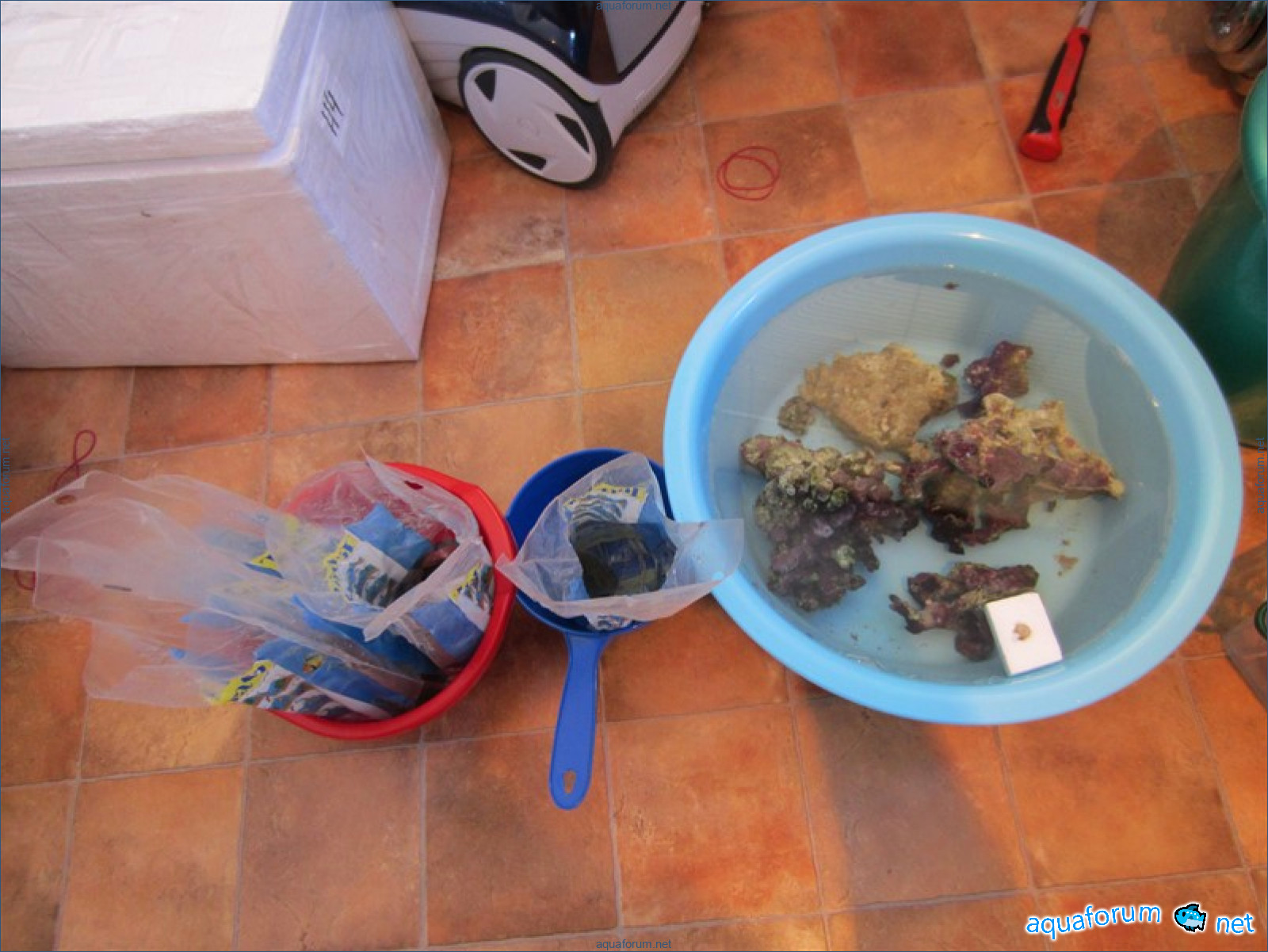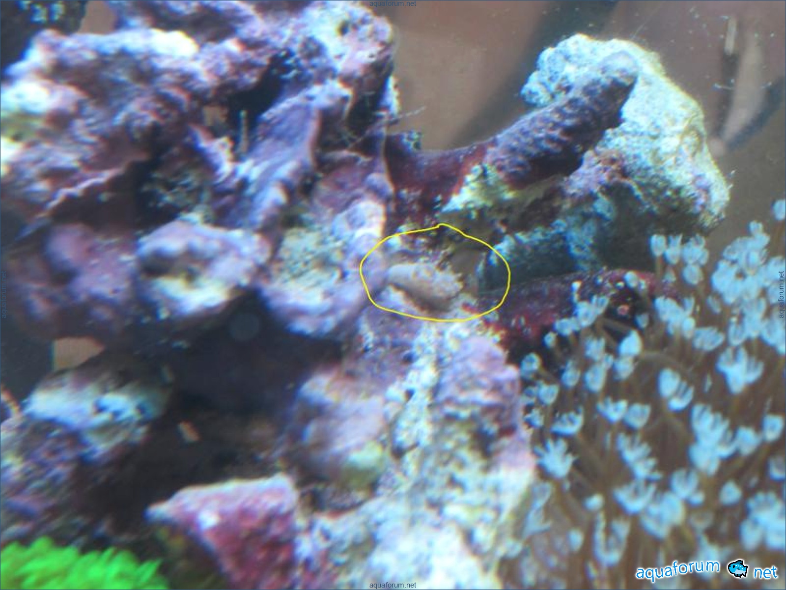 Привез передержаные Ж.К. (живые камни)из сампа одной из банок г. Ровно(огромное спасибо ее хозяину), и загрузил их в аквариум . Из живности обнаружил несколько маленьких офеурок (до 3 см), несколько веерных червячков и две айптазии (очень фиолетовых и красивых ) ребенок и жена расматривали всё это с большим удовольствием.