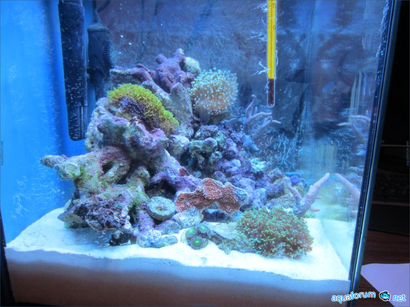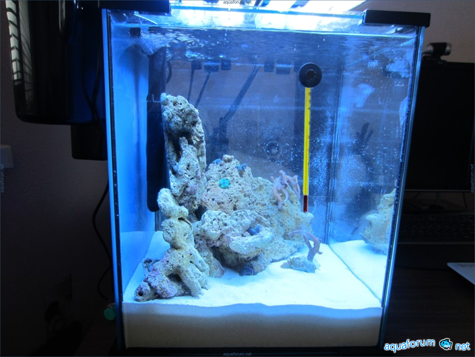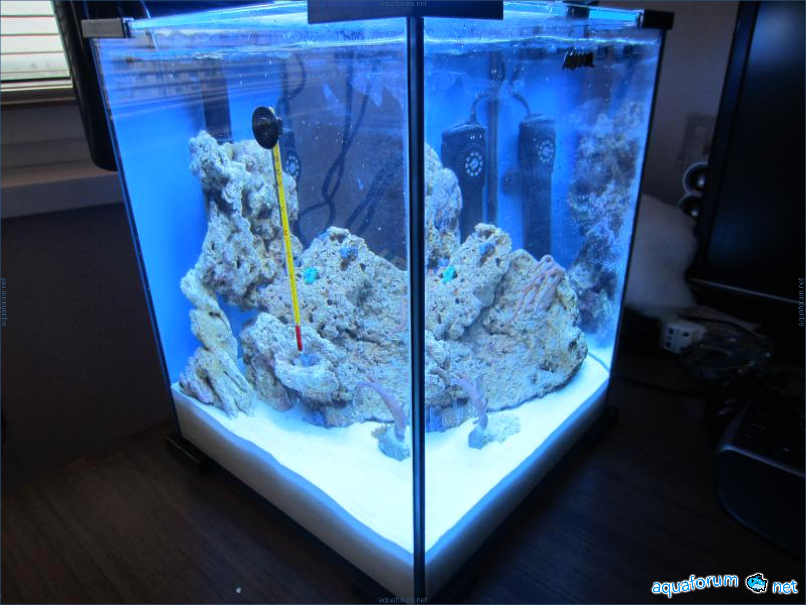 В итоге перелопатил много инфы во всемирной паутине я приобрел морской комплект aqua el 30 л., упил еще один светильник и обогреватель на 75 Вт. Соль использовал Tropick ine, вода - дистиллат, живой песк - 9 кг от Ireef, камни - живые передержаные от доброго человека.
