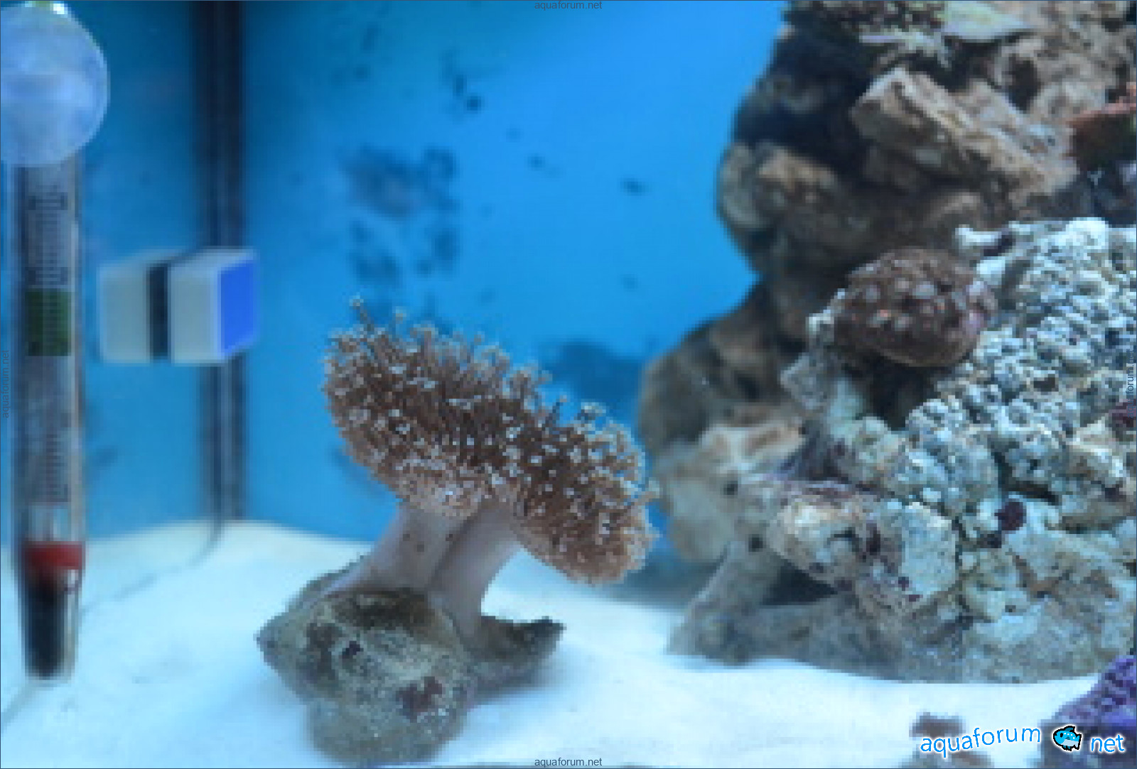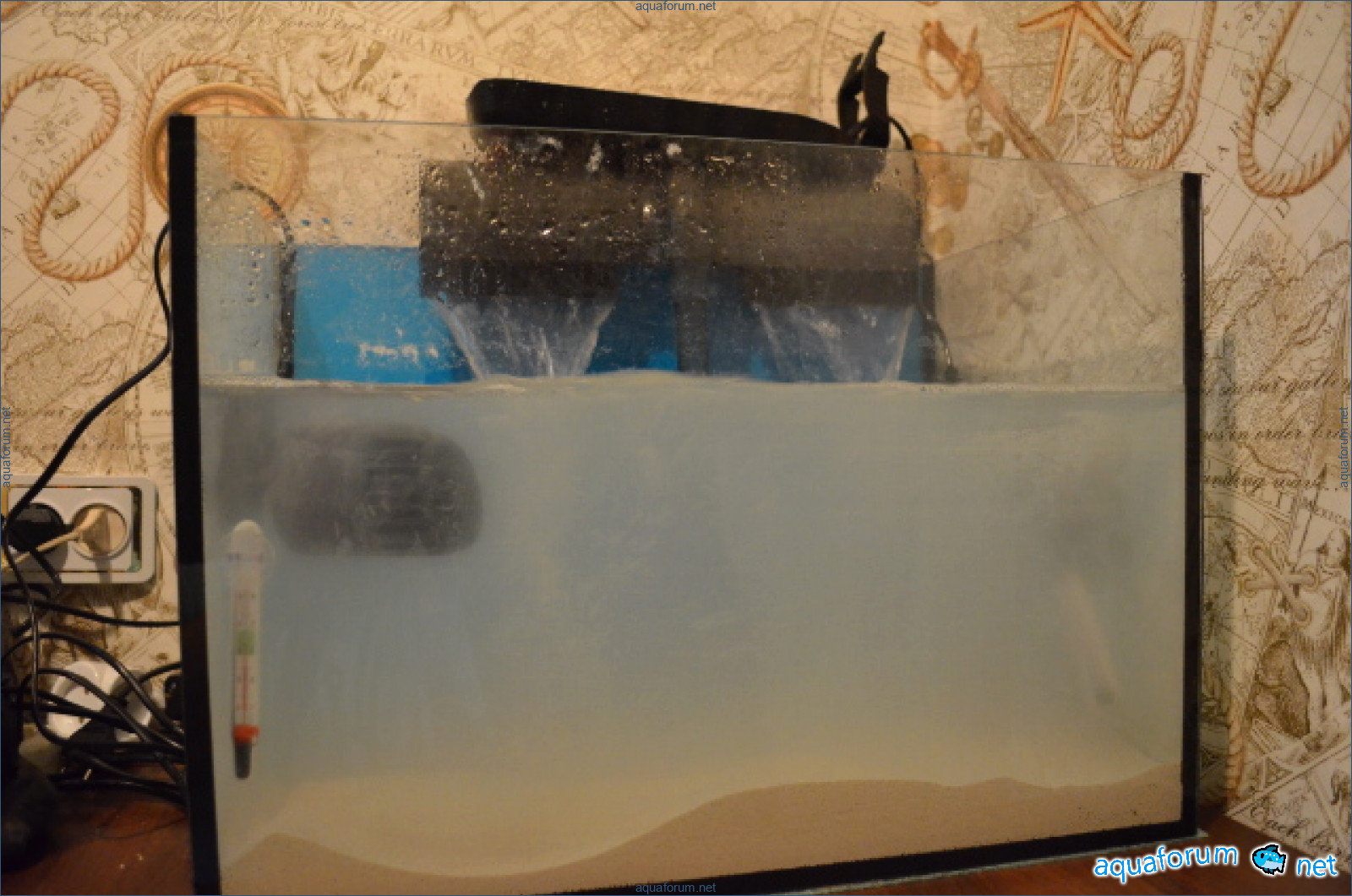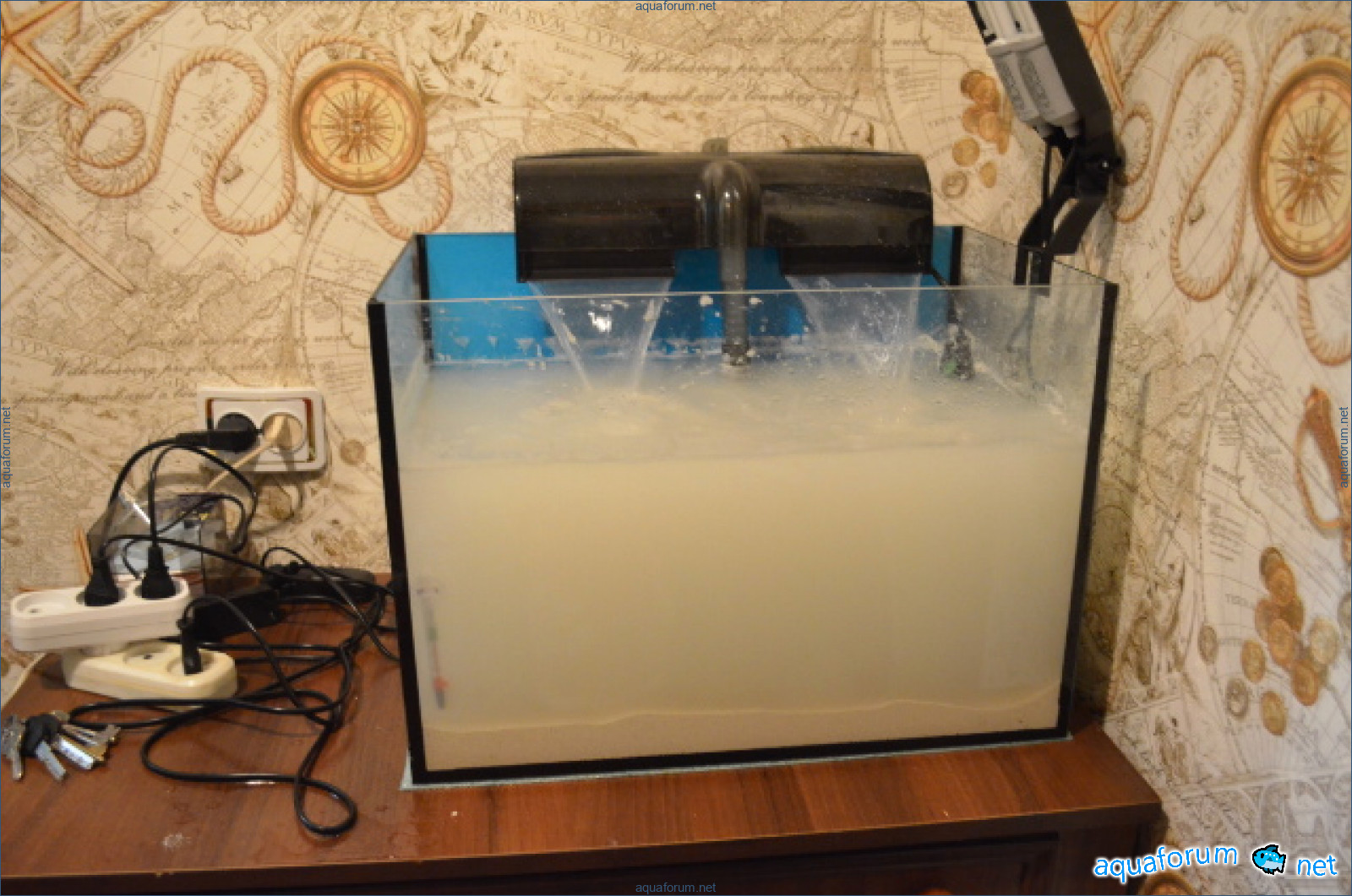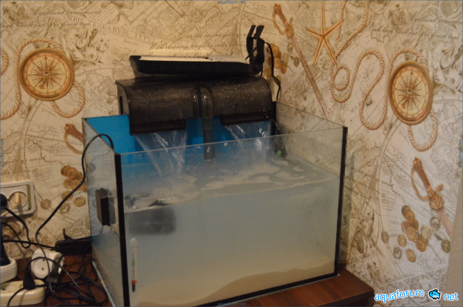Давно хотелось создать морской аквариум но все находилось много "не" (нехватка времини, не хватка места где поставить и т.д.). Но после прочтение темы NDA на Ровенском аквафоруме, кстати не один раз (хорошая тема хто решил начать), решился. Но так как в этом деле полный ноль создал ник на киевском форуме, скачал пару книг и углубился в чтение. Долго мучался вопросом аквариума для будуещего моря вопрос стал между покупкой морского комплекта от Акваэль на 30 литров или подганять все под свое усмотрение. Выбор пал на последний вариант. Дальше заказал с Аровани соль, лампу, солеметр и помпу. Заказал на ireef живого песка 9 кг. Оперативно доставили, наследущий день после заказа песок был у меня. Дальше стал главный вопрос как получить положительный ответ у слабой половины на преобретение аквариума. Вобщем на это ушол день, методом манипуляцый, "подкупом" (ребенка), уговоров, и обещаний был получен положительный ответ. После этого сразу куплен 48 литровый аквариум и навесной фильтр Атман HF-0800.