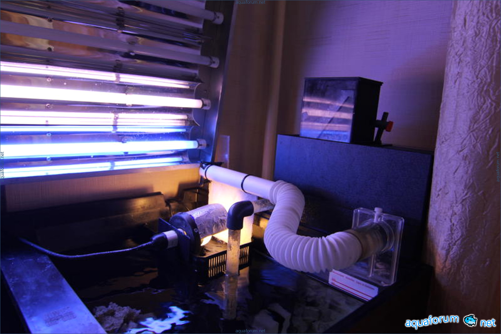 (из пенника возврат идет в короб от родного ювелевского фильтра а от туда родной помпой в аквас) В ЭТОМ КОРОБЕ ПОЛОЖИЛ БОЙ Ж.К. (живые камни)И БУДЕТ ВОДОРОСЛЕВИК.