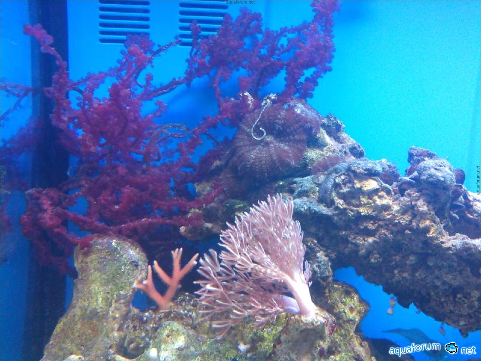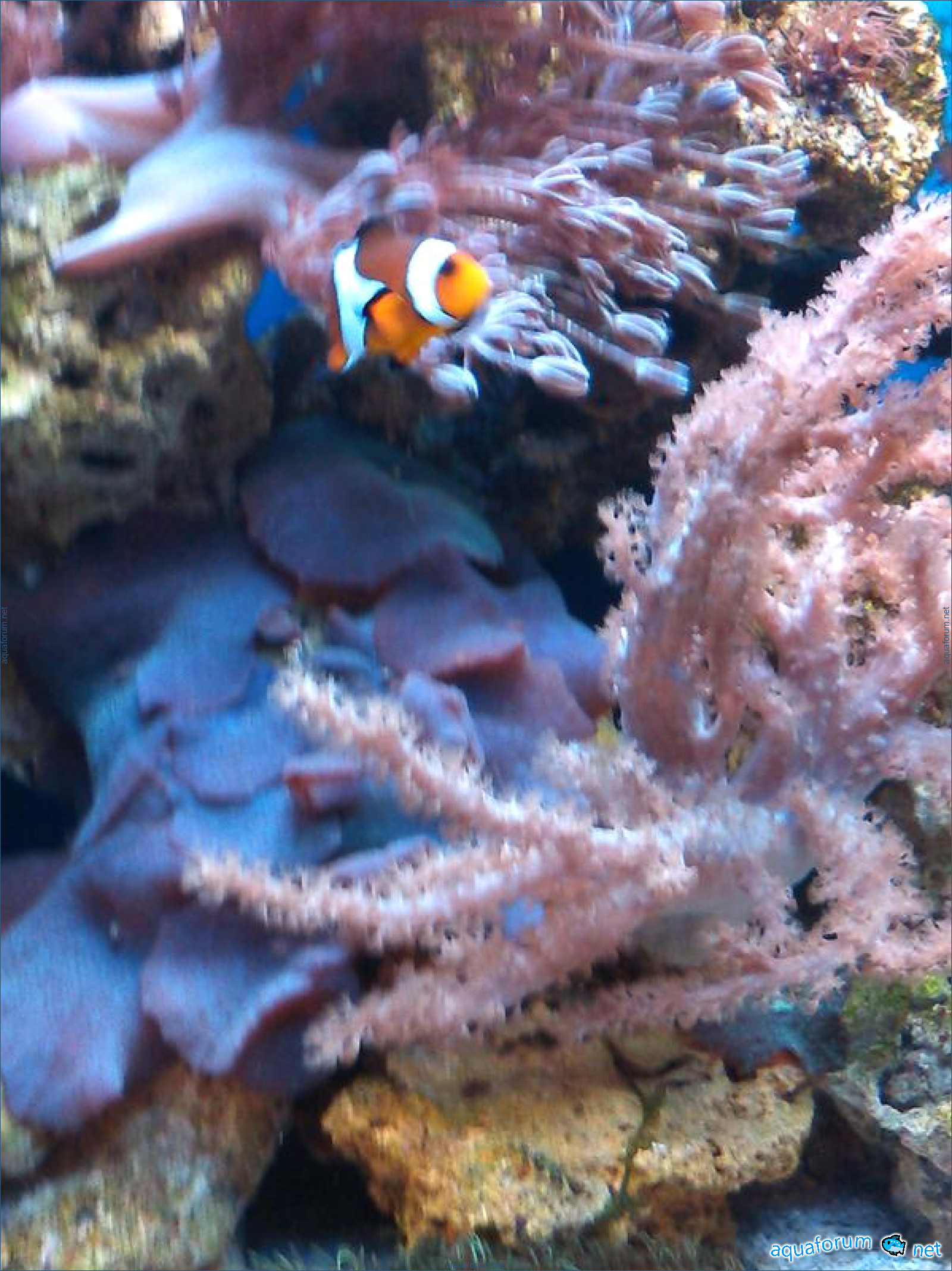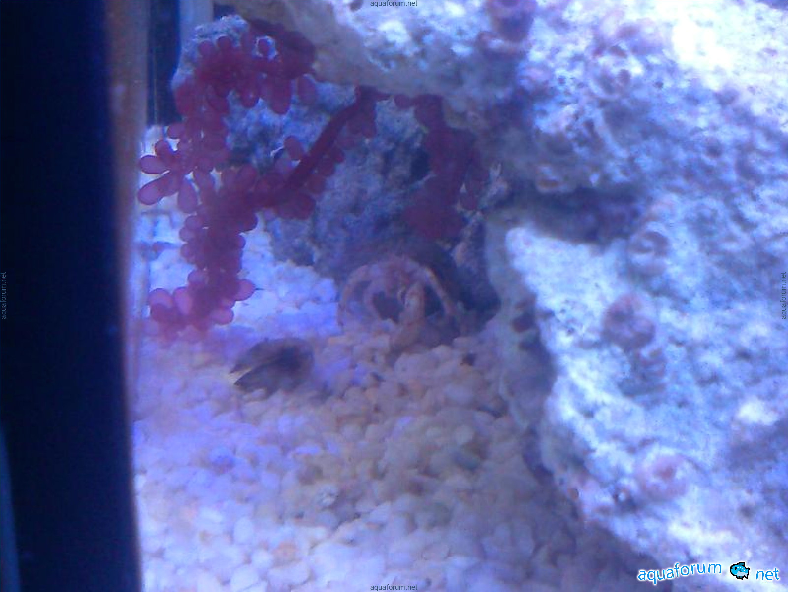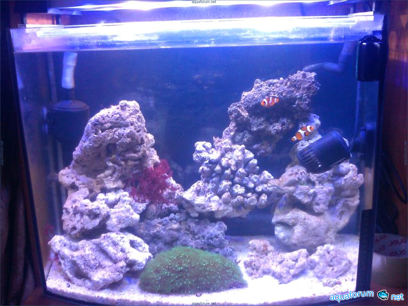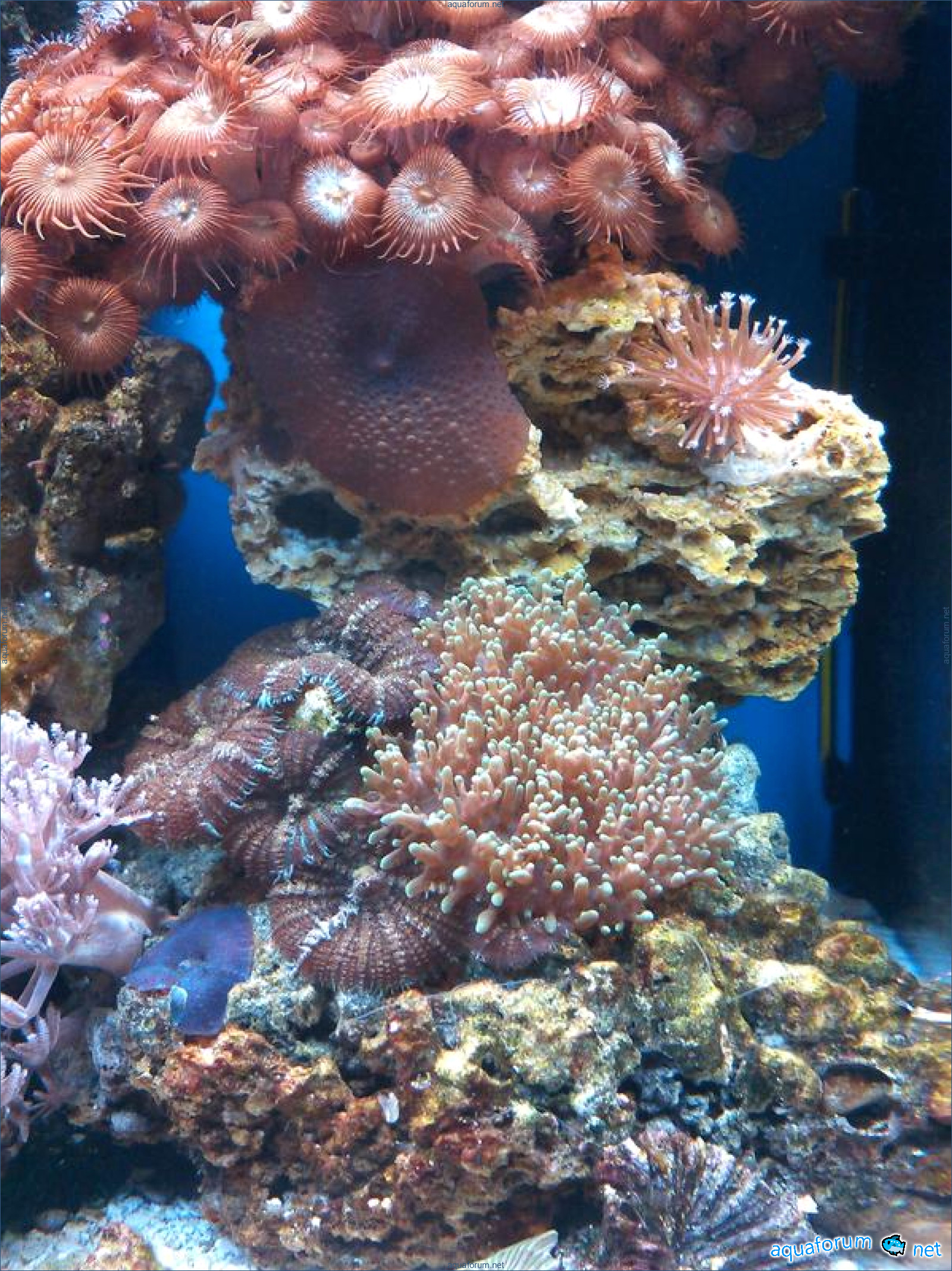 из живности-два клоуна,рыба-игла,две креветки палемоны,три рака отшельника,две конские актинии и камушек обросший бриареомом-на фото еще не раскрытый.Ну пока вот так как то.