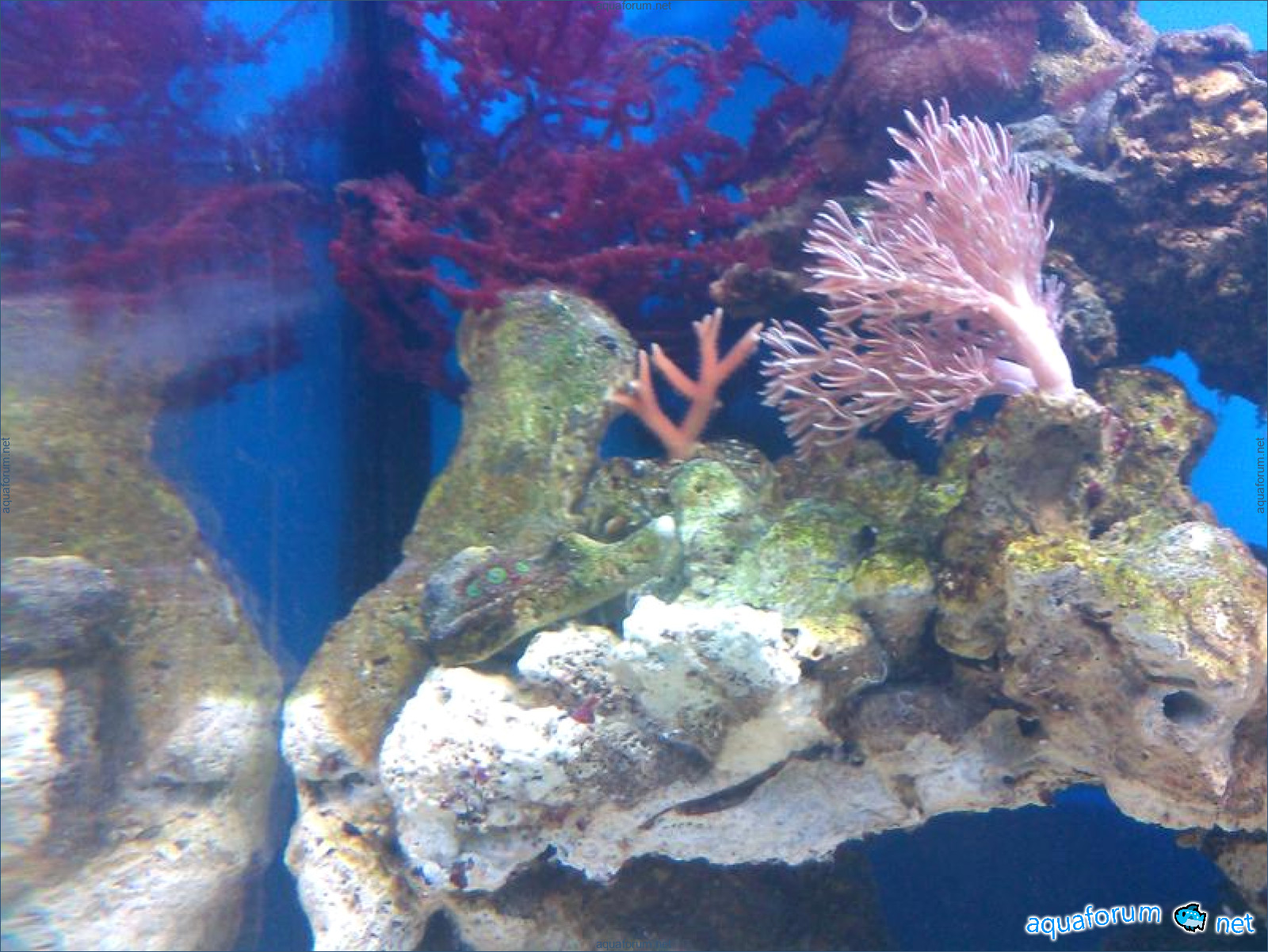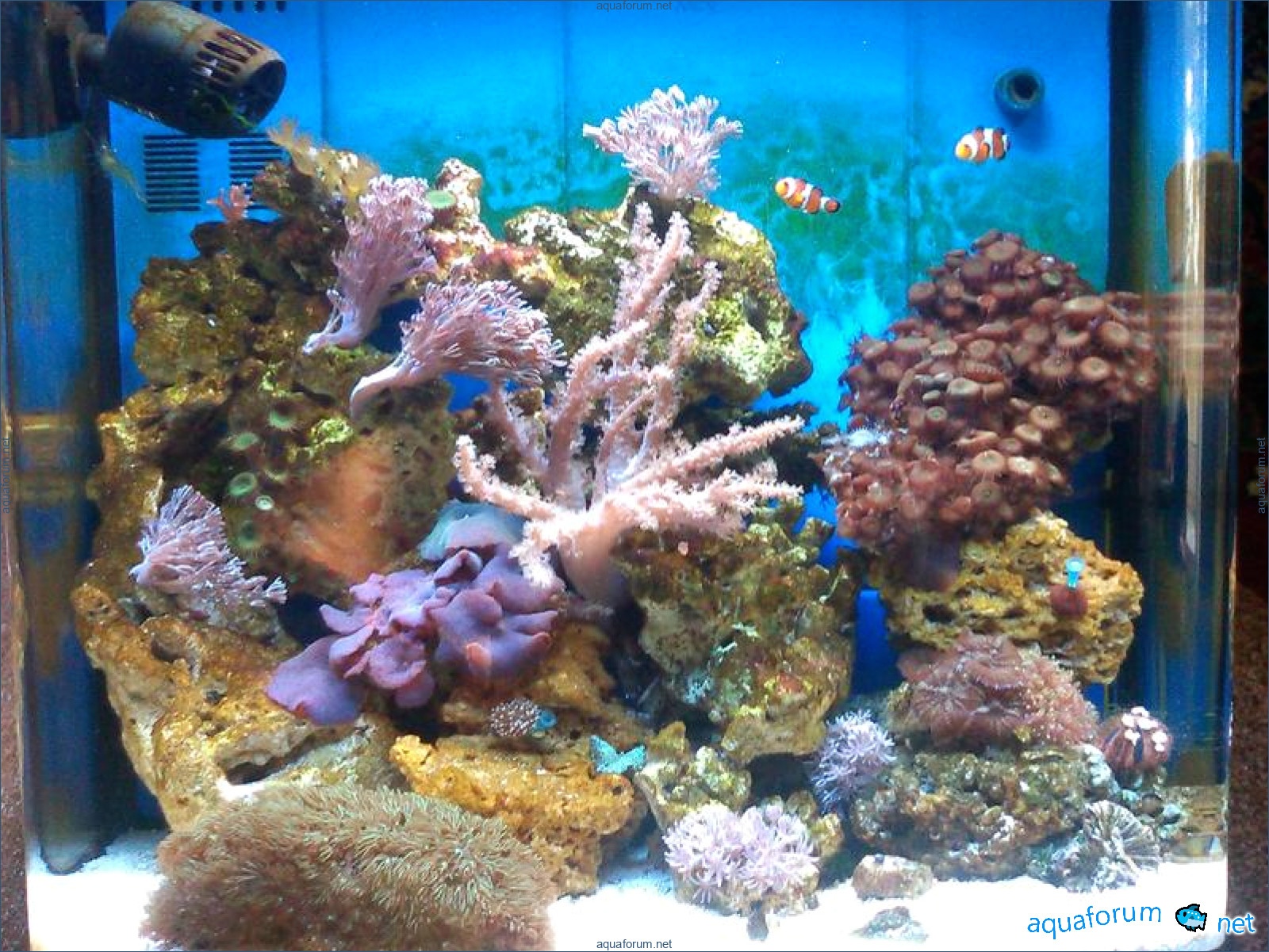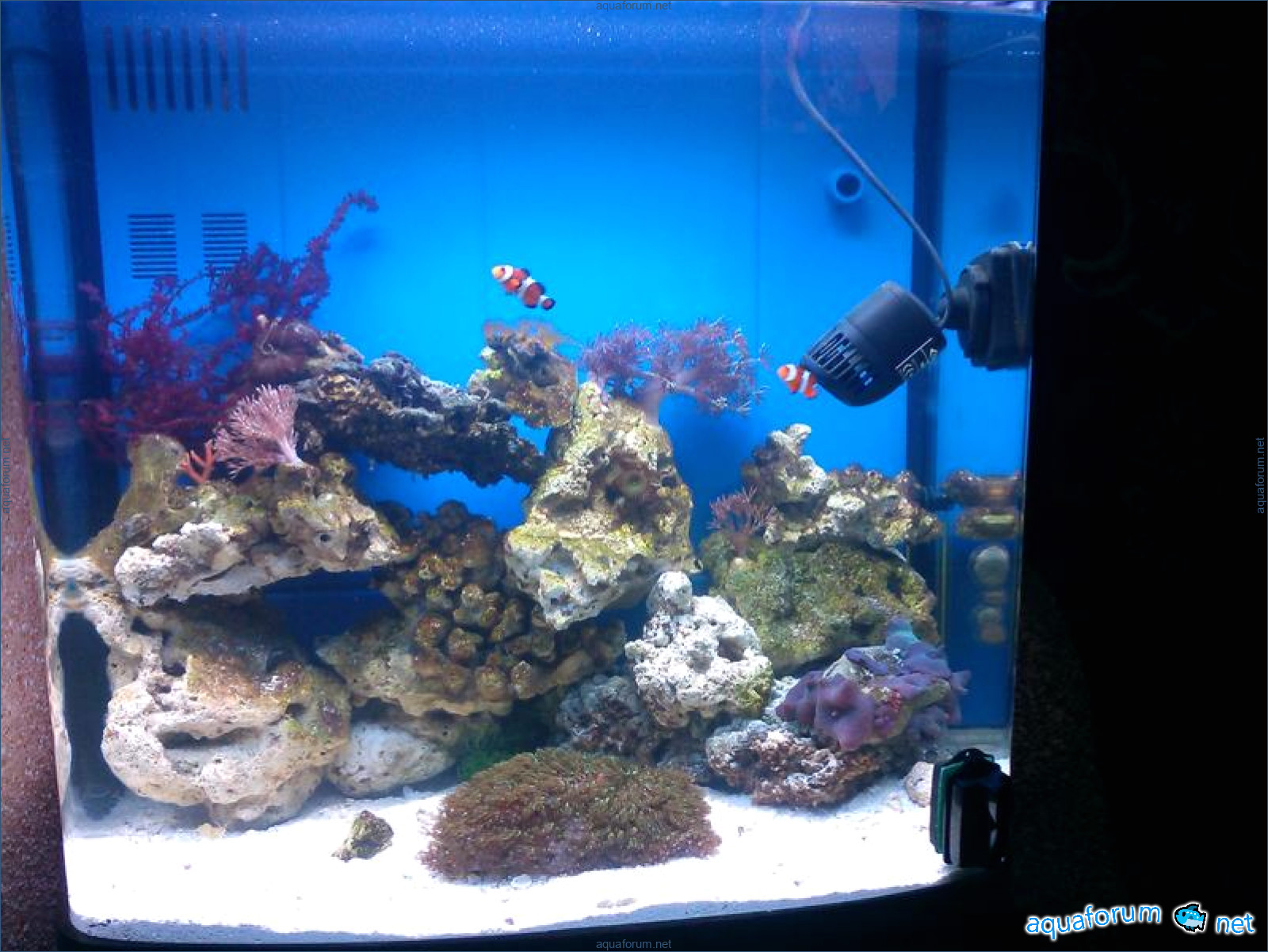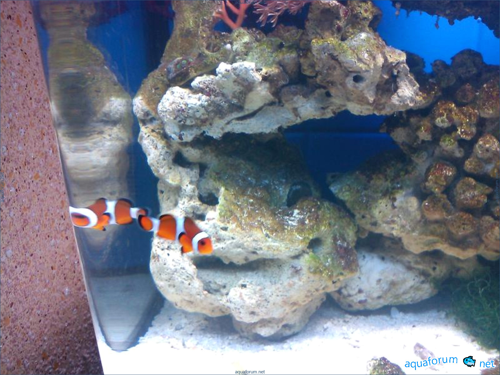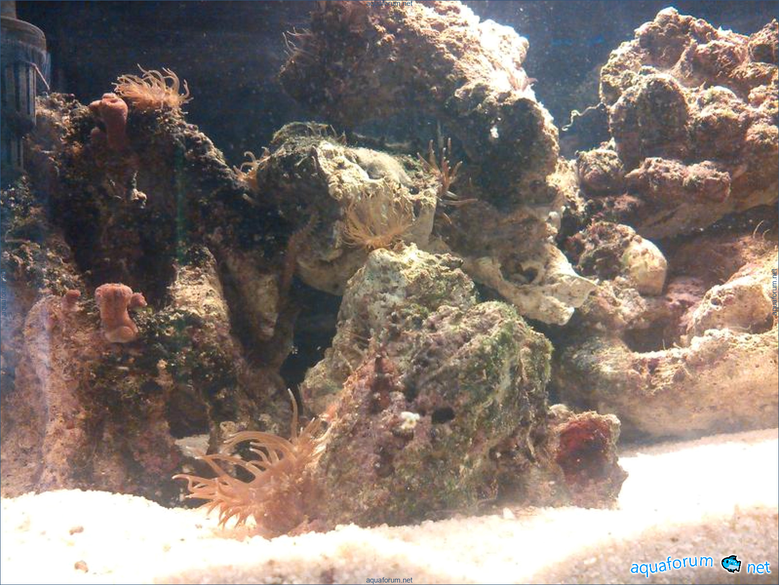 из живности-два клоуна,рыба-игла,две креветки палемоны,три рака отшельника,две конские актинии и камушек обросший бриареомом-на фото еще не раскрытый.Ну пока вот так как то.