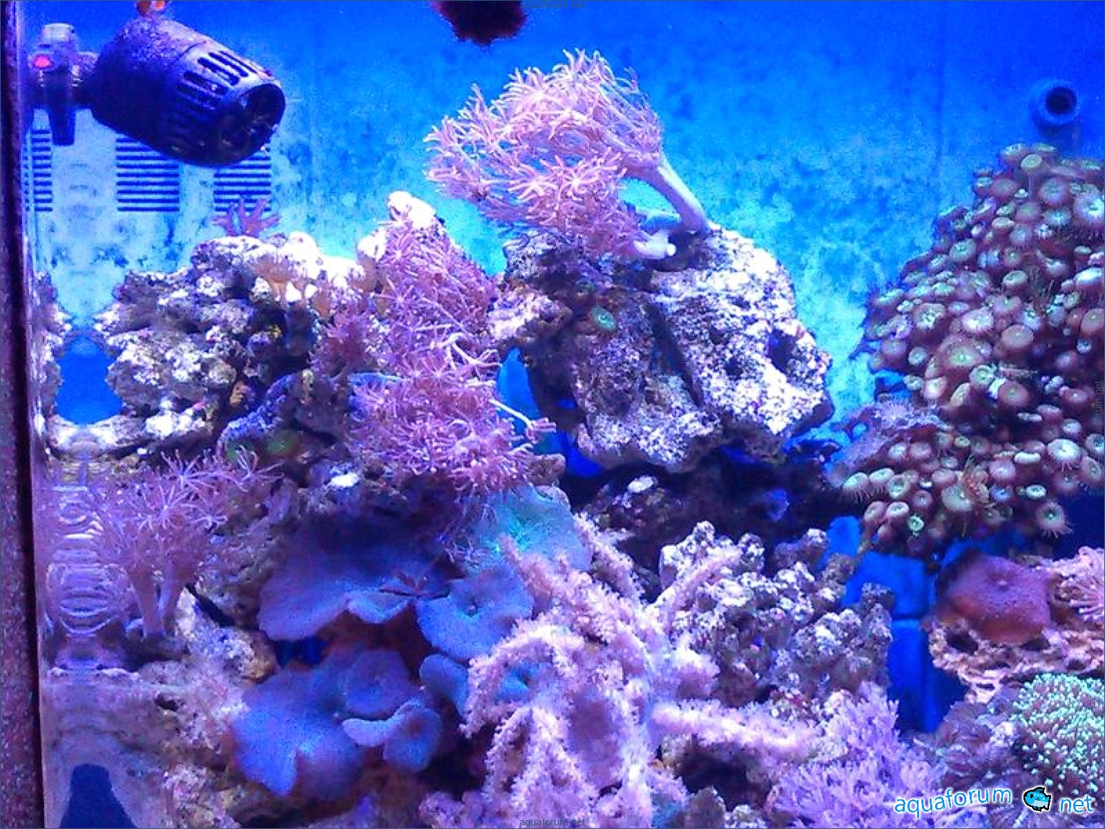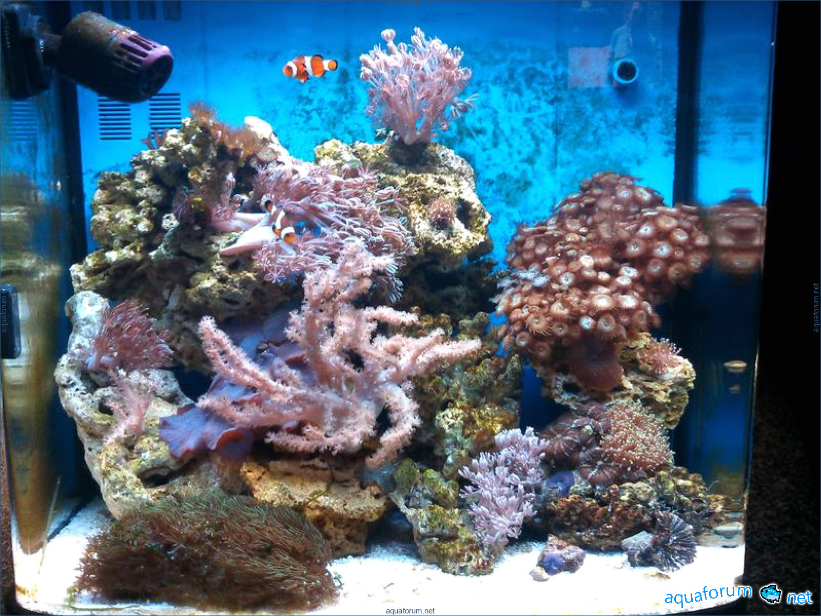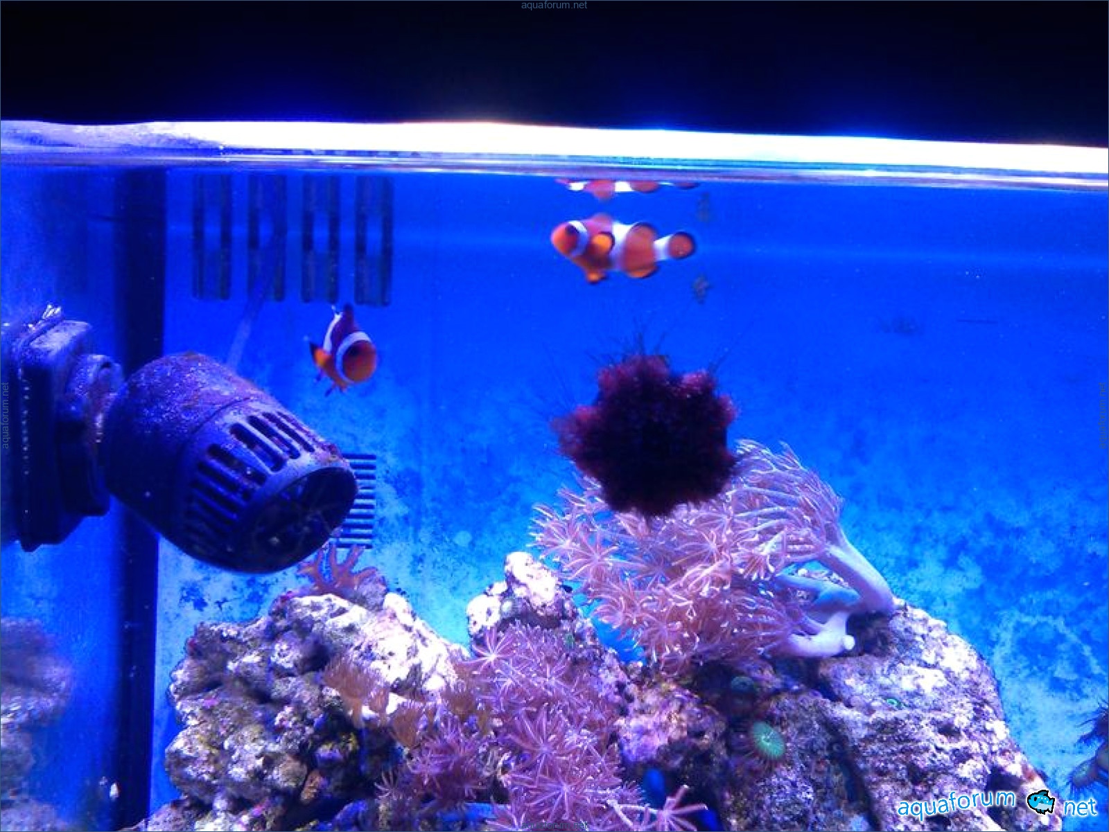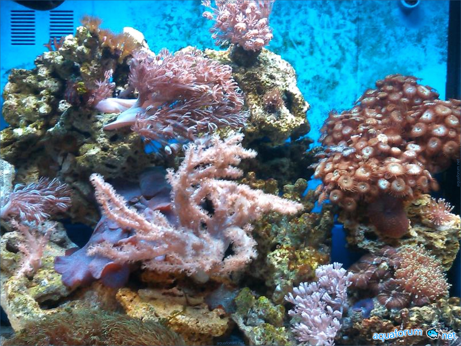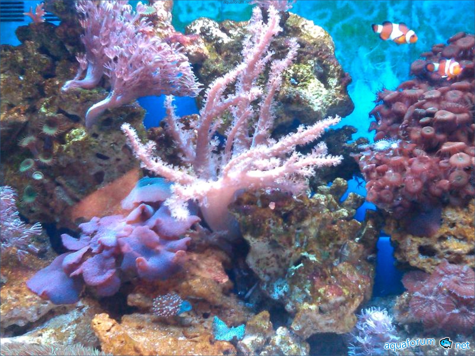 из живности-два клоуна,рыба-игла,две креветки палемоны,три рака отшельника,две конские актинии и камушек обросший бриареомом-на фото еще не раскрытый.Ну пока вот так как то.