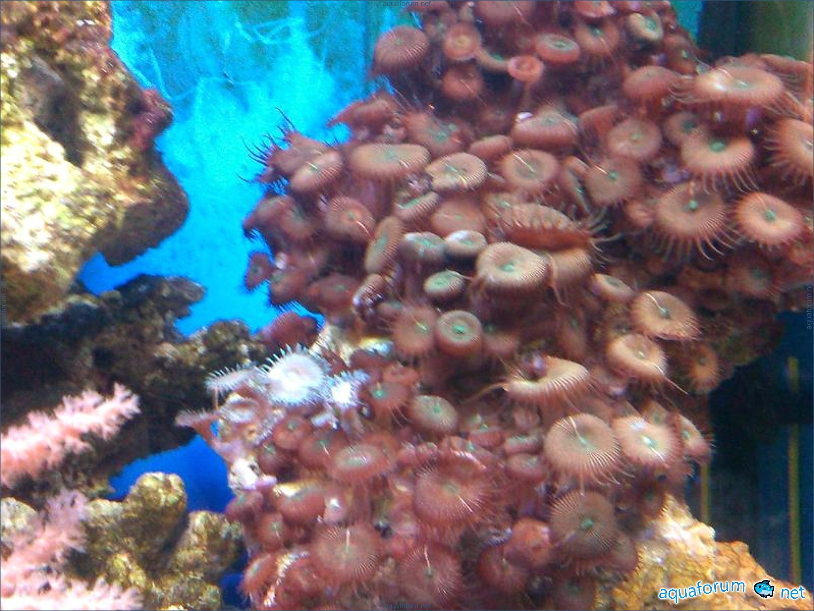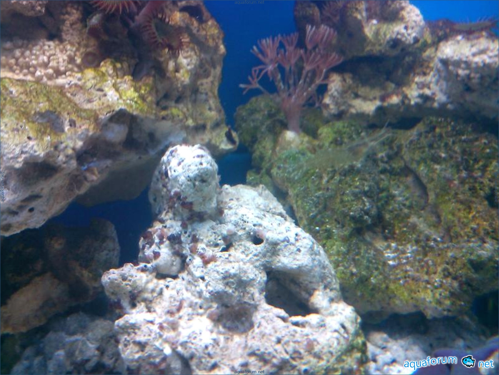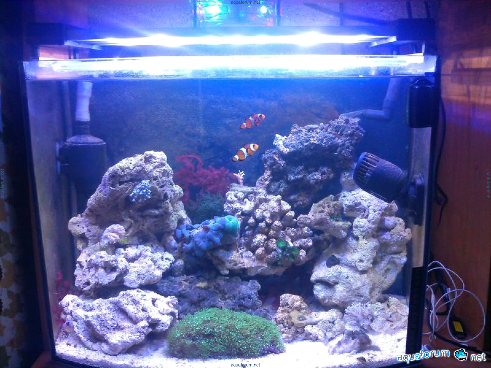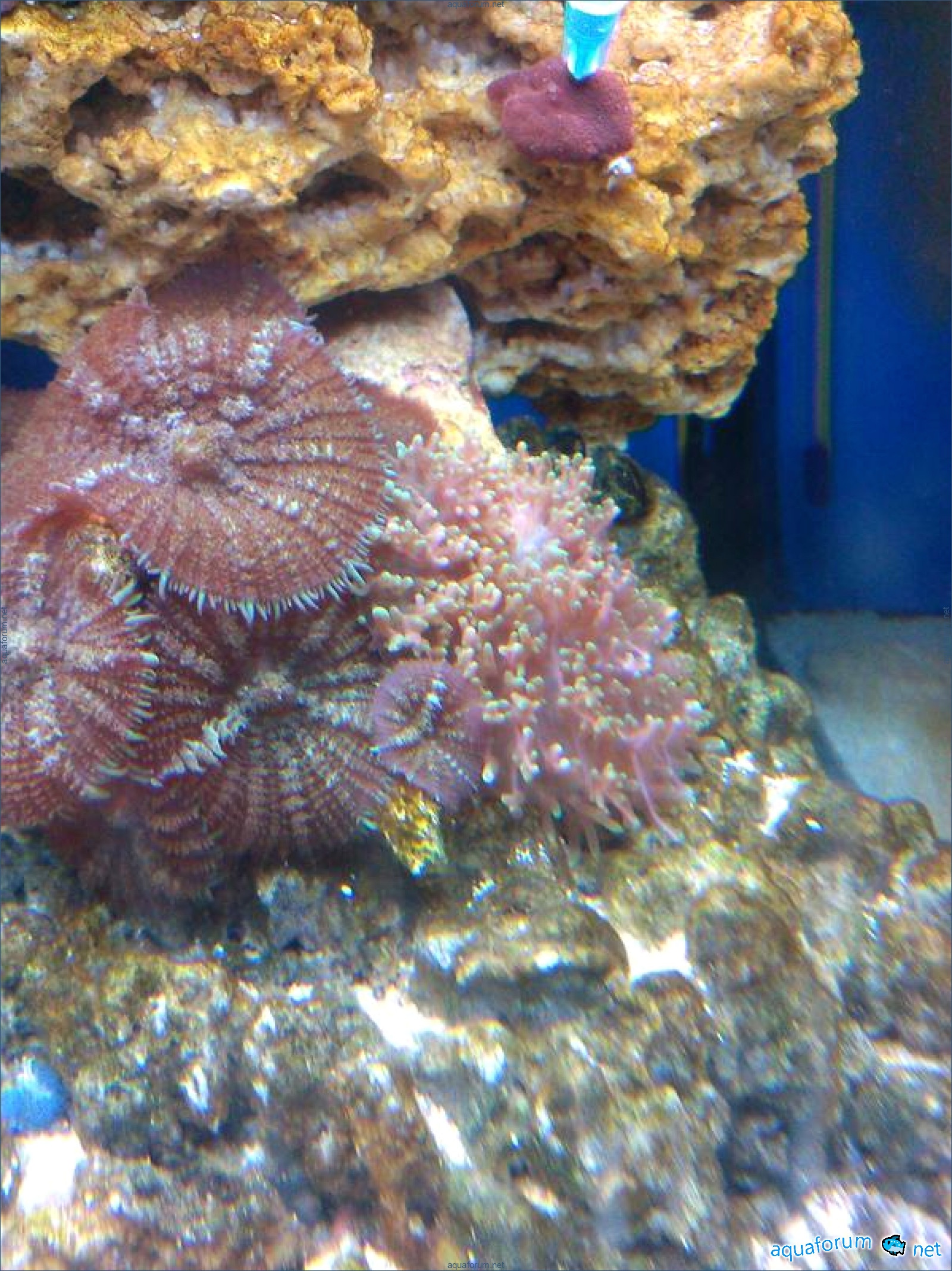 из живности-два клоуна,рыба-игла,две креветки палемоны,три рака отшельника,две конские актинии и камушек обросший бриареомом-на фото еще не раскрытый.Ну пока вот так как то.