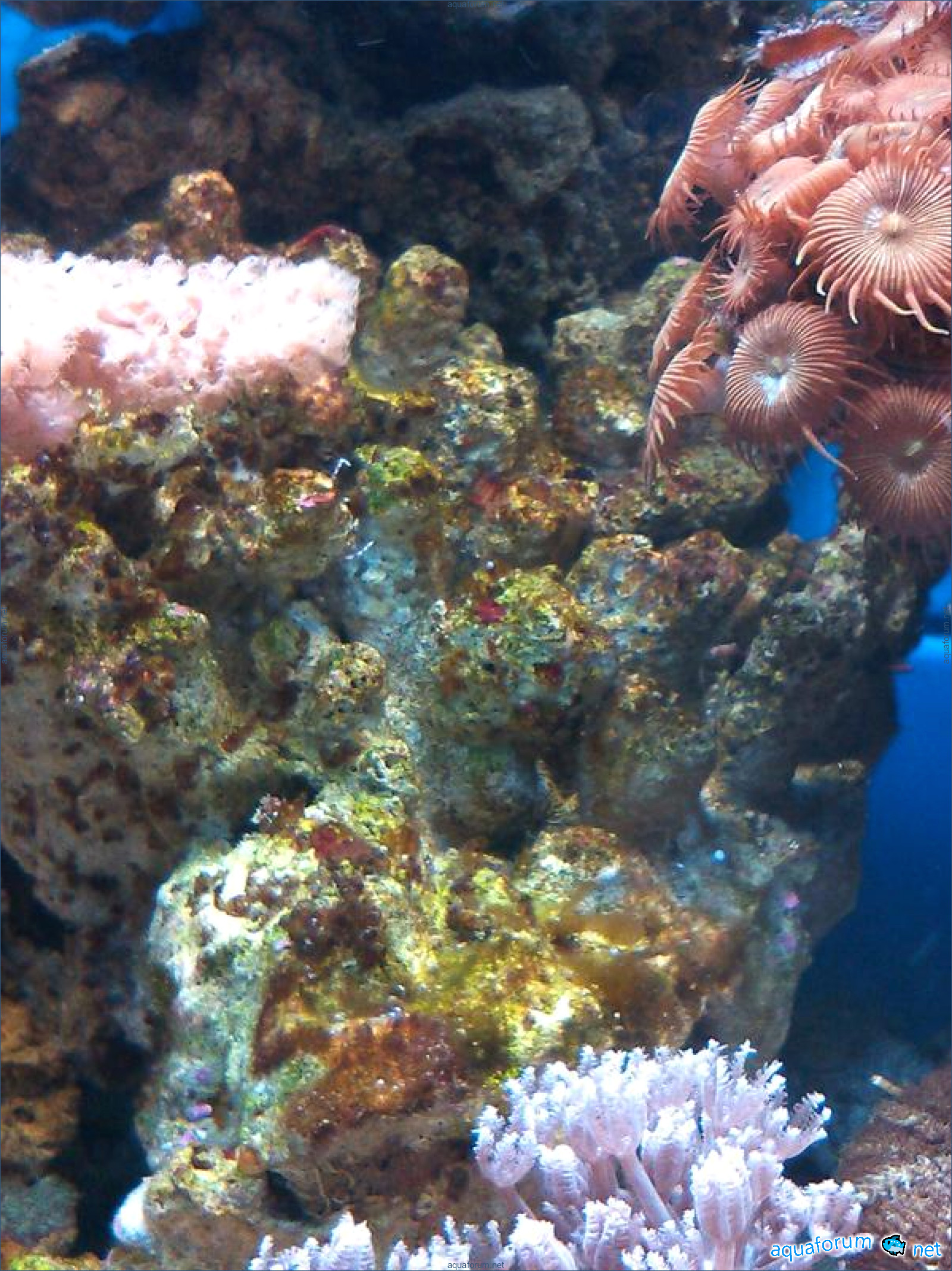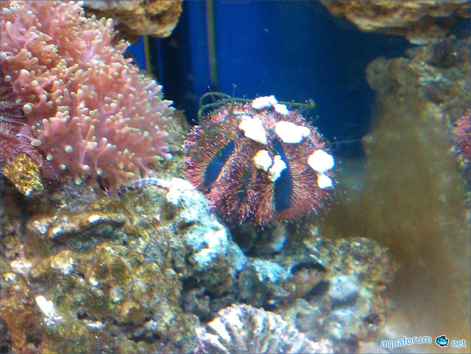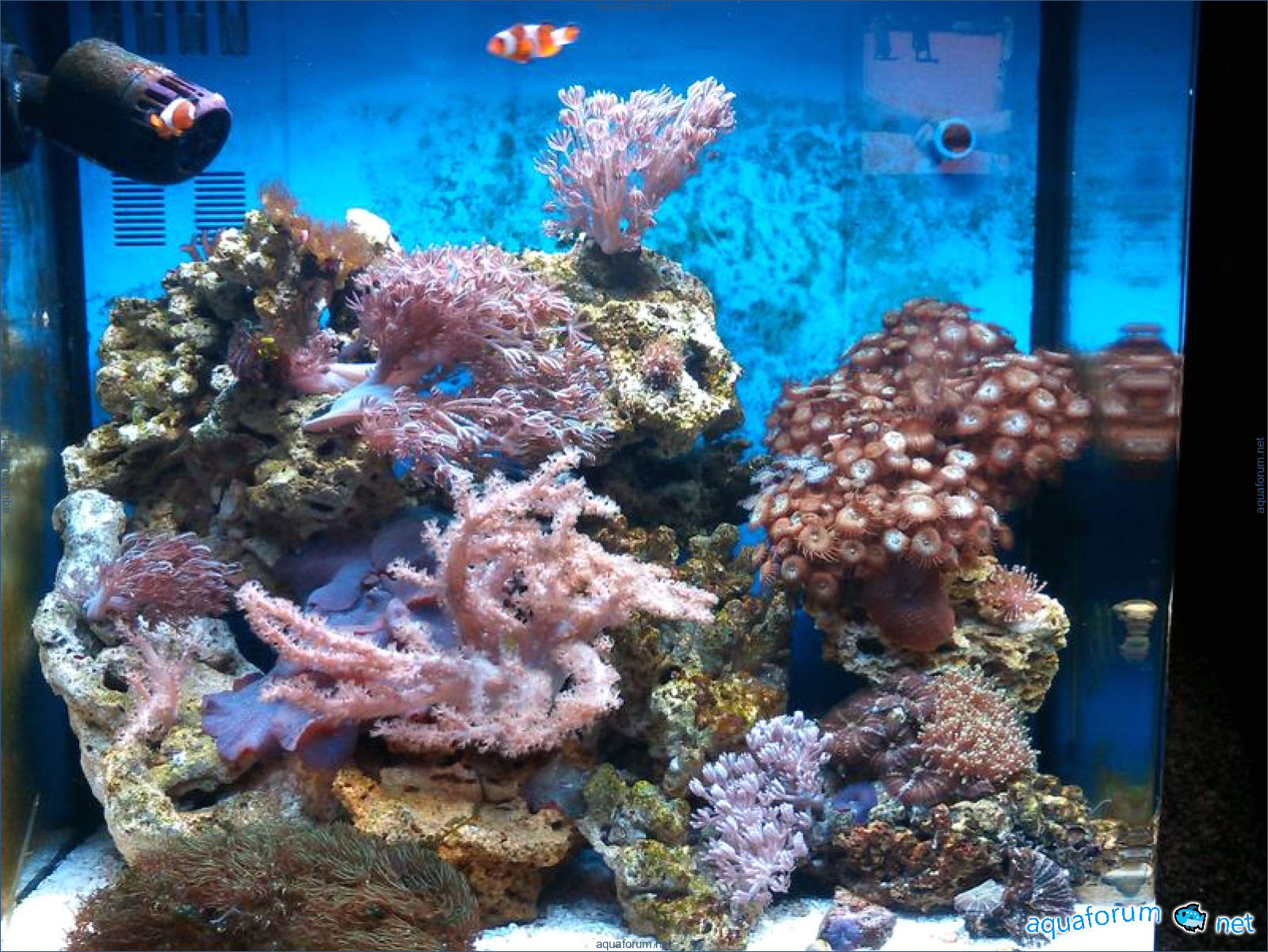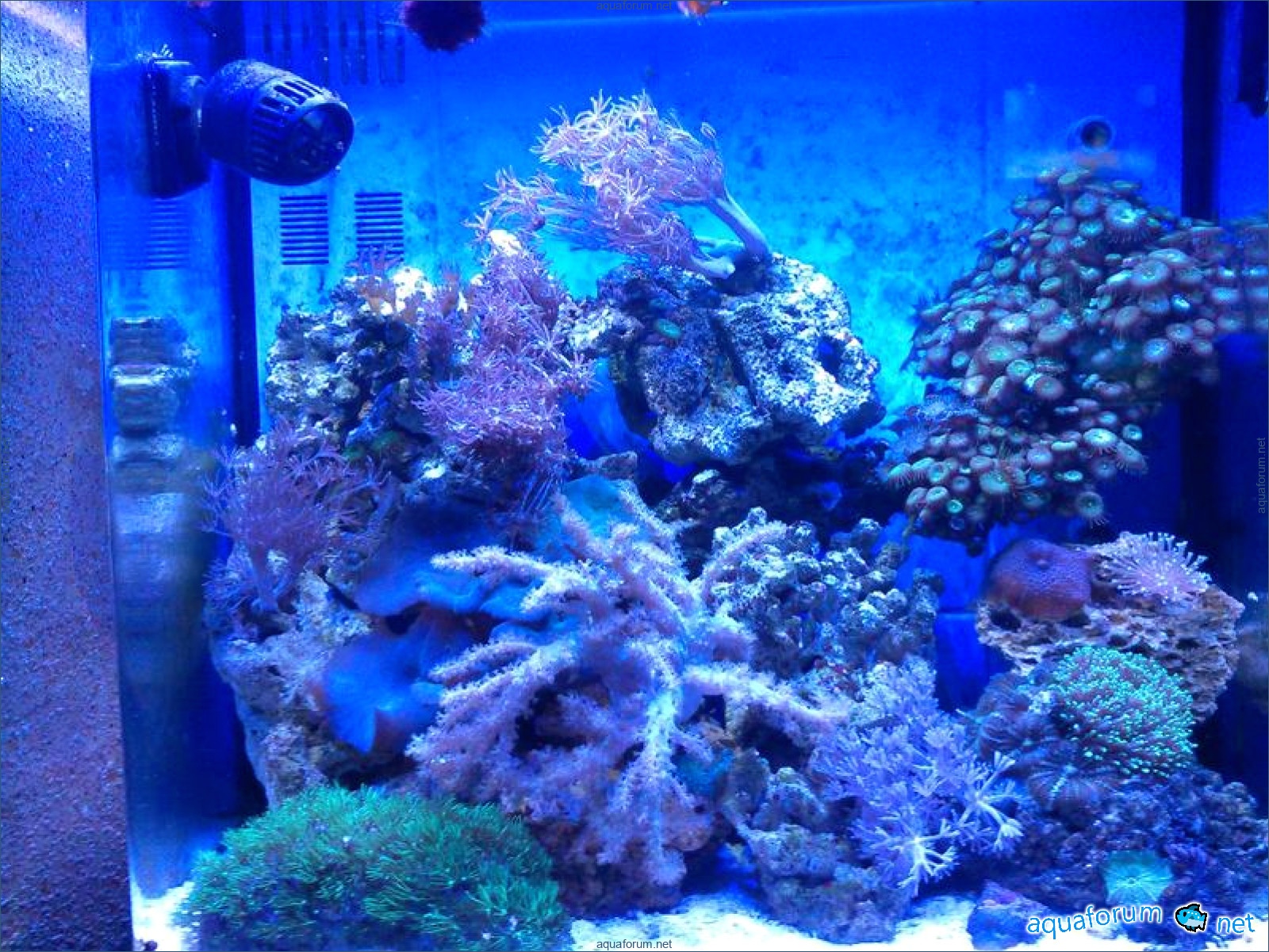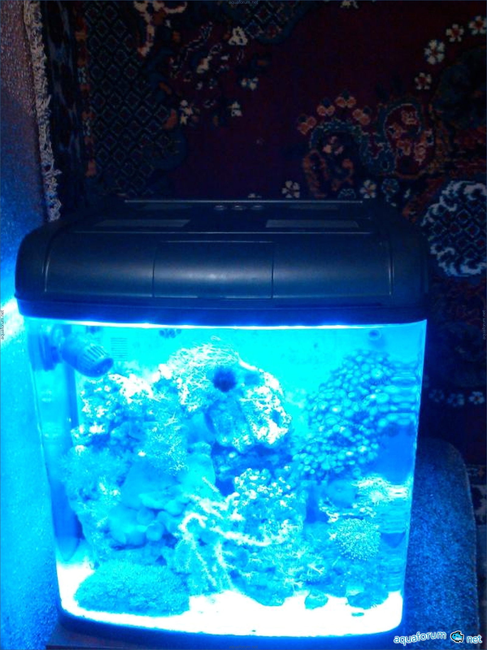 из живности-два клоуна,рыба-игла,две креветки палемоны,три рака отшельника,две конские актинии и камушек обросший бриареомом-на фото еще не раскрытый.Ну пока вот так как то.