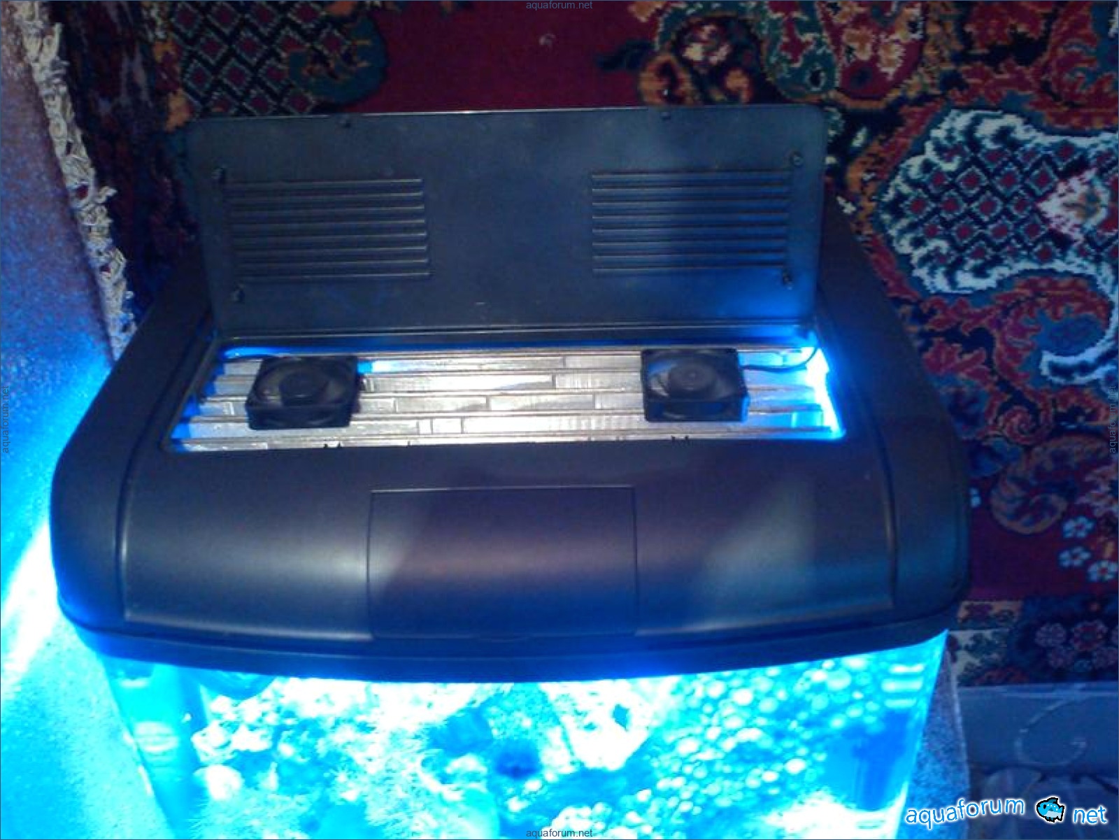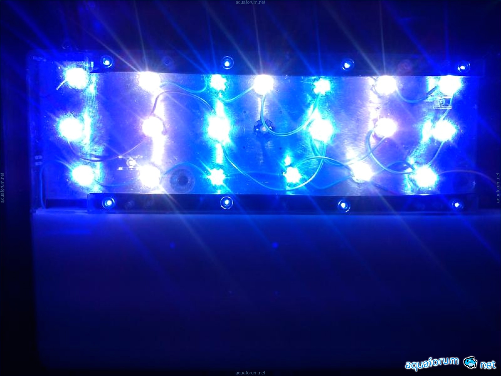 Добрый день.Случилась непредвиденное изменение штатного света на лед(перегорела синяя лампа).Разобрал старый светильник,демонтировал диоды,на работе сваял из куска аллюминия радиатор,выкинул начинку из крышки,вообщем свободным вечерком на( коленках) все это впихнул в крышку.Результатом доволен не очень,но пока будет так.