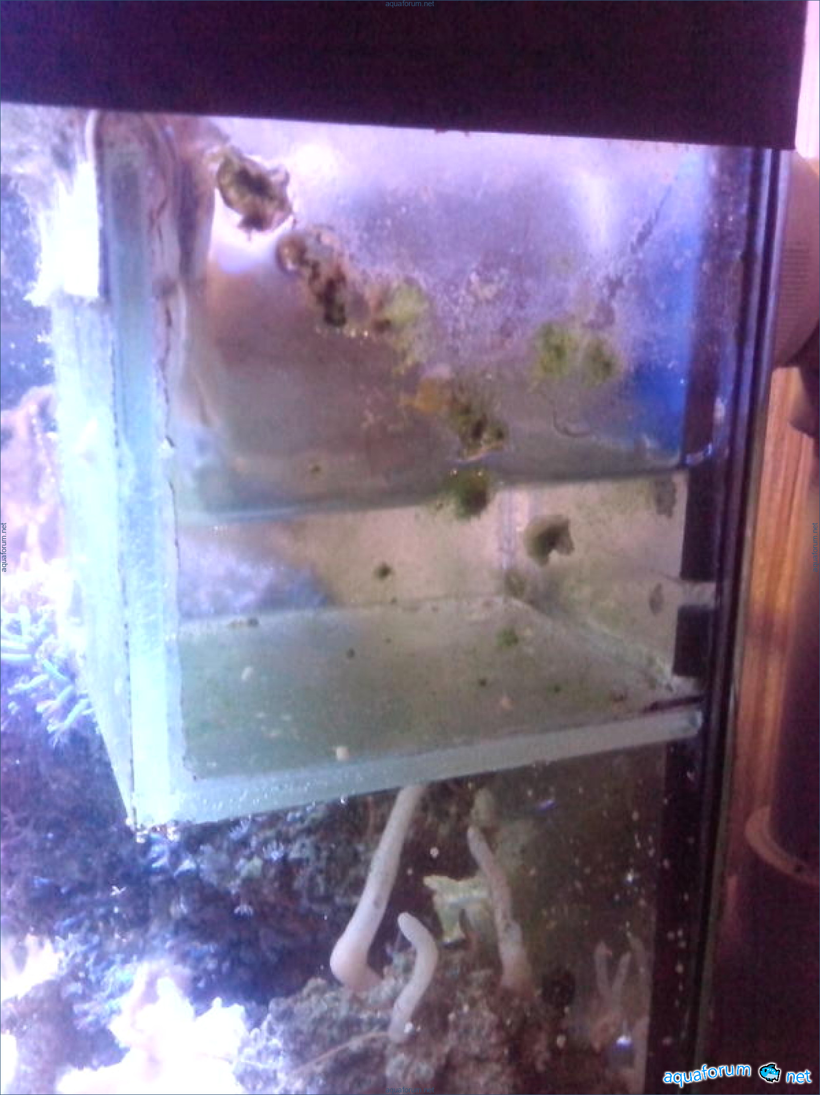 Проблема оказалась в сливе. Чтобы личинку не выдувало в основной аквариум, я выточила из решетки кусочек, обернула мелкопористой тканью из мешка для наполнителей и вставила в специально отведенное место для него на сливе. Все было подогнано очень плотно и смотрелось красиво, пока не была отловлена очередная партия личинок. Вода, знаете ли, идет по пути наименьшего сопротивления (как и все в природе), поэтому просачиваться сквозь щели между преградой в тряпочке и самим отсадником ей явно интересней, чем через мелкое сито тканюшки. В те самые щели личинка набивалась табунами и – ессно – дохла!