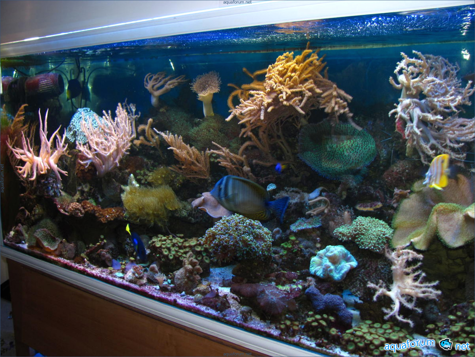 Решил и я выставить свой аквариум. Аквариуму сегодня ровно один месяц , поэтому всевозможные водоросли еще присутствуют. Каждый день замечаю как они немного отступают. Переезд из 600л с мягкими был экстренным, утром замес, вечером переезд. В заначке лежали Продибио старт (спасибо Айрифу) с перепугу вылил все 30ампул. Вся живность жива, несмотря на такой неправильный переезд.