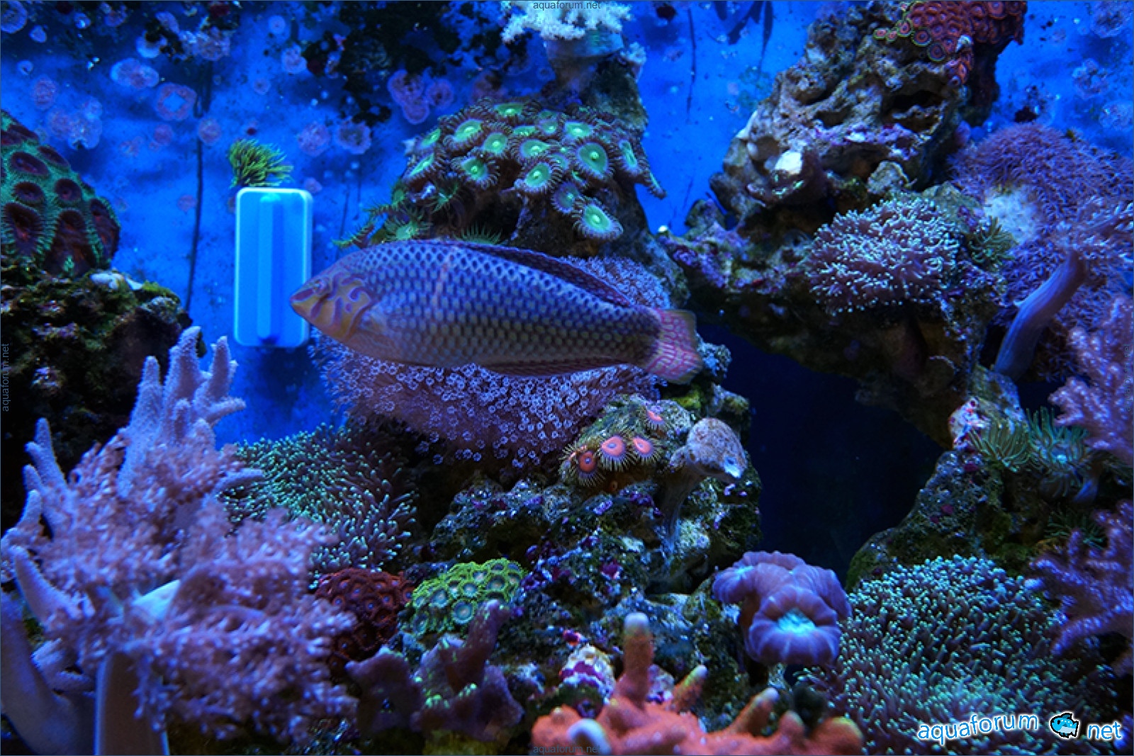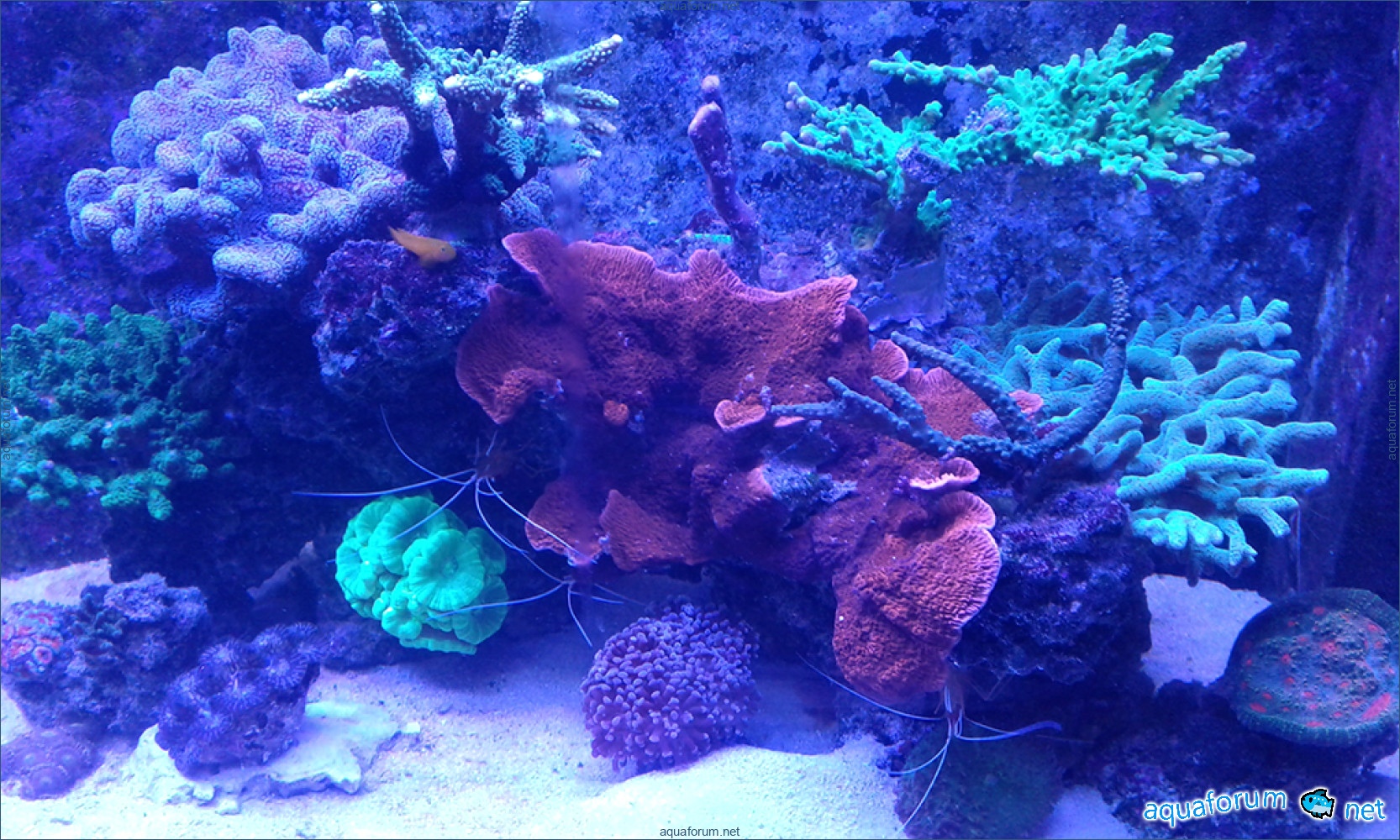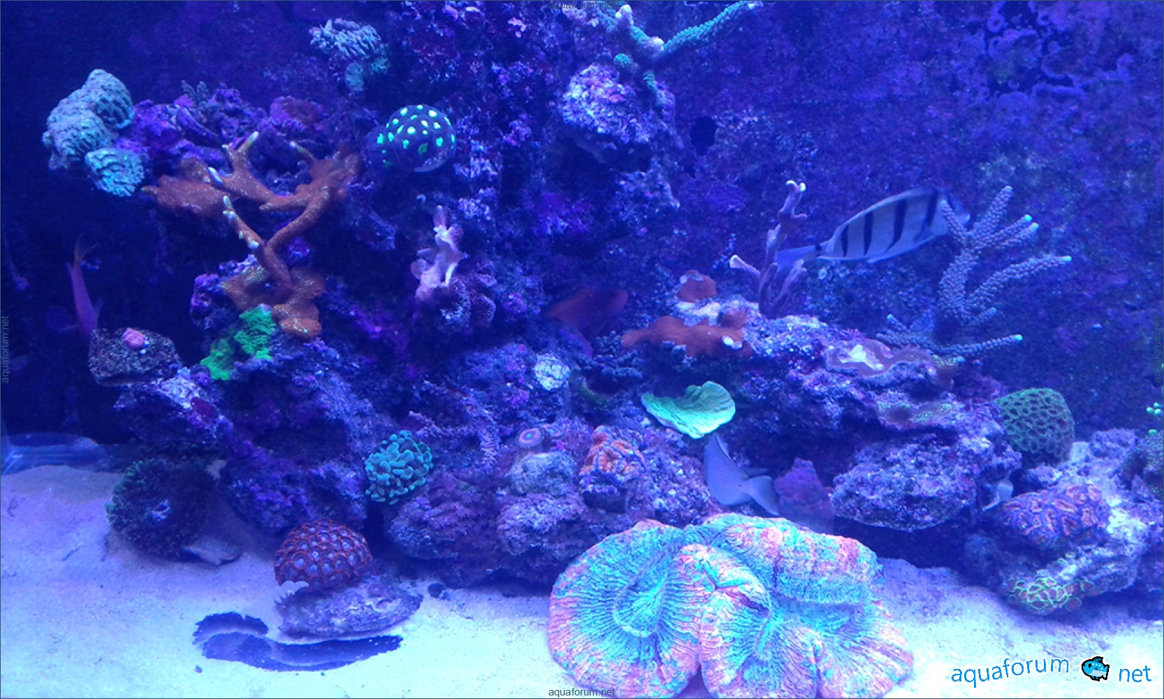 Камень С.Р.К. (сухие рифовые камни), до запуска сложил и залил водой с подмен. Пролежал чуть меньше года.